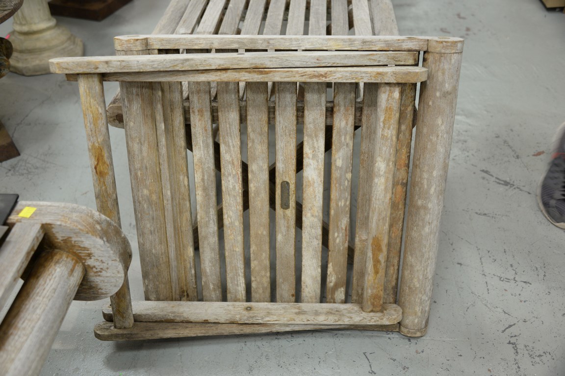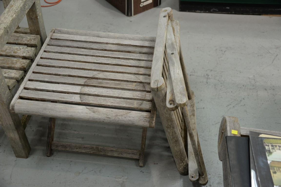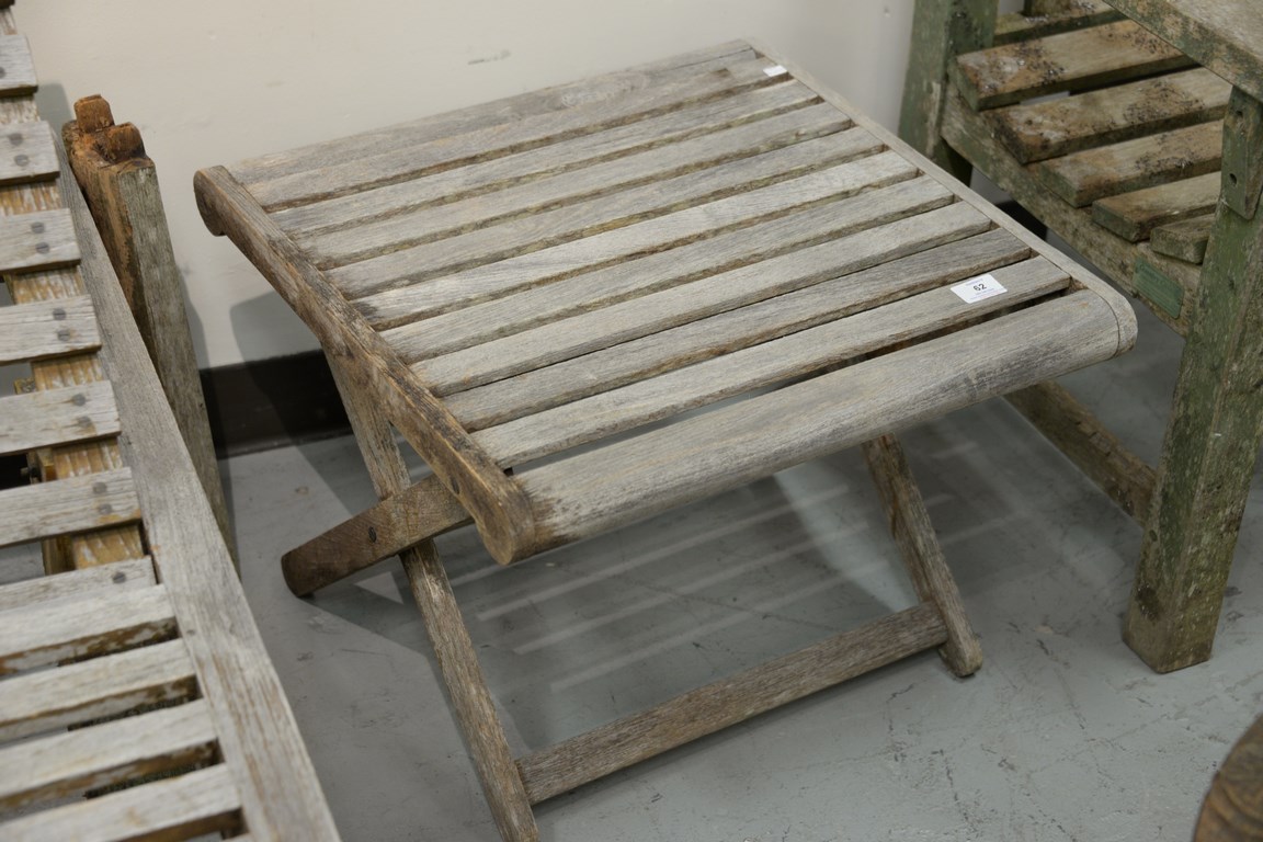 Four teak folding tables. ht. 16 1/2 in. top: 22 x 22