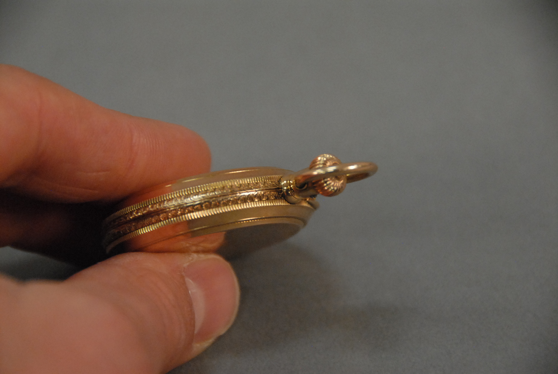 Lot 62: J. A. Linherr 14K gold closed face pocket watch signed J. A. Linherr N.Y. 39866. 61 grams total weight