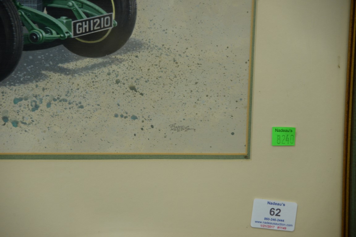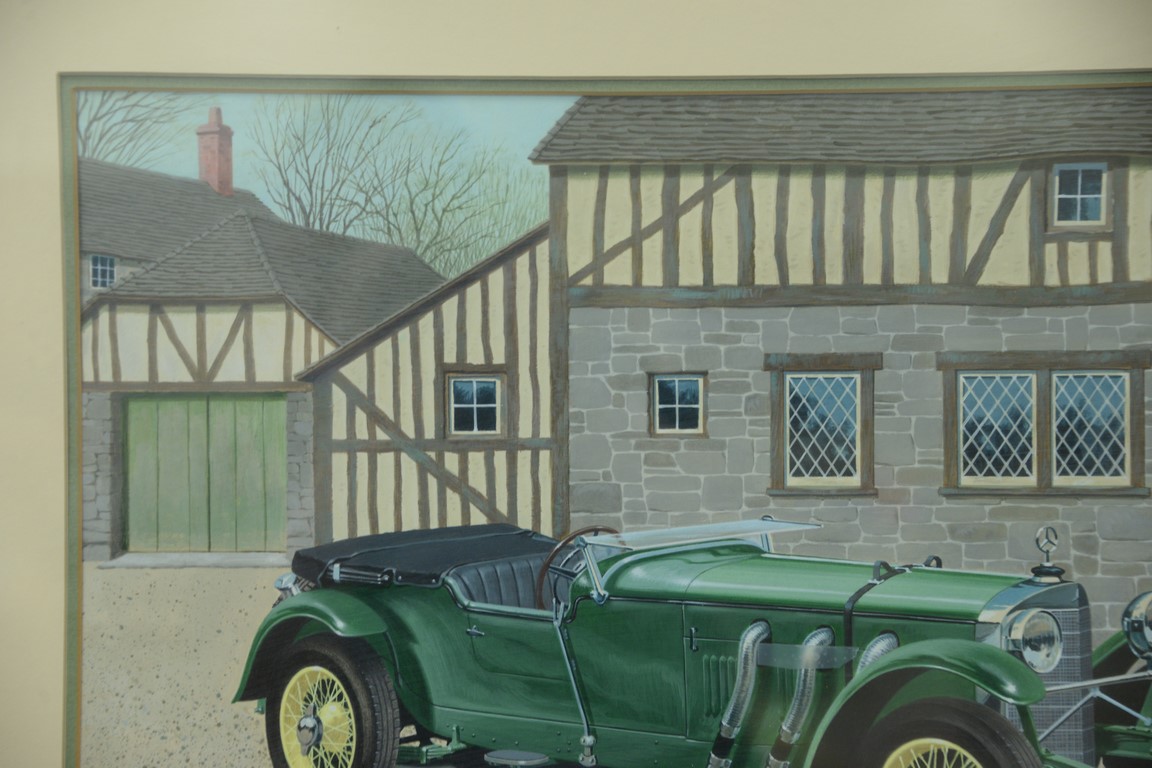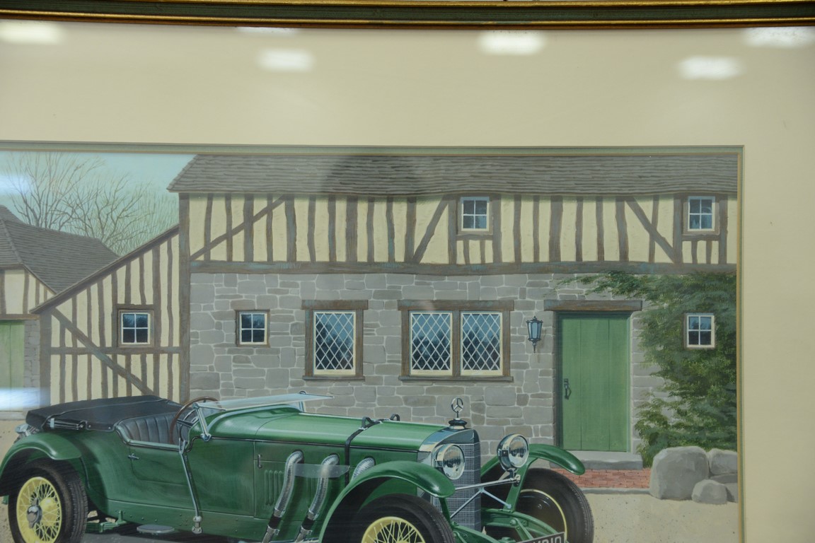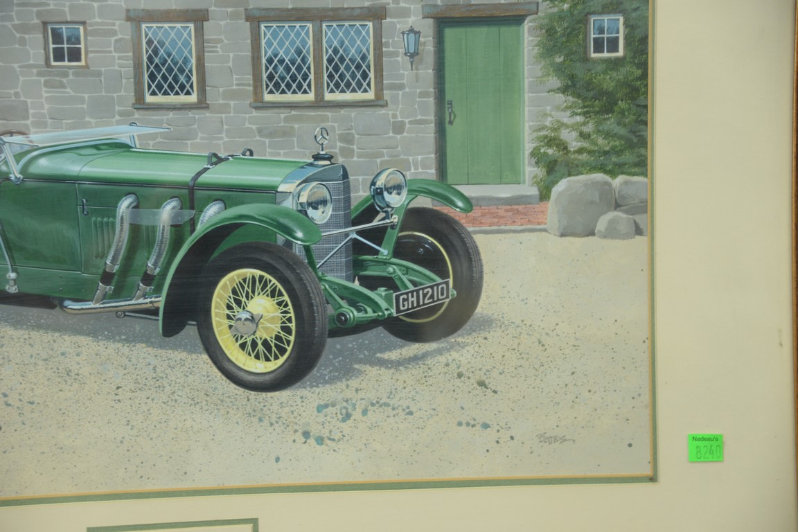 Lot 62: Sam Bates 20th century acrylic 1929 Mercedes Benz Model S, signed lower right Bates, sight size 15 1/2 x 22.