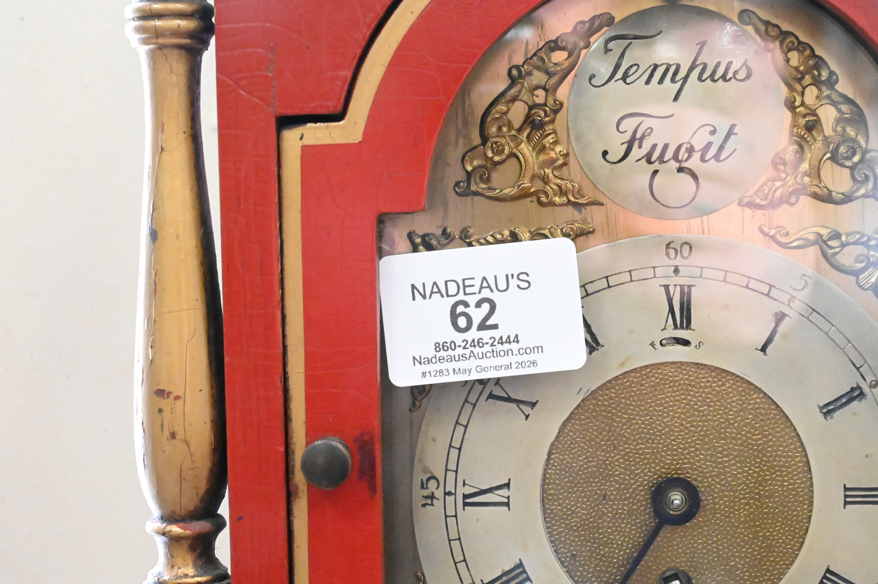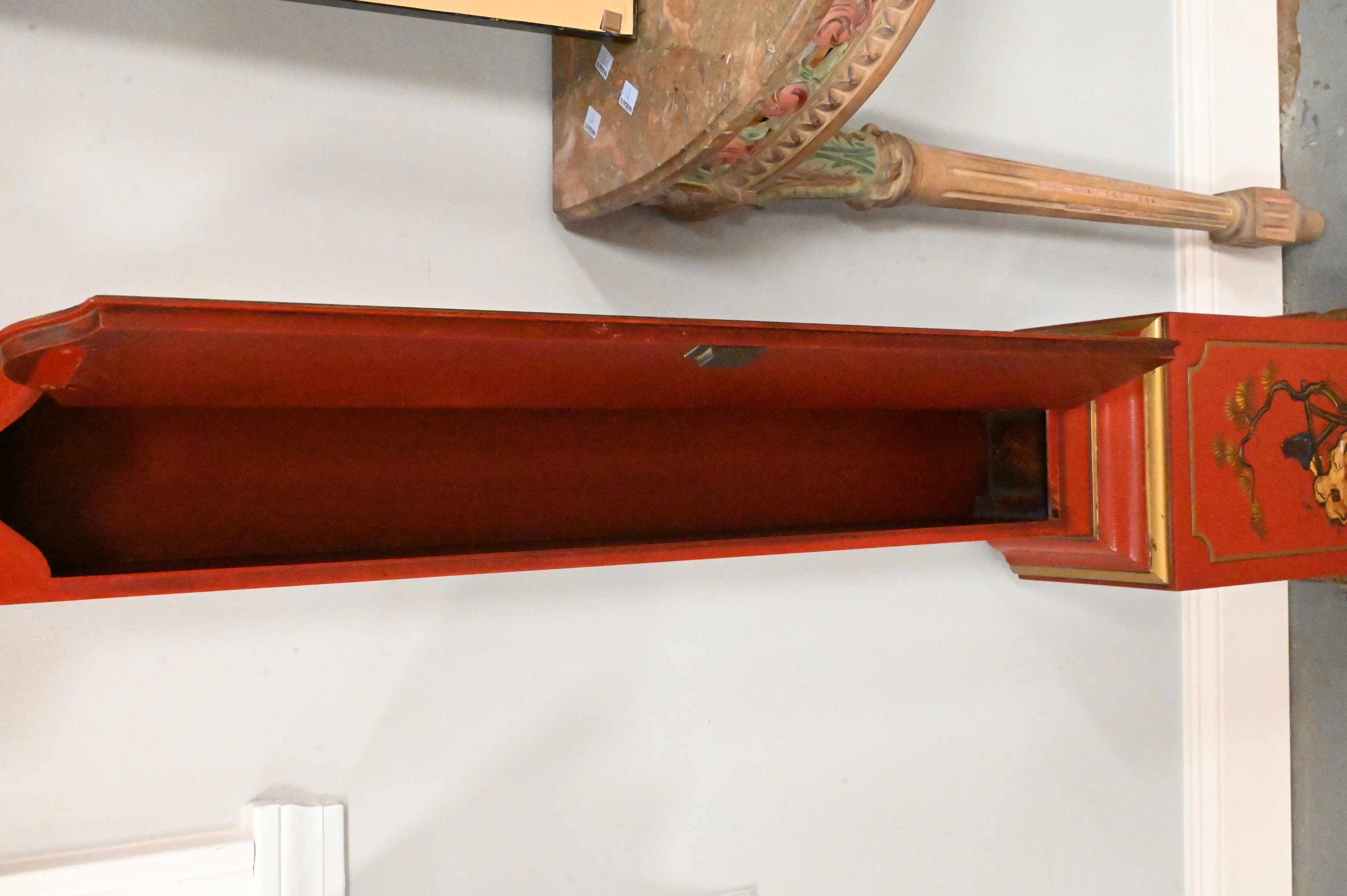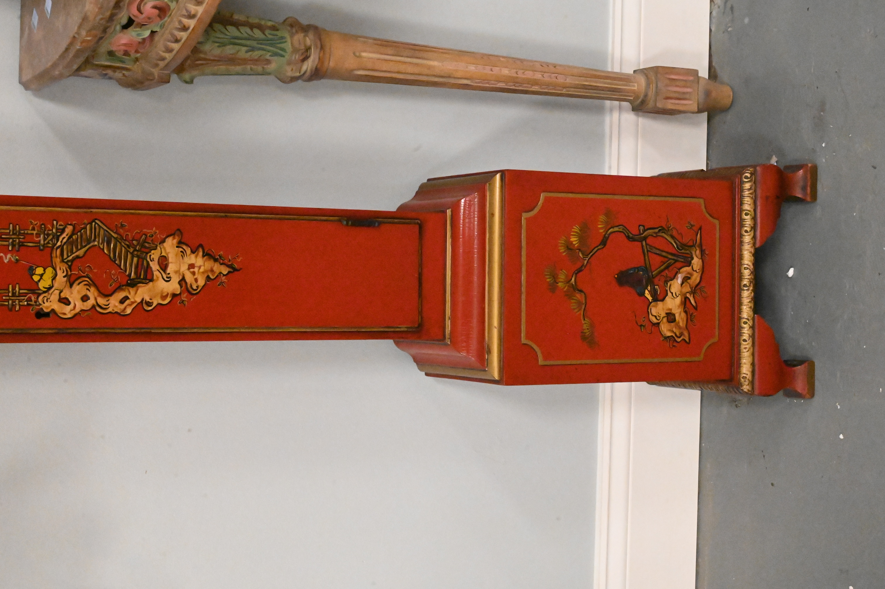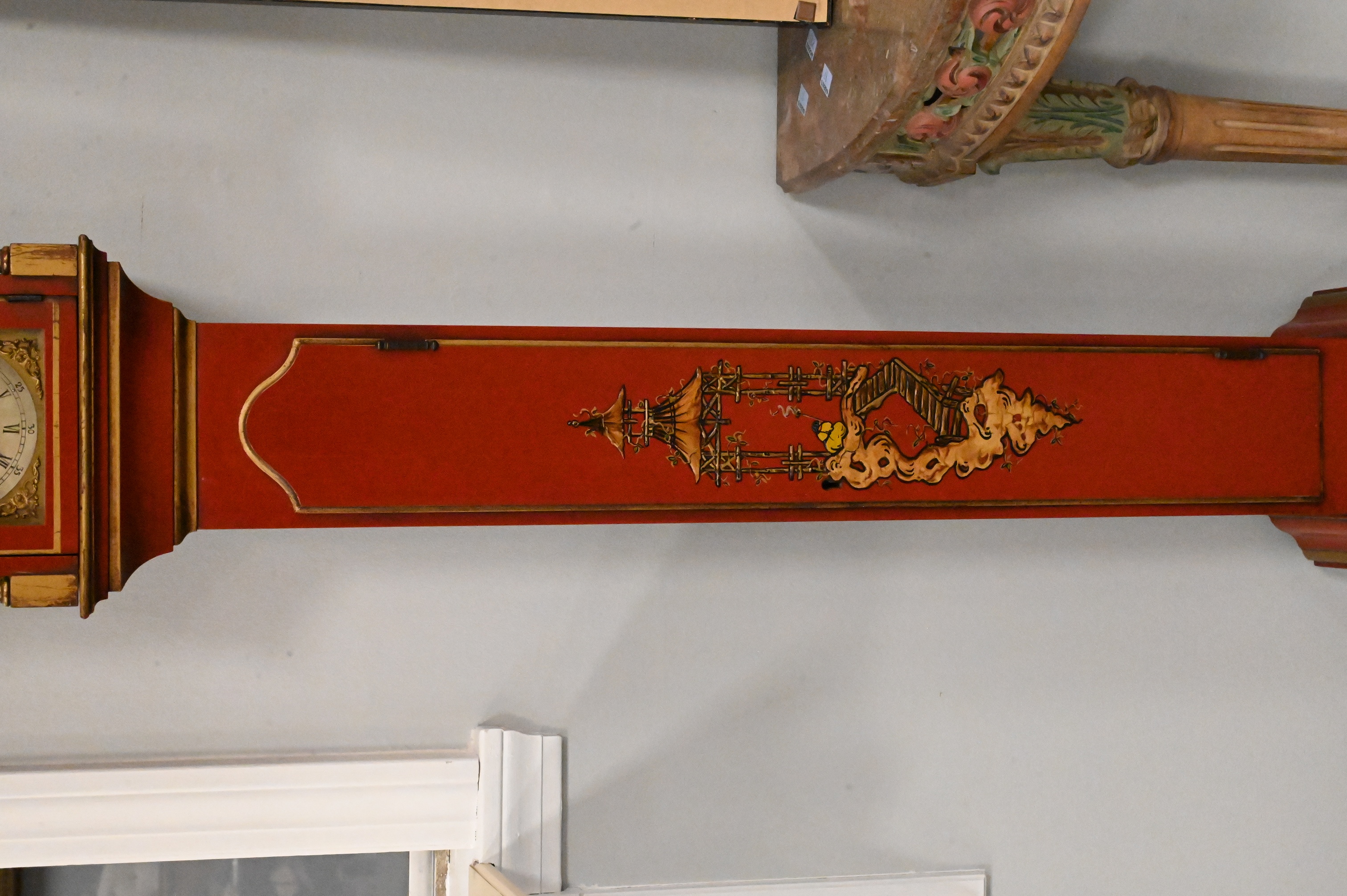 Lot 62: Tempus Fugit Edwardian Style Red Lacquered Grandmother Clock