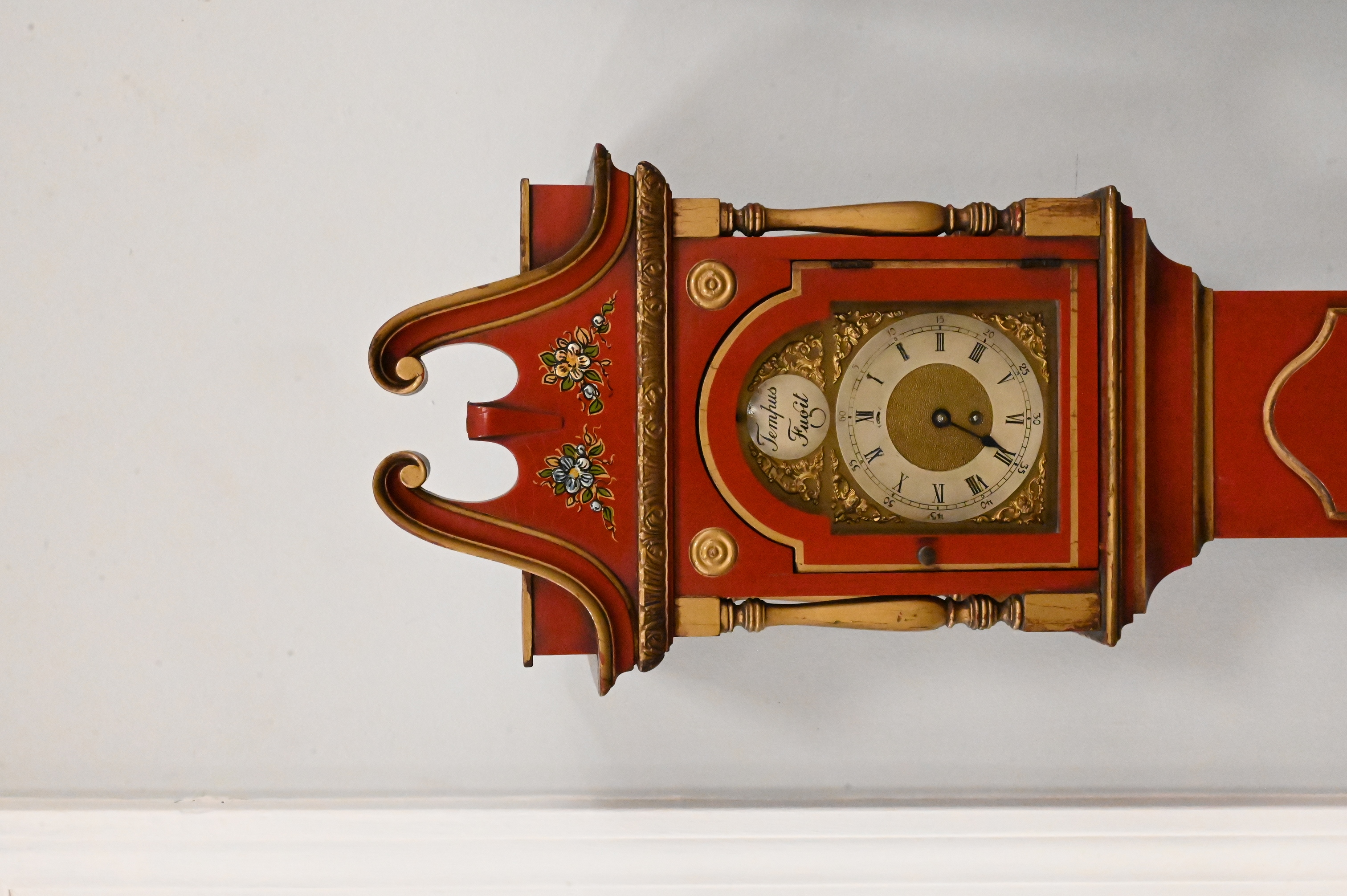 Tempus Fugit Edwardian Style Red Lacquered Grandmother Clock