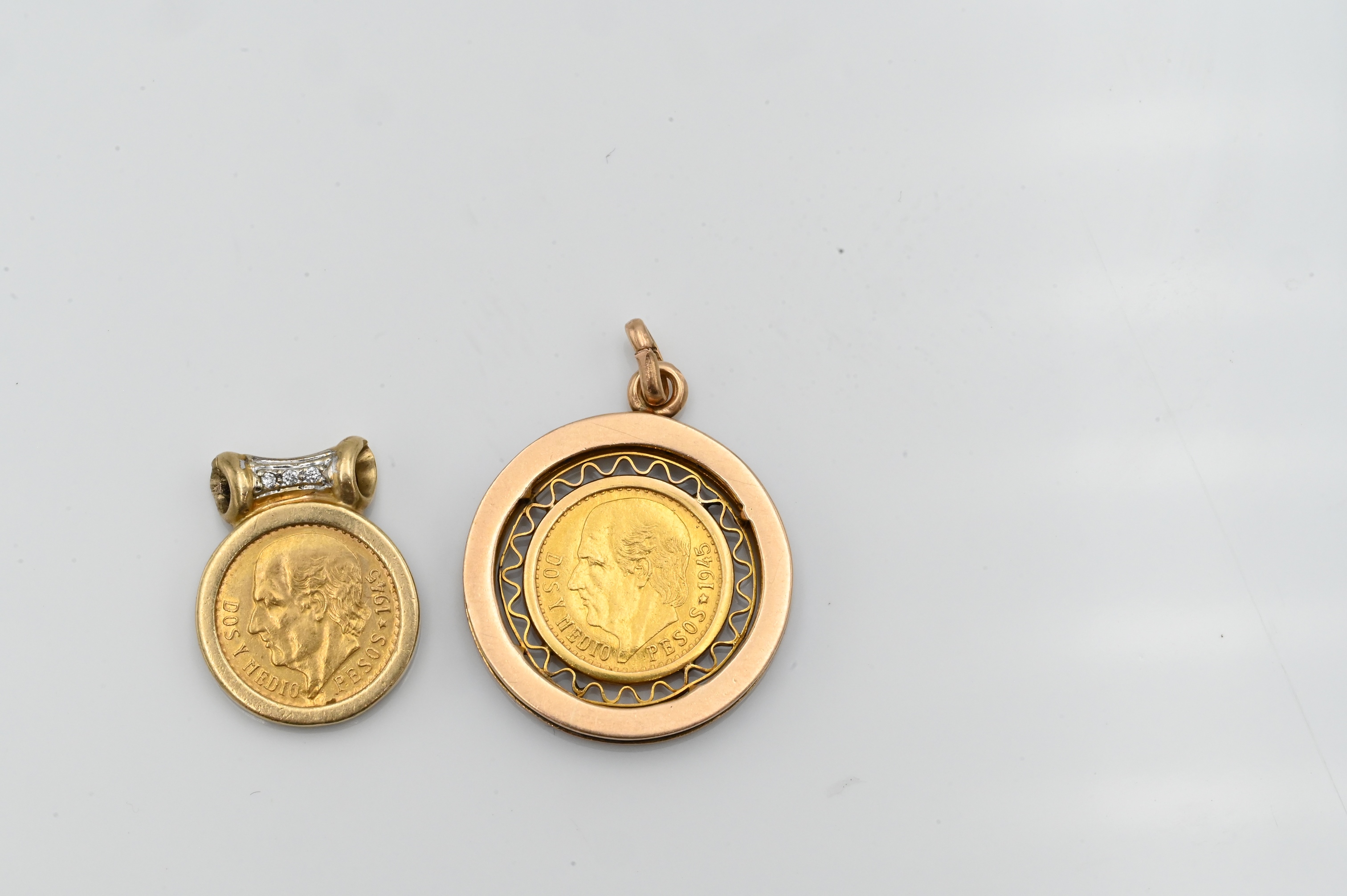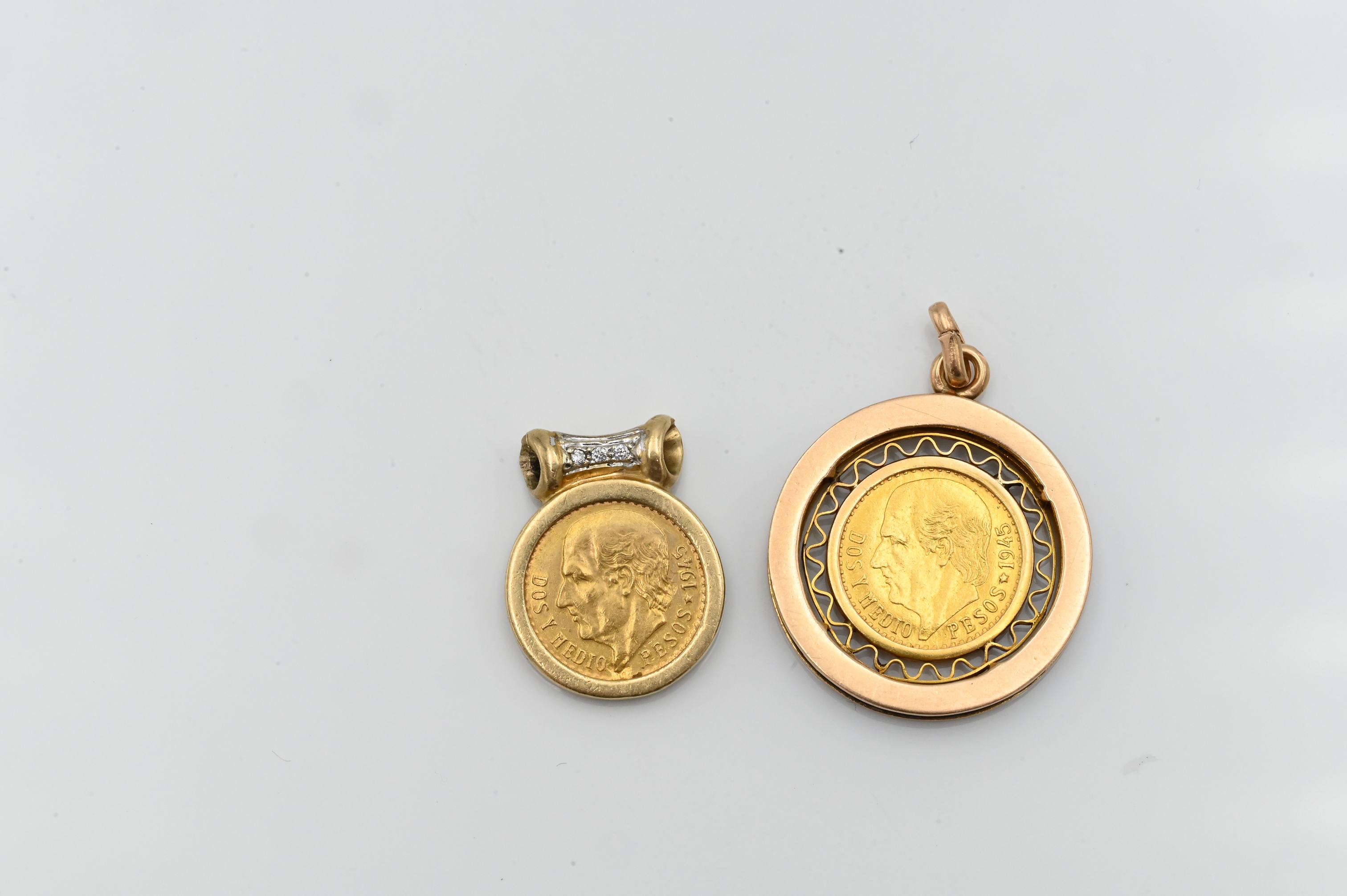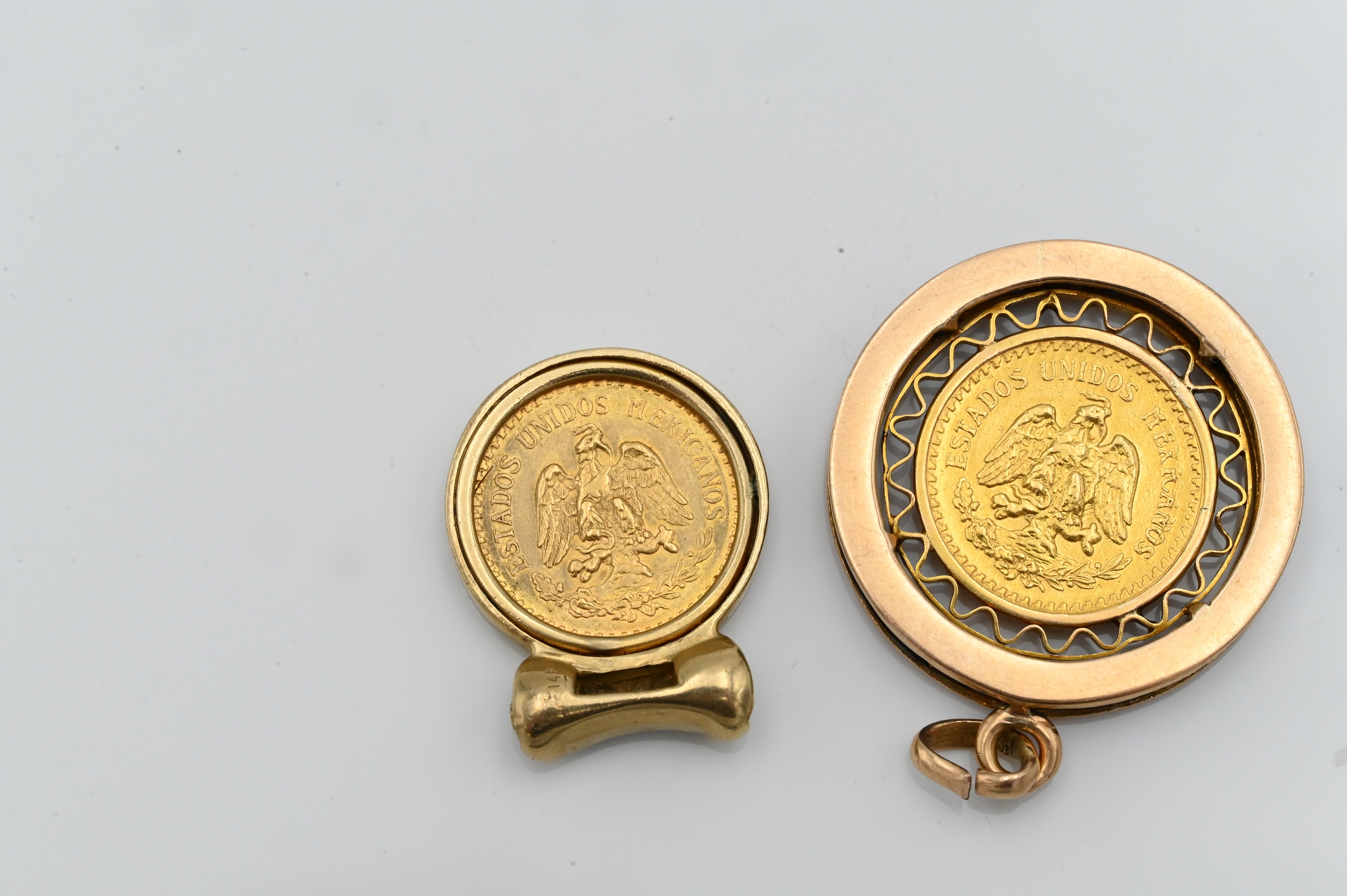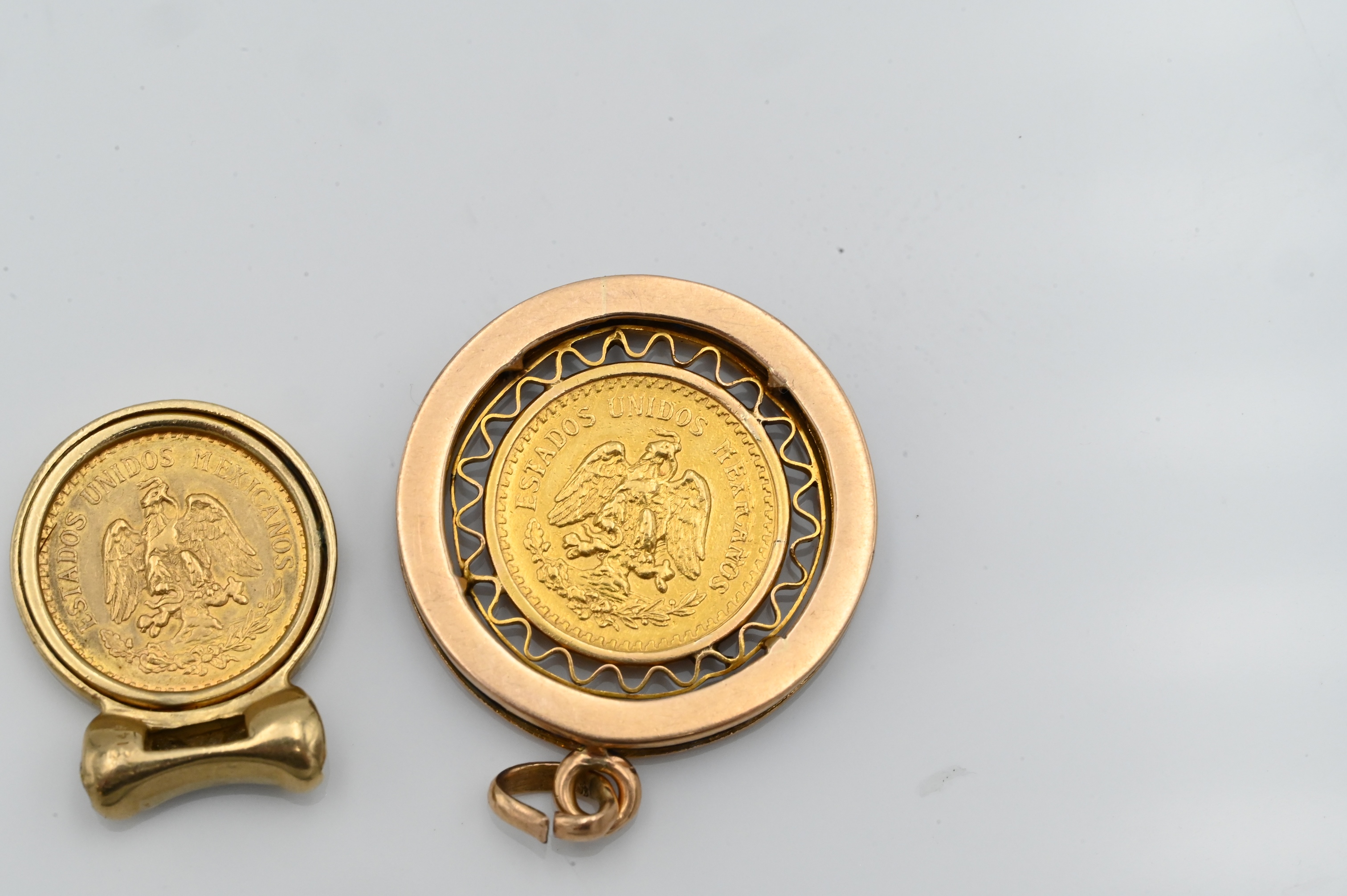 Lot 62: Two 2 Peso Gold Coins in 14K Yellow Gold Settings