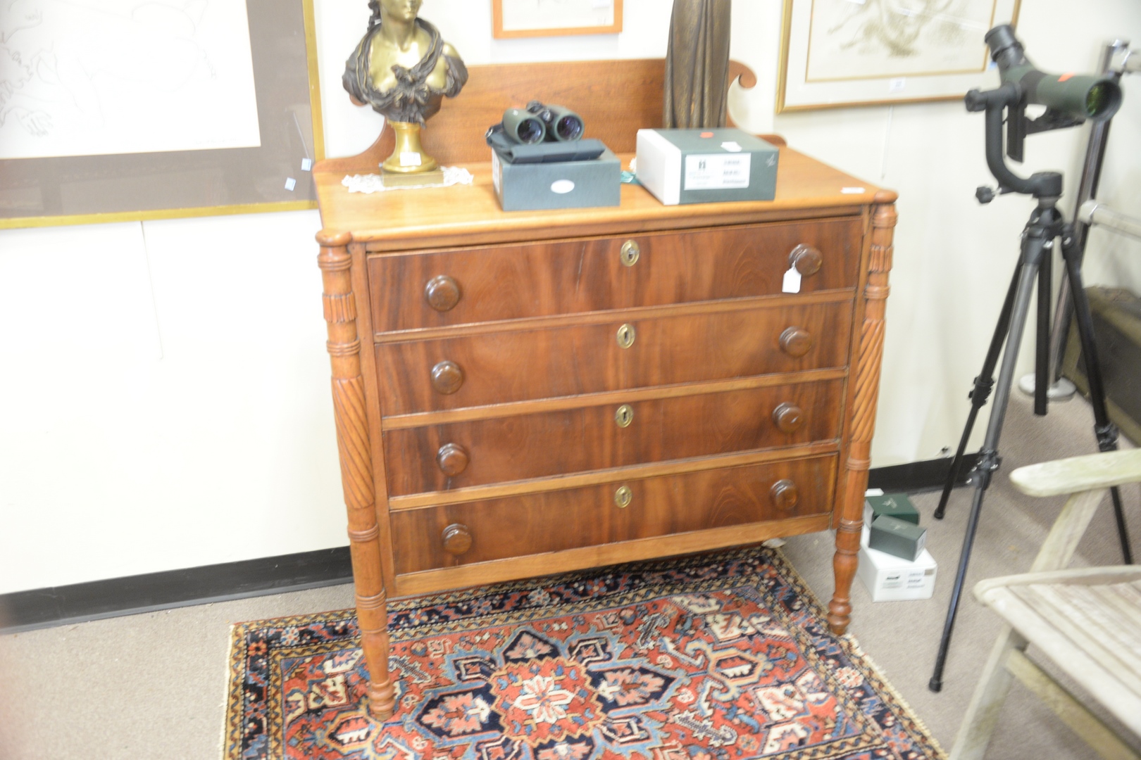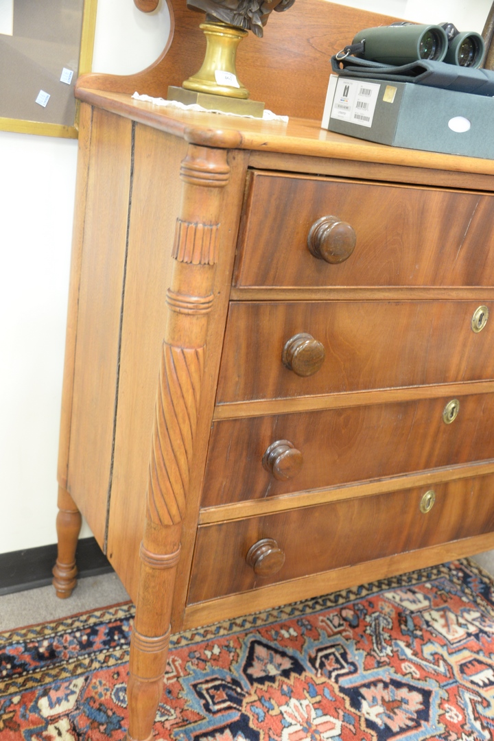 Lot 620: Alamson Lombard Sheraton Four Drawer Chest signed on back of drawer, Made by Alamson Lombard, Sutton, Massachusetts c. 1830