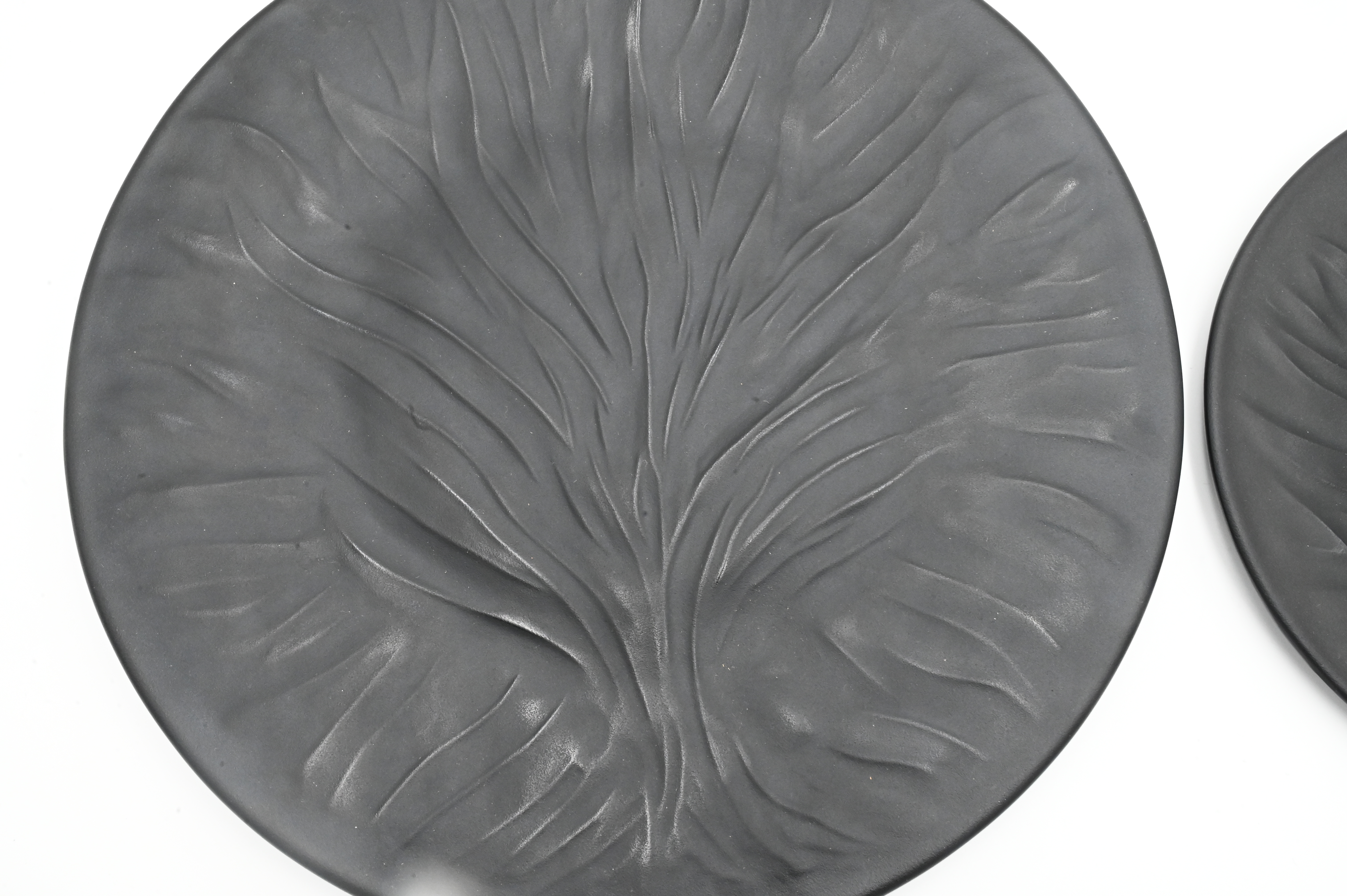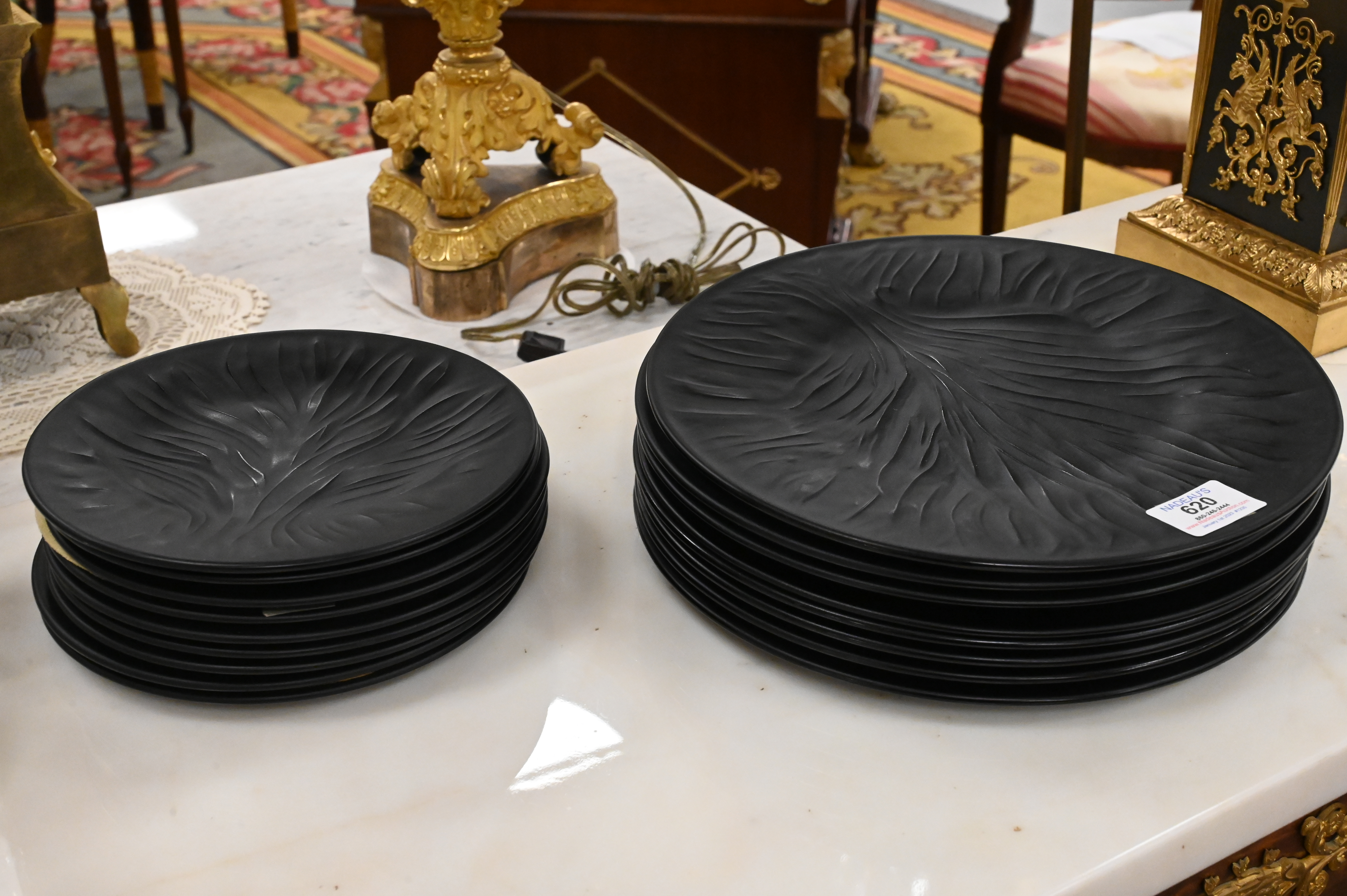 Lot 620: Set of 26 Lalique Algues Black Glass Plates