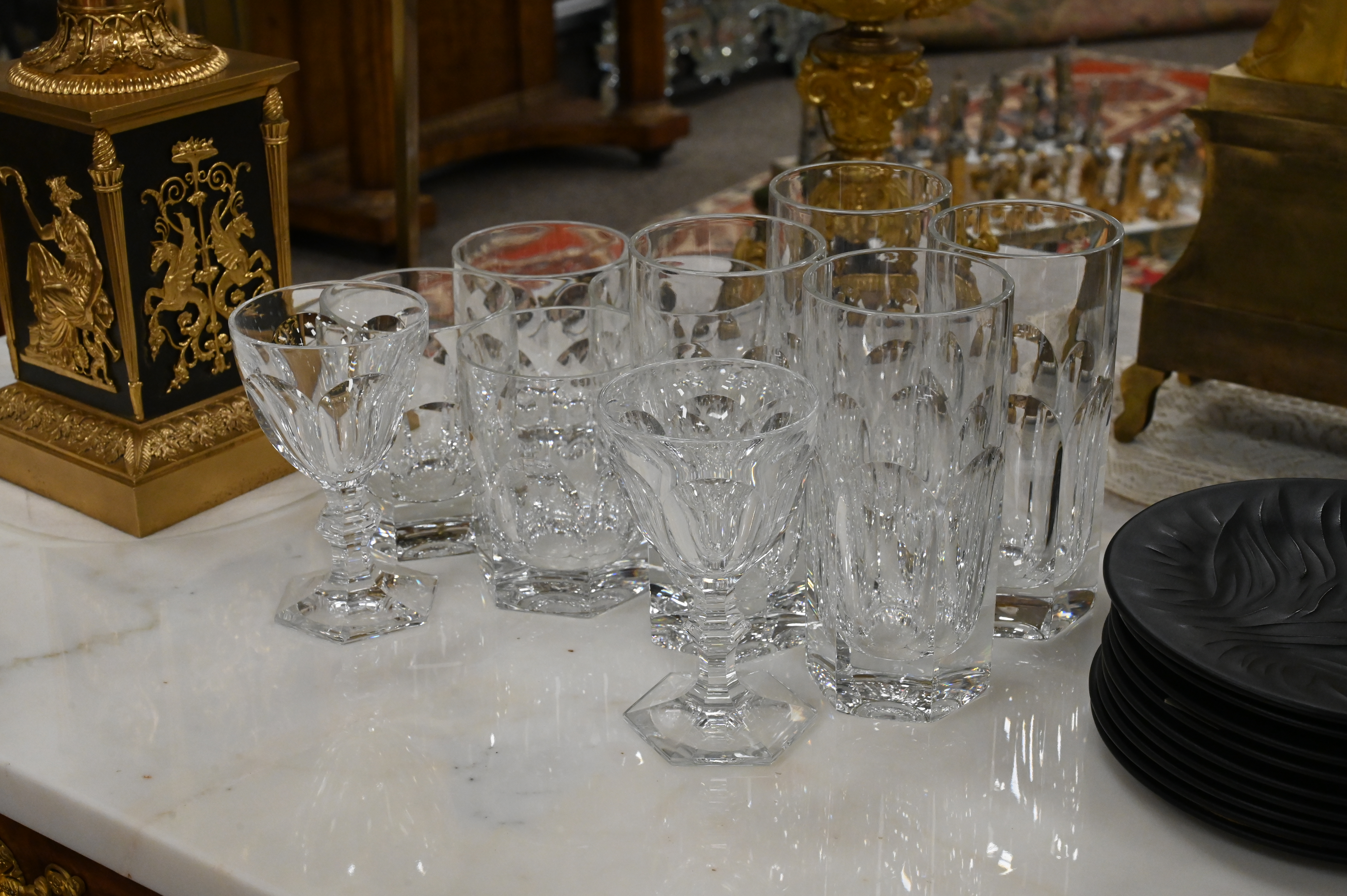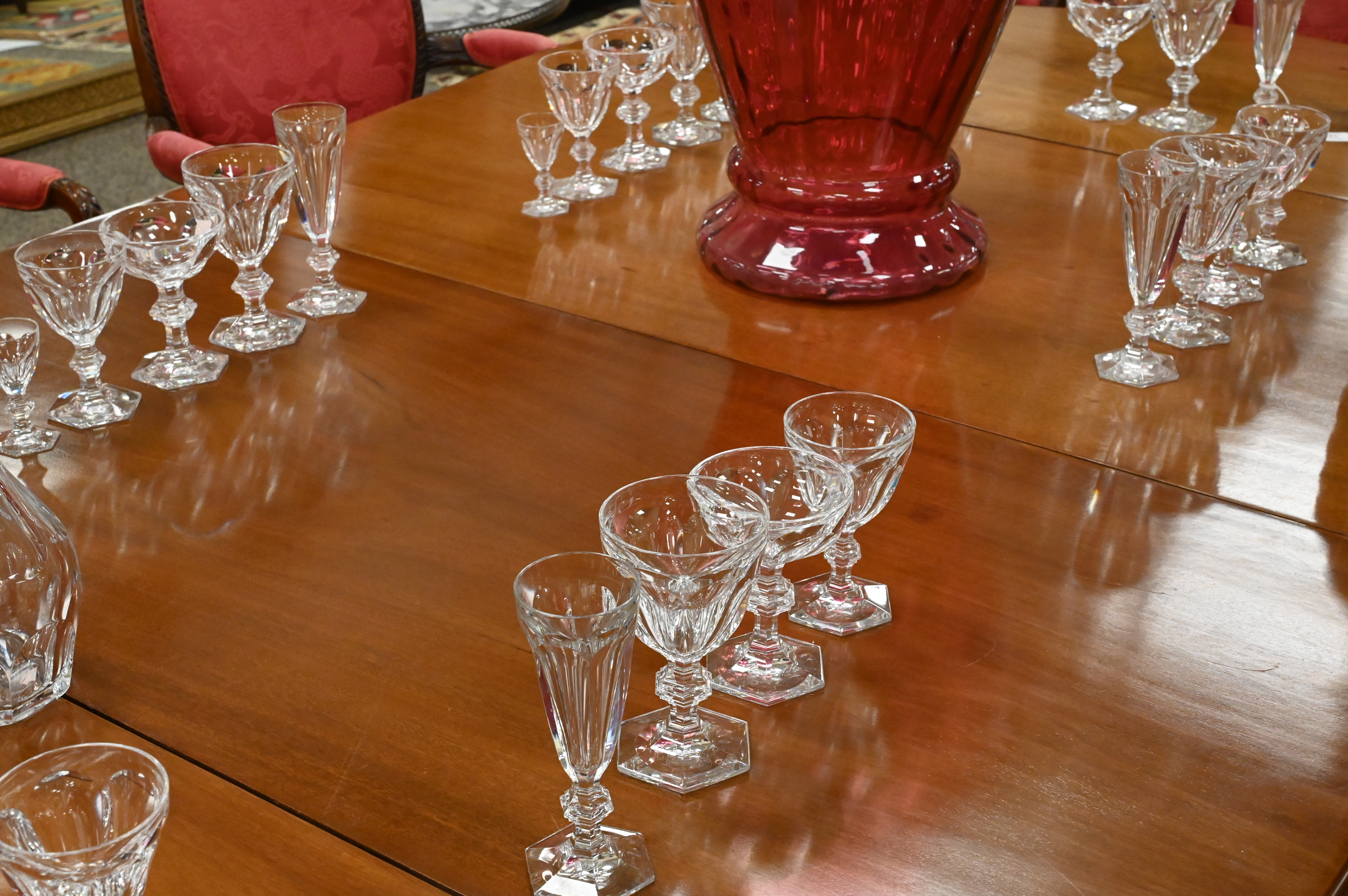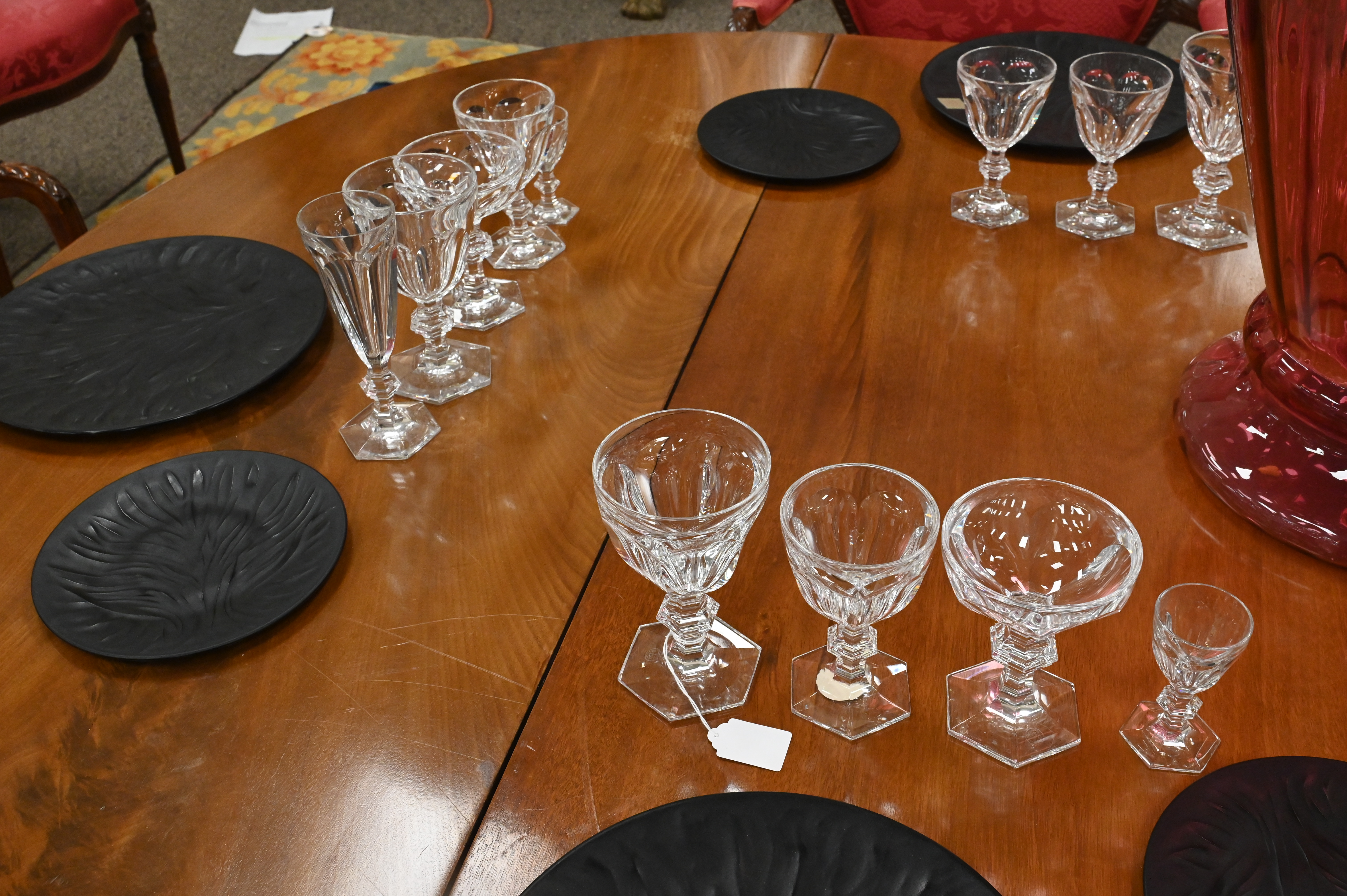 includes various sizes, 1 decanter, 7 champagne glasses, 10 red wine glasses