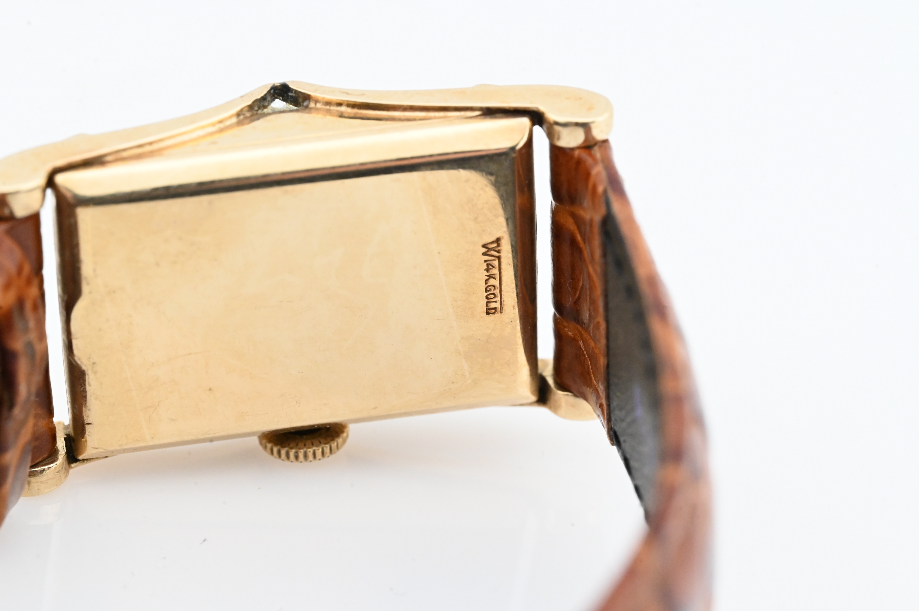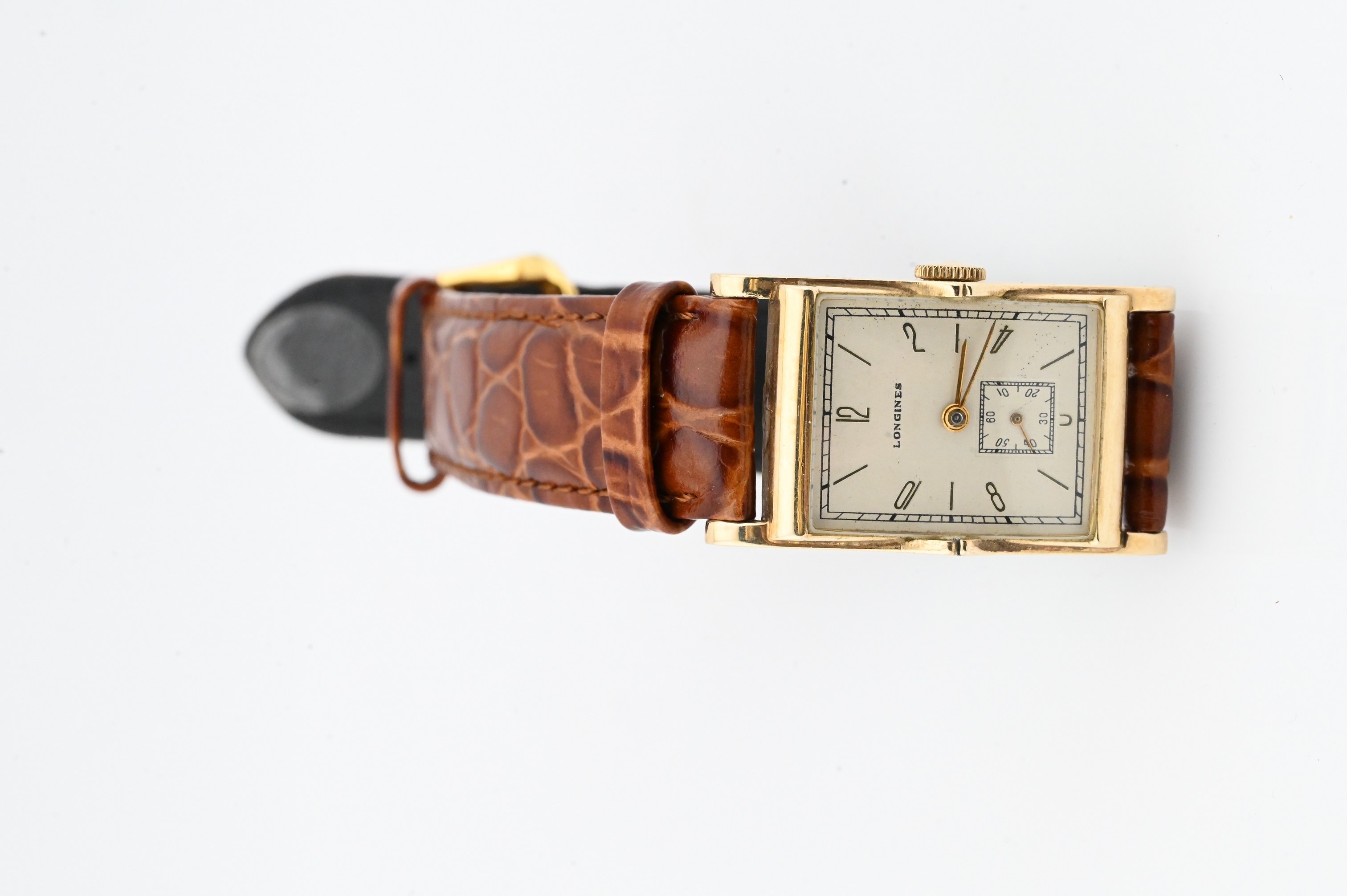 Lot 622: Longines 14K Gold Rectangular Wristwatch with Hooded Lugs