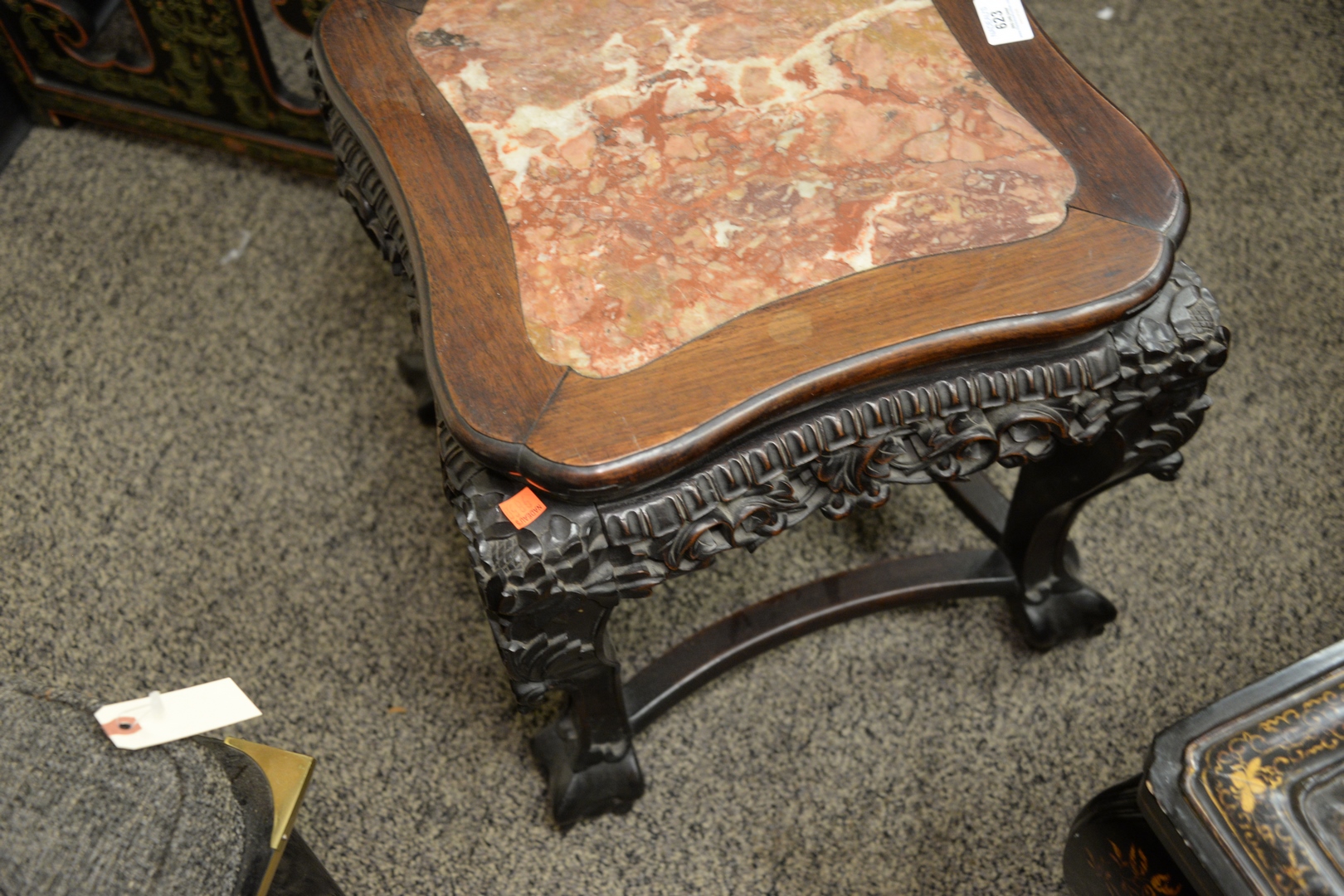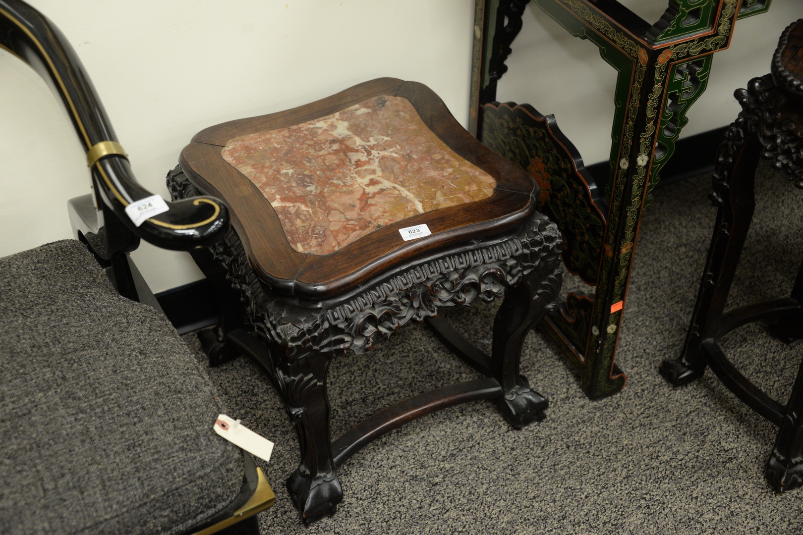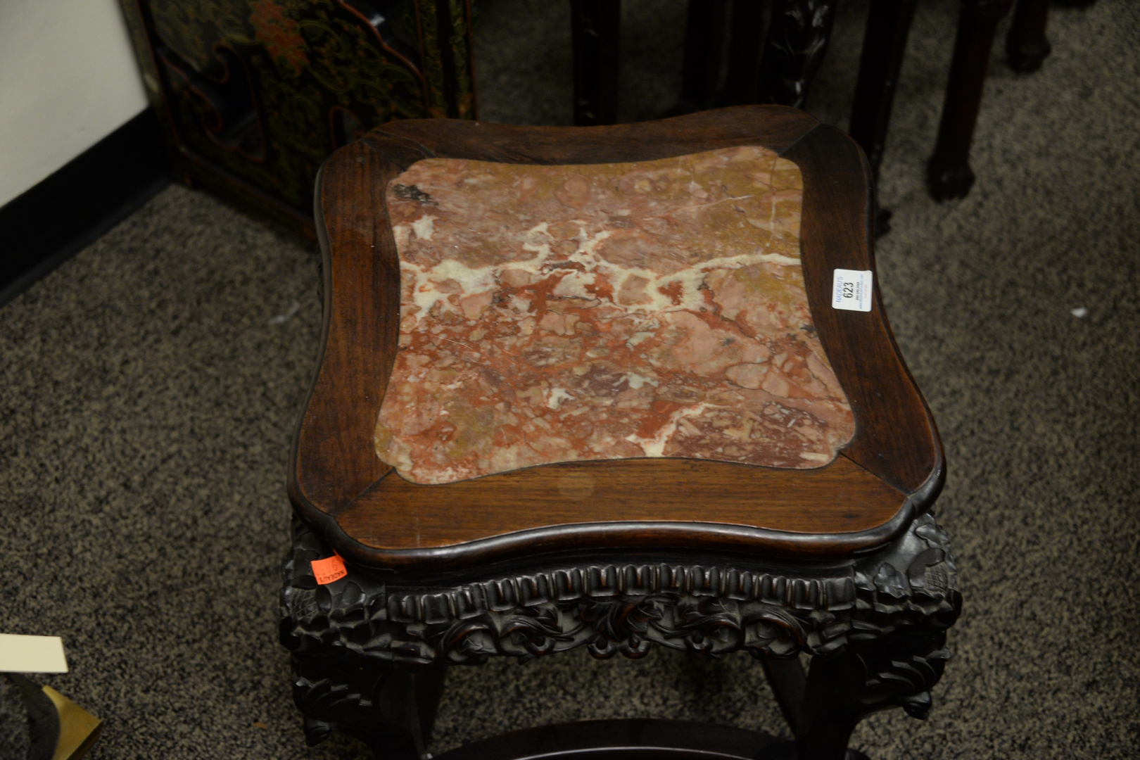 Chinese Hardwood Stand, having inset rouge marble, height 18 inches, top 17 x 17.
