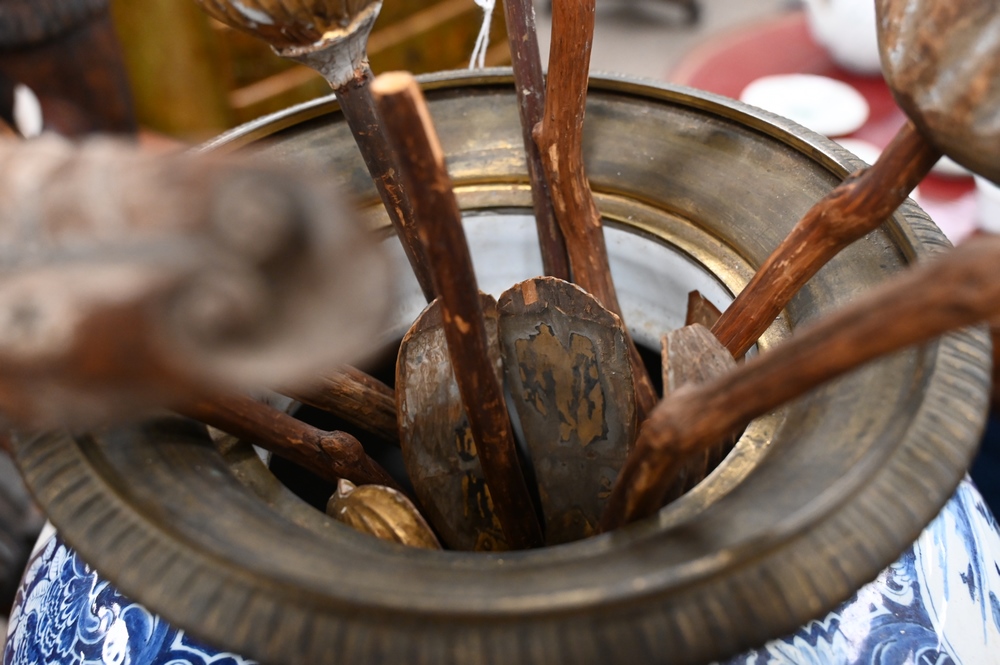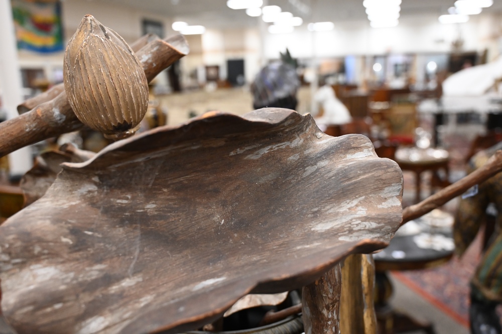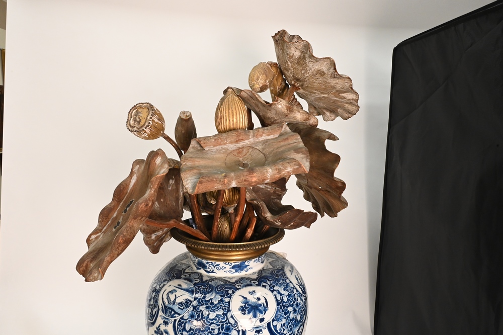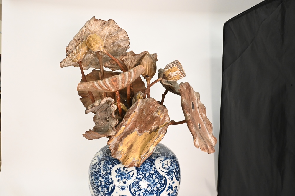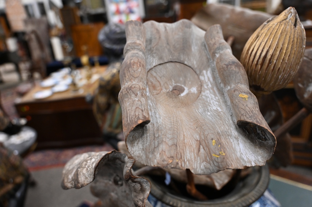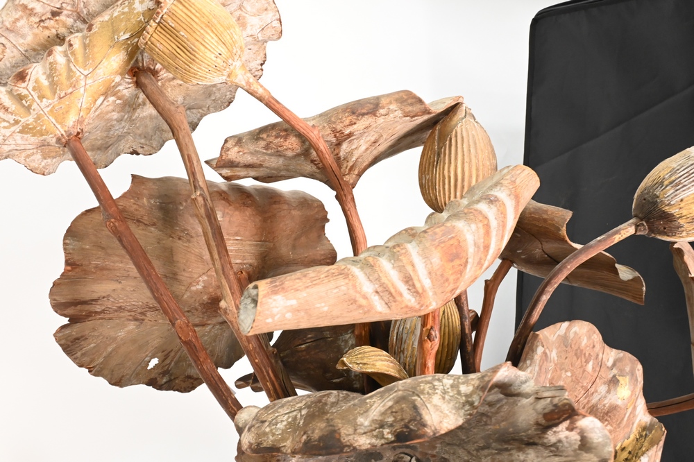 Lot 623: Group of Carved Giltwood Models of Blossoming Lotus Flowers, to include 14 flowers and buds, most paint and gilt is worn, largest 38…
