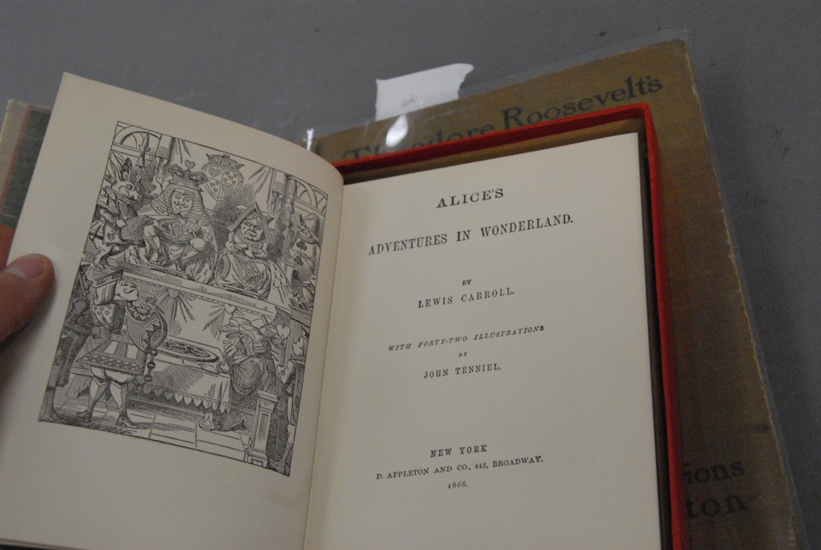 Alice’s Adventures in Wonderland Facsimile Reproduction of the first American Edition of 1866 in slipcase about 1940, Theodore Roosevelt, Ranch Life and The Hunting Trail 1888 with Remington Illustrations ex. lib.