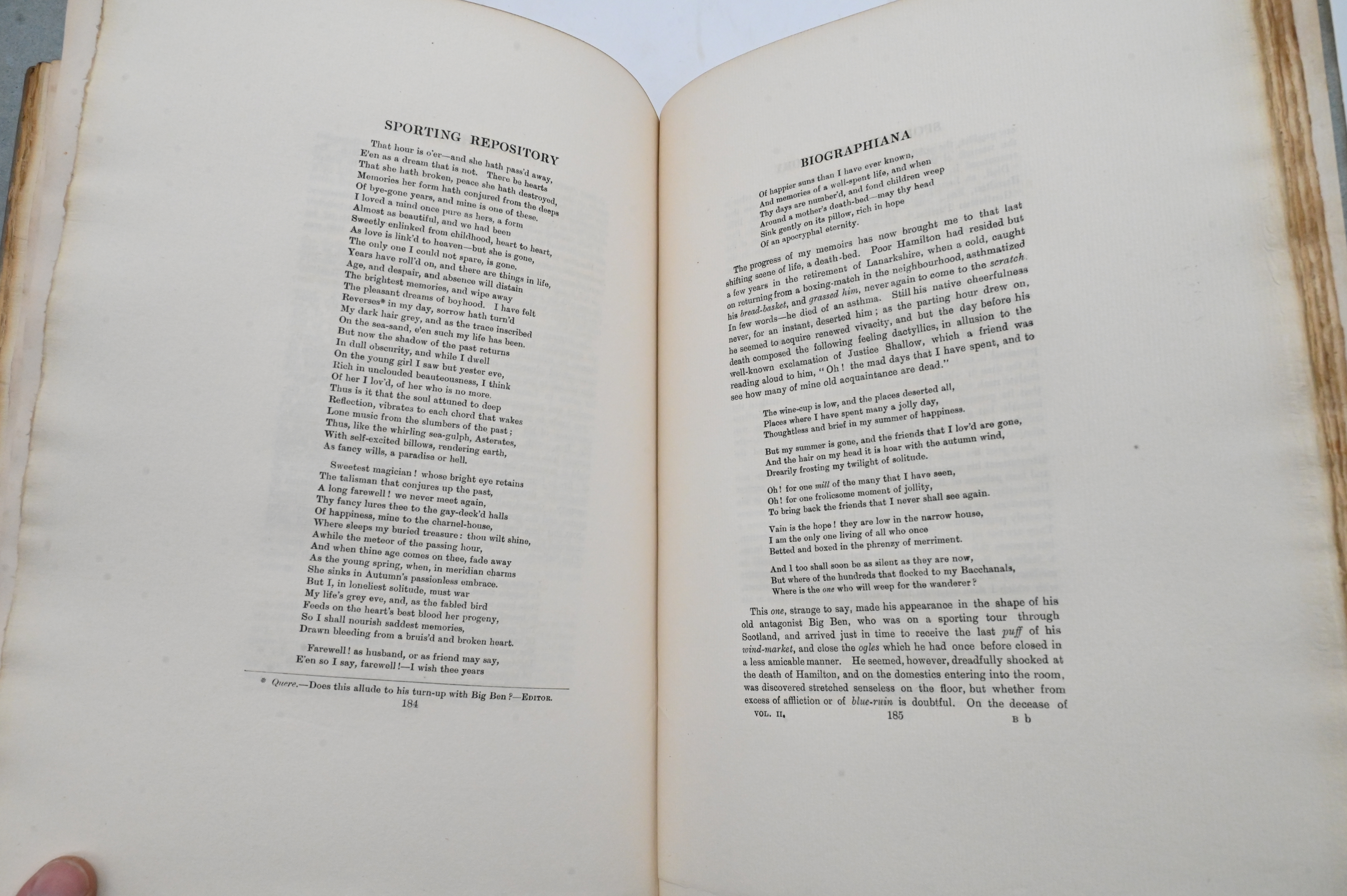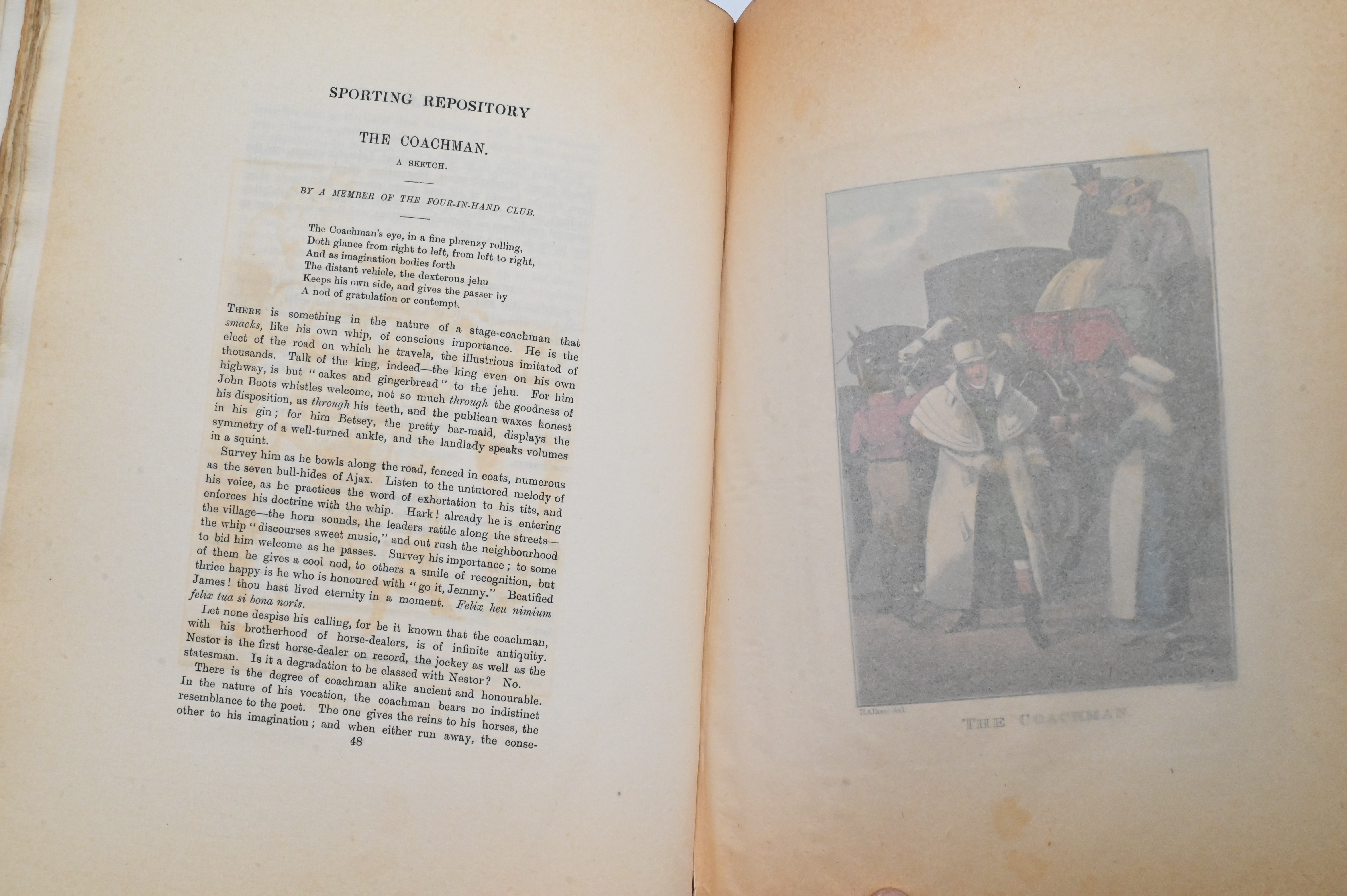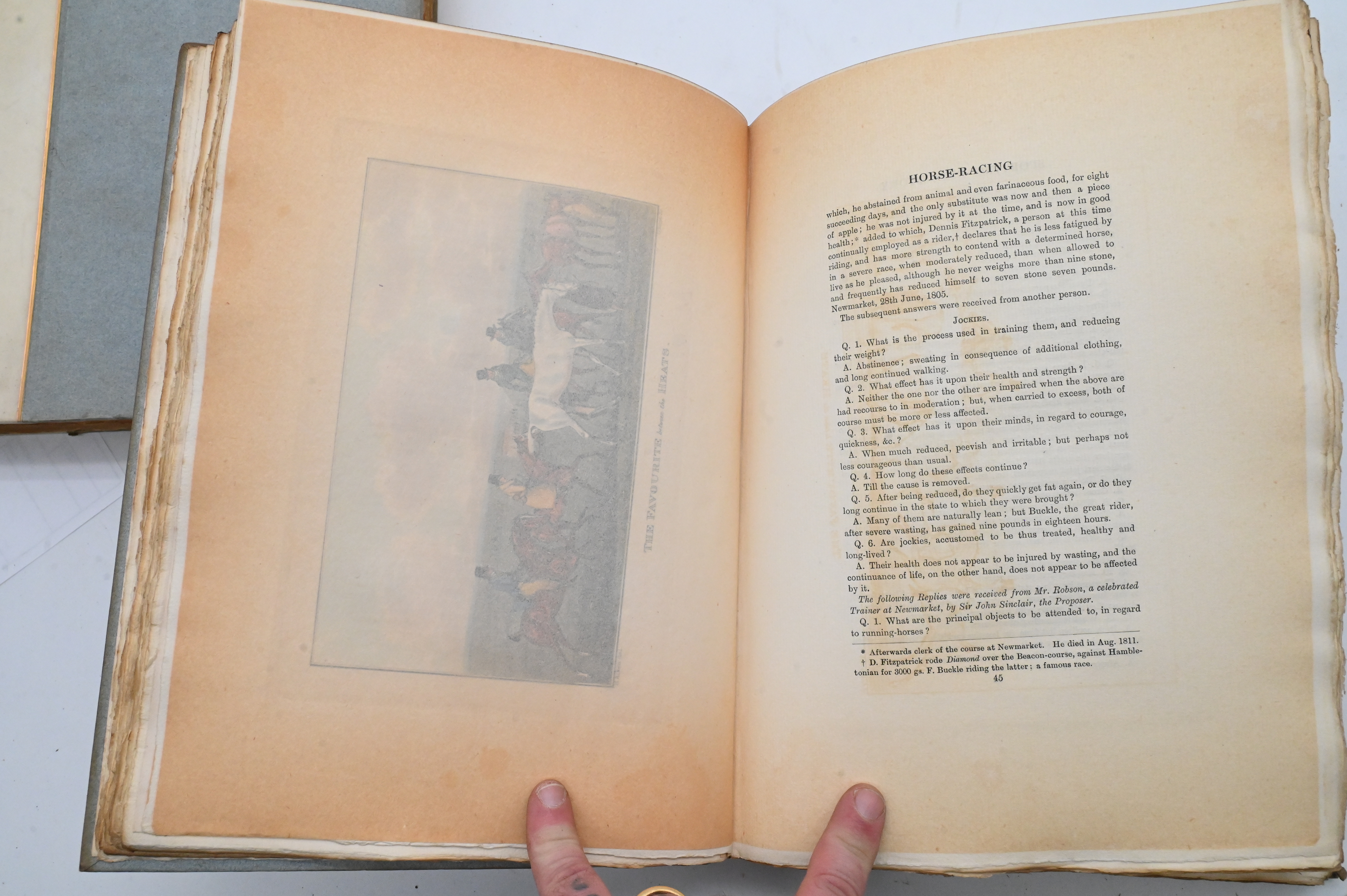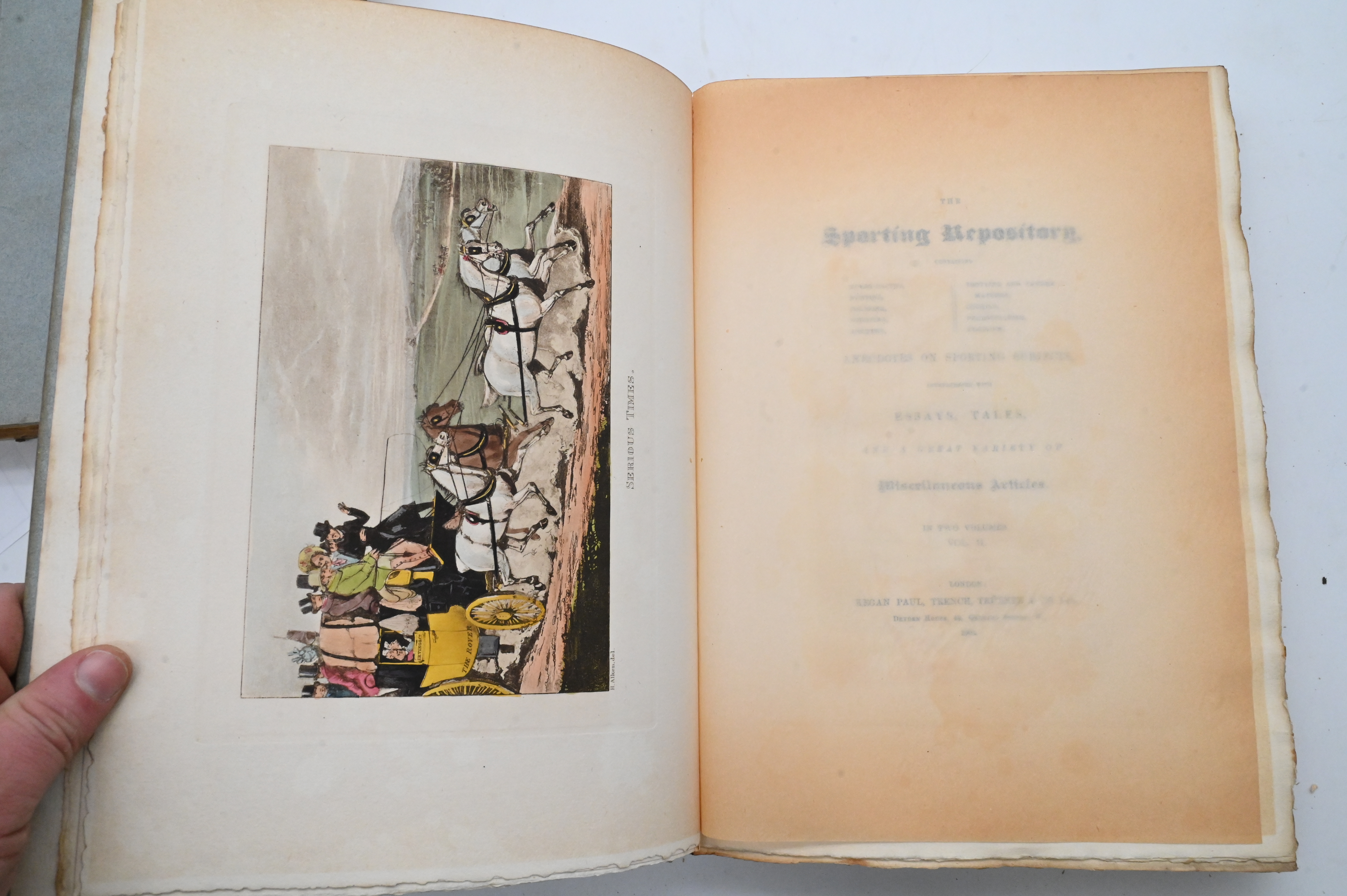 Handsomely produced two-volume set, illustrated by Henry Alken, John Thomas Barenger, Benjamin Marshall, and Dighton, containing essays, anecdotes, and commentary on early 19th-century sporting life, including horse racing, hunting, coursing, shooting, archery, cocking, pedestrianism, pugilism, and related pursuits.