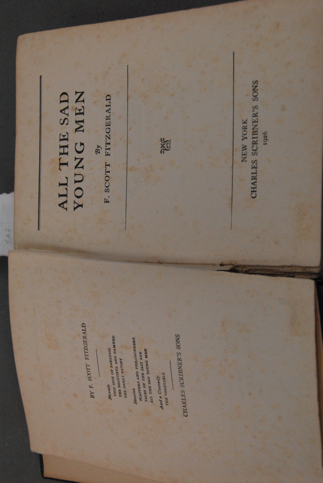 F. Scott Fitzgerald All The Sad Young Men, Scribners 1926 on title page, blue green cloth.