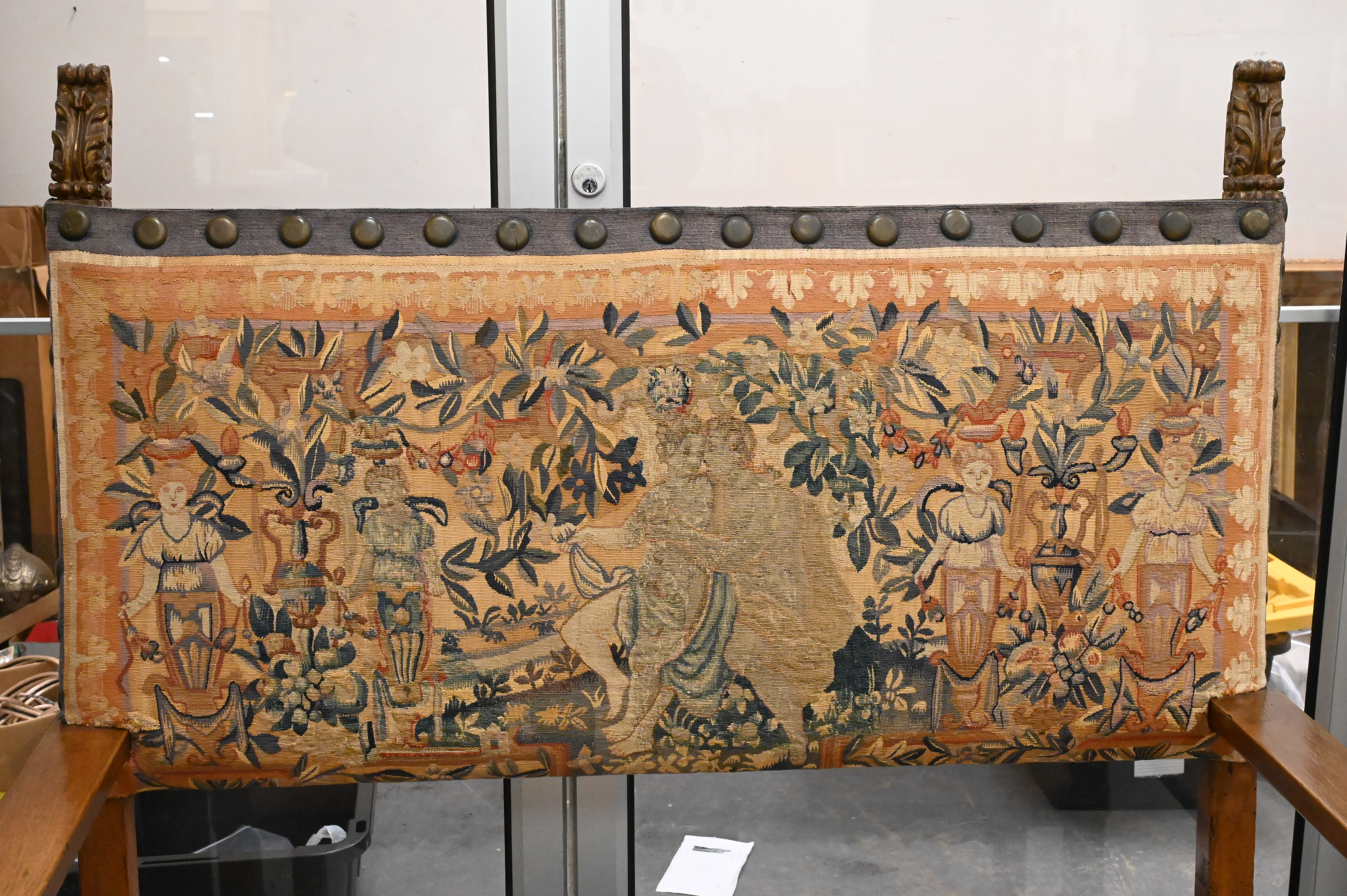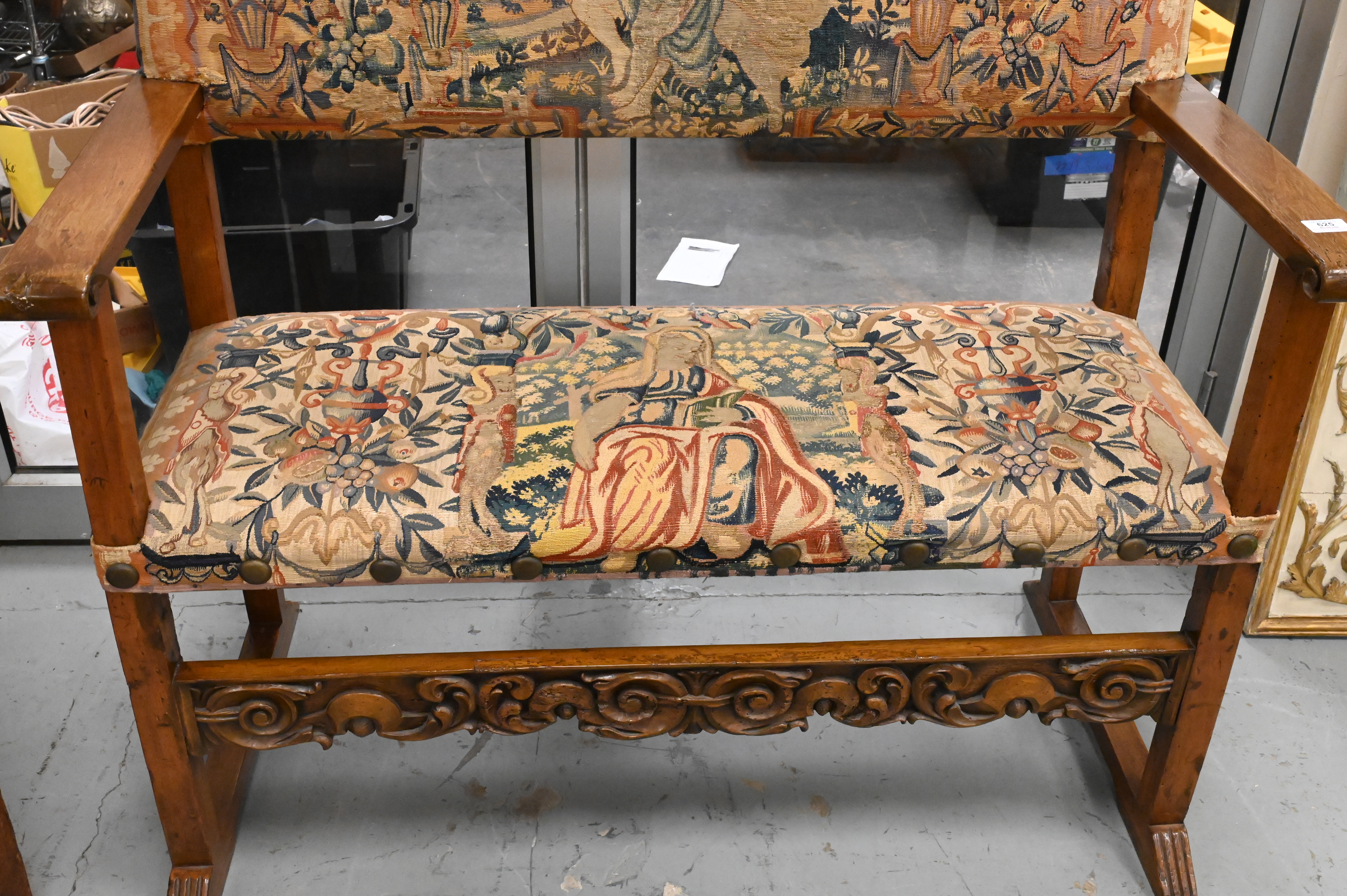 Lot 625: French Renaissance Walnut Needlepoint Upholstered Hall Bench