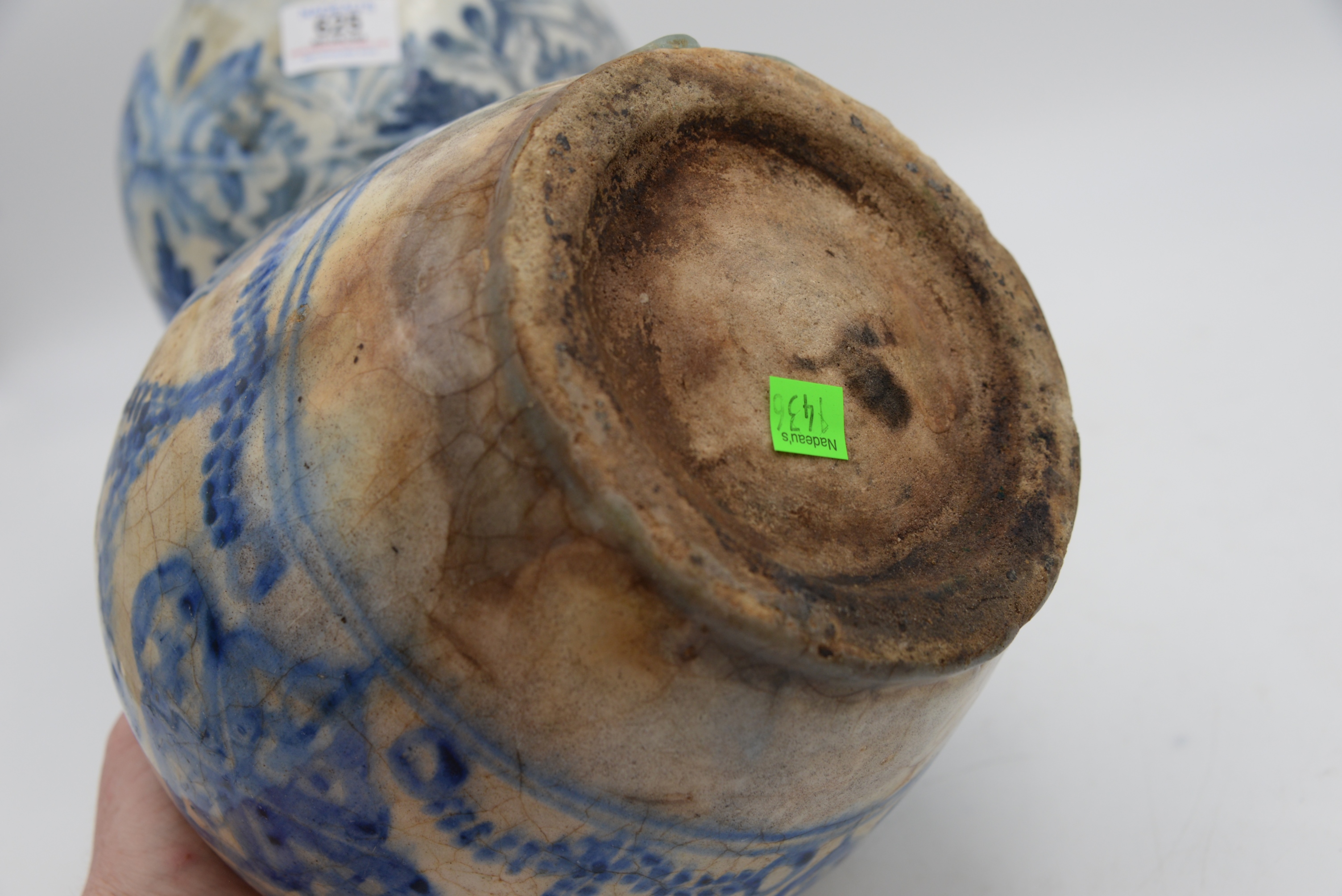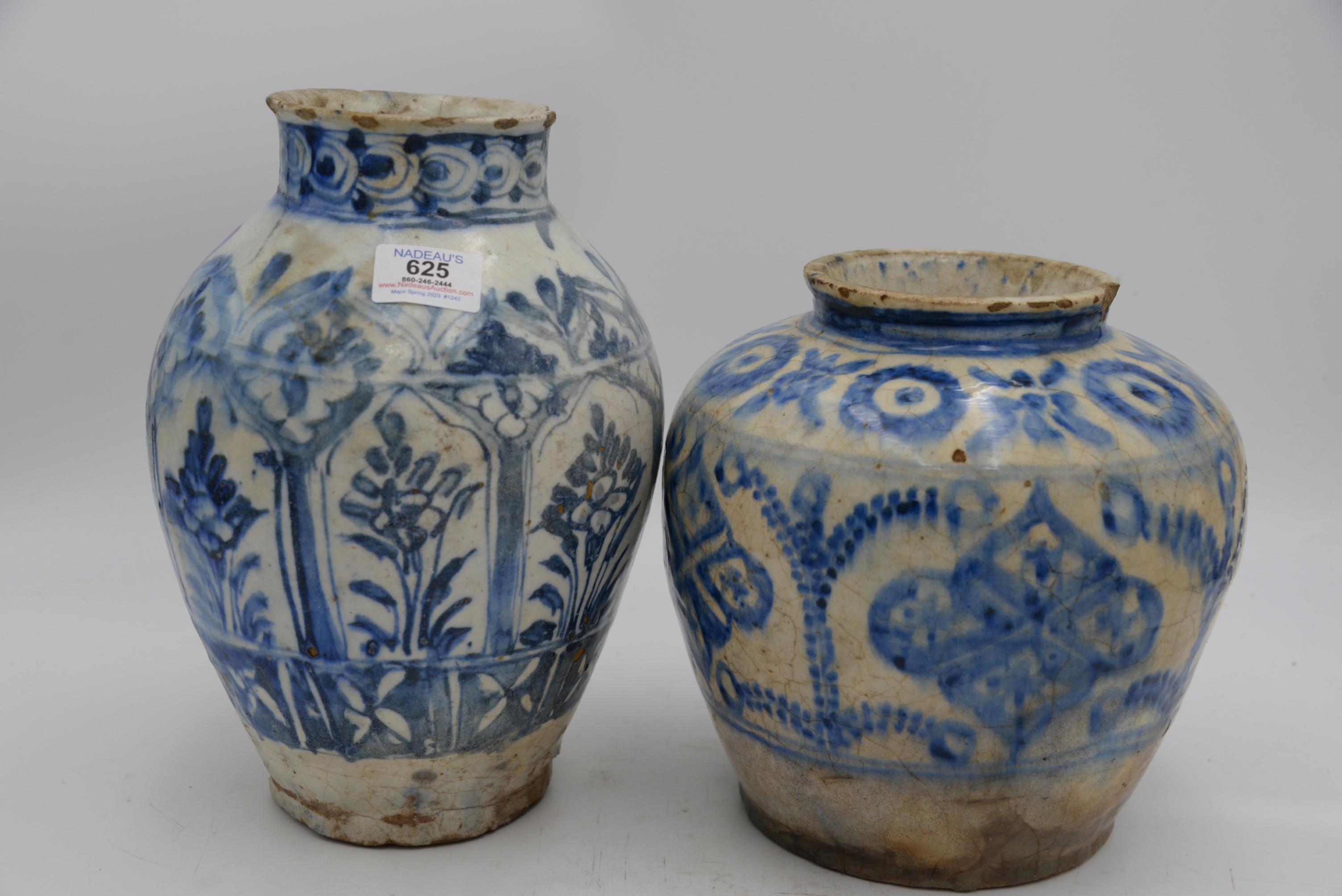 Lot 625: Two Persian Blue and White Glazed Ceramic Pots