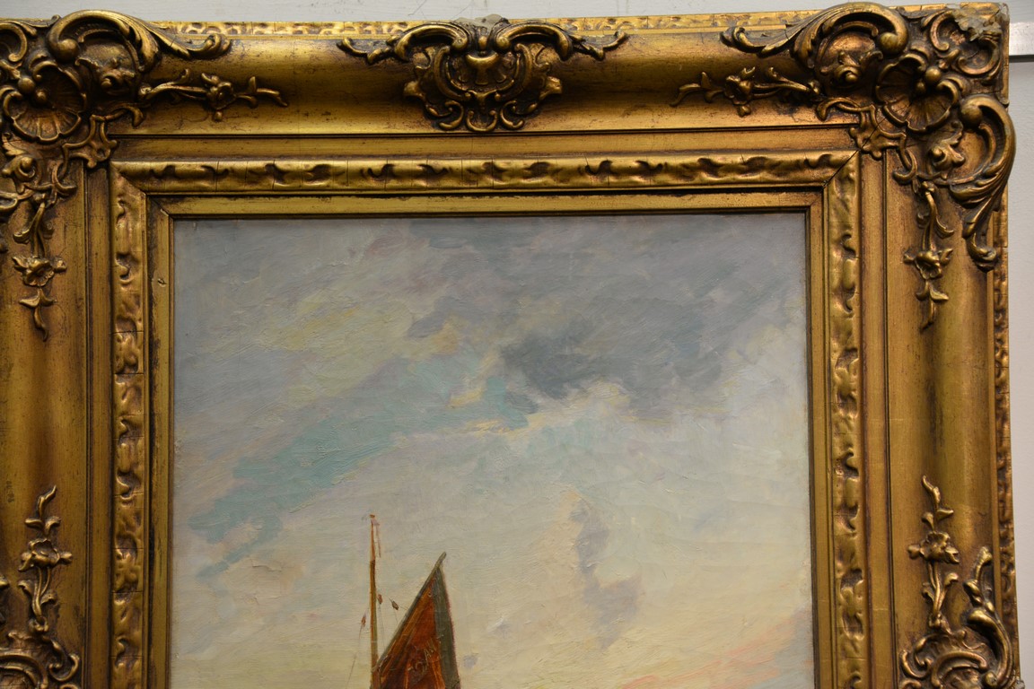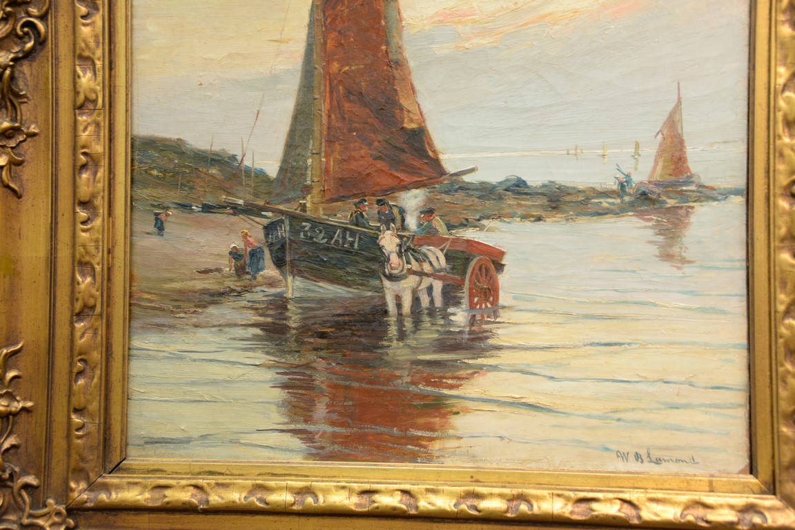 Lot 626: William Bradley Lamond 1857-1924 oil on canvas Unloading the Morning Catch signed lower right: W.B. Lamond 30 x 20