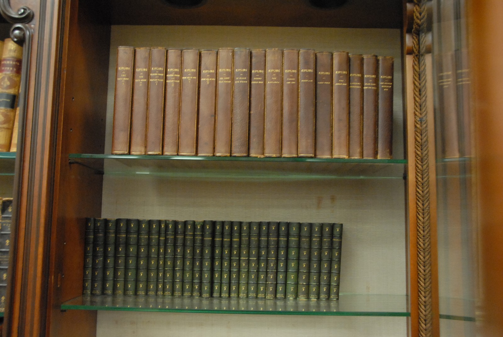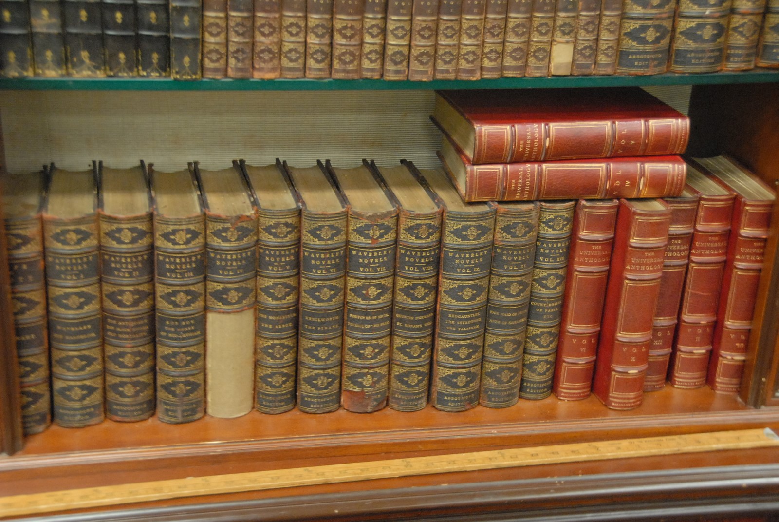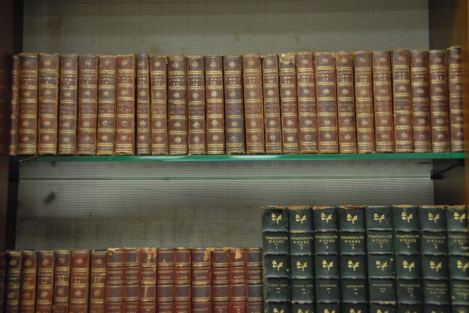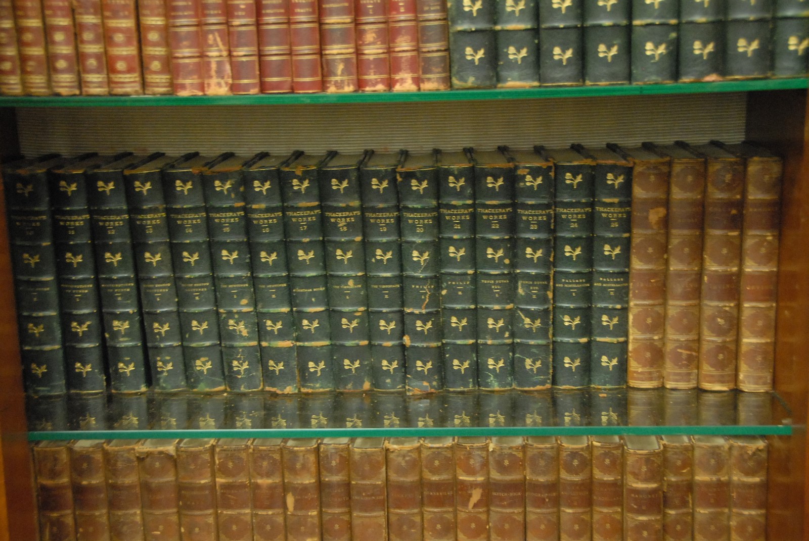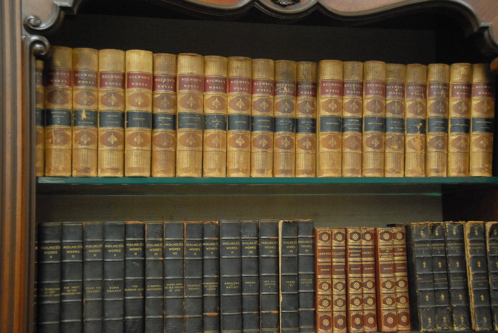 Approximately 232 leatherbound books including Bulwer’s Works, Holmes’s Works, Scott’s Prose Works, Thackeray’s Works, Hawthorne Works, etc.