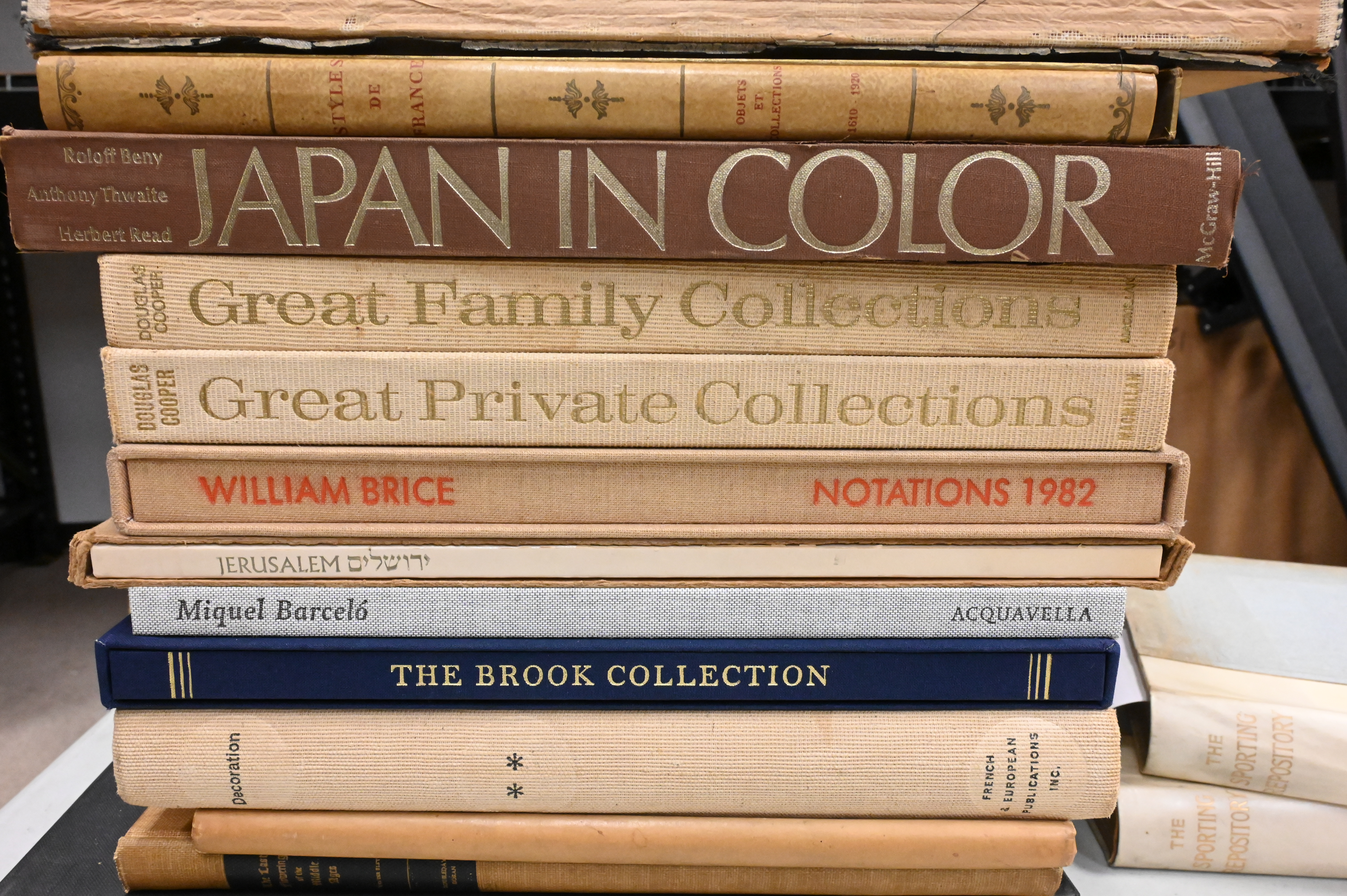 Comprising a varied group of illustrated art and design volumes, including titles on modern and contemporary art, museum and private collections, decorative arts, and artists’ monographs, to include works on Diana Vreeland, Françoise Gilot, Jean-Auguste-Dominique Ingres, Tamara de Lempicka, Miguel Barceló, Japanese art and collections, French decoration, and private and institutional collections, among others. Hardcover volumes, various publishers, late 20th century, some in original cloth or boards.