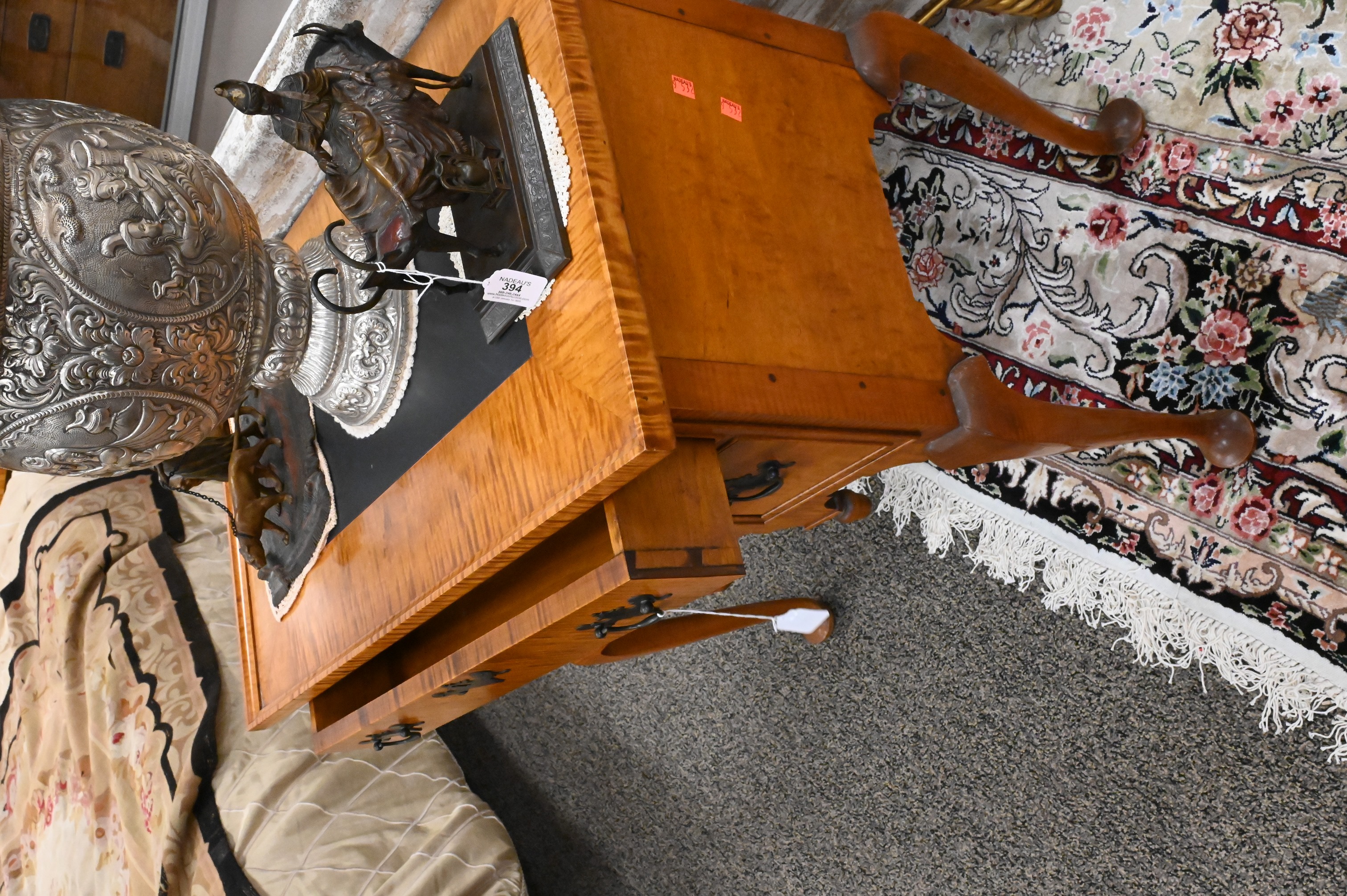 Lot 628: David Le Fort Tiger Maple Queen Anne Style Lowboy
