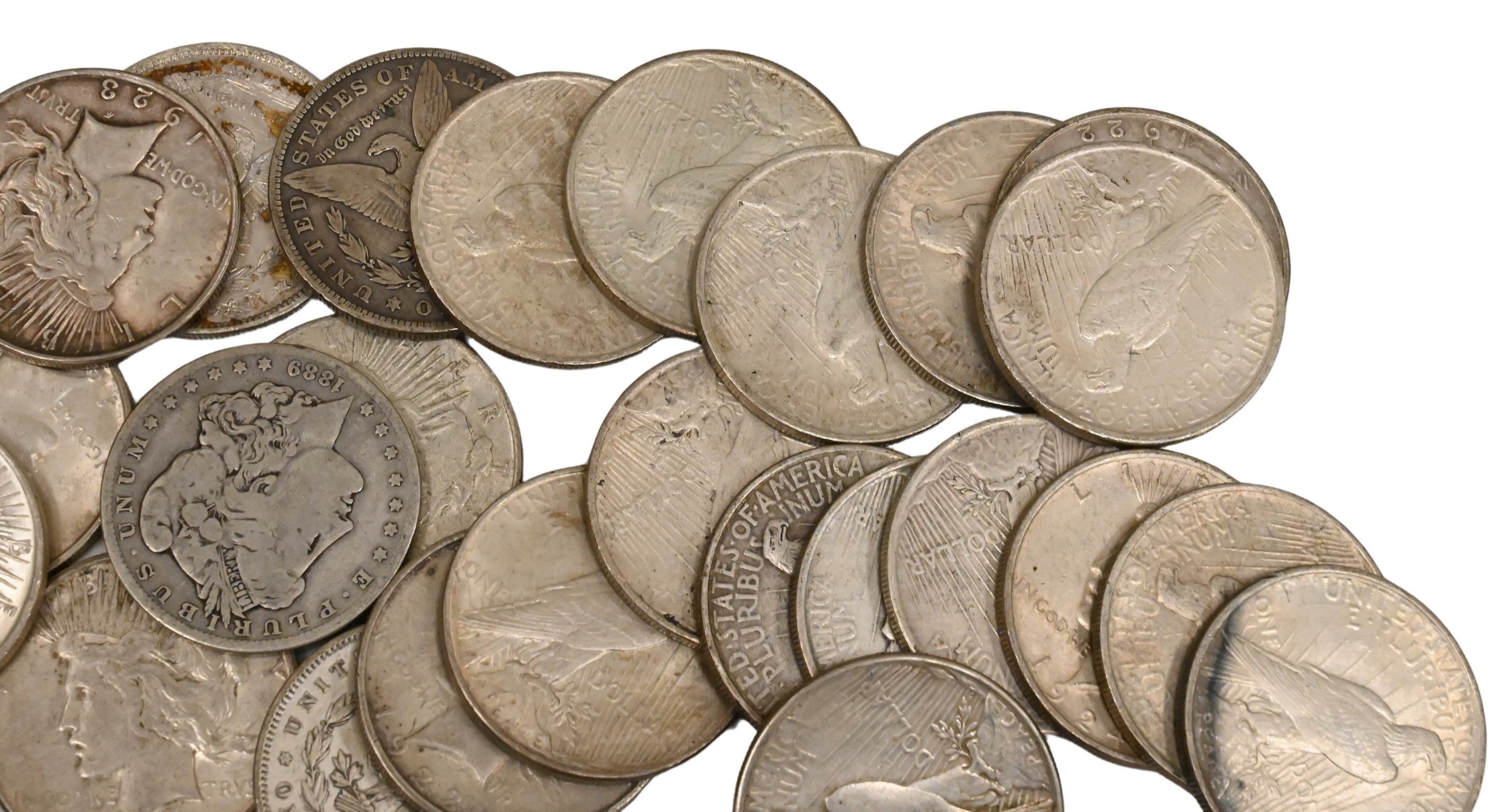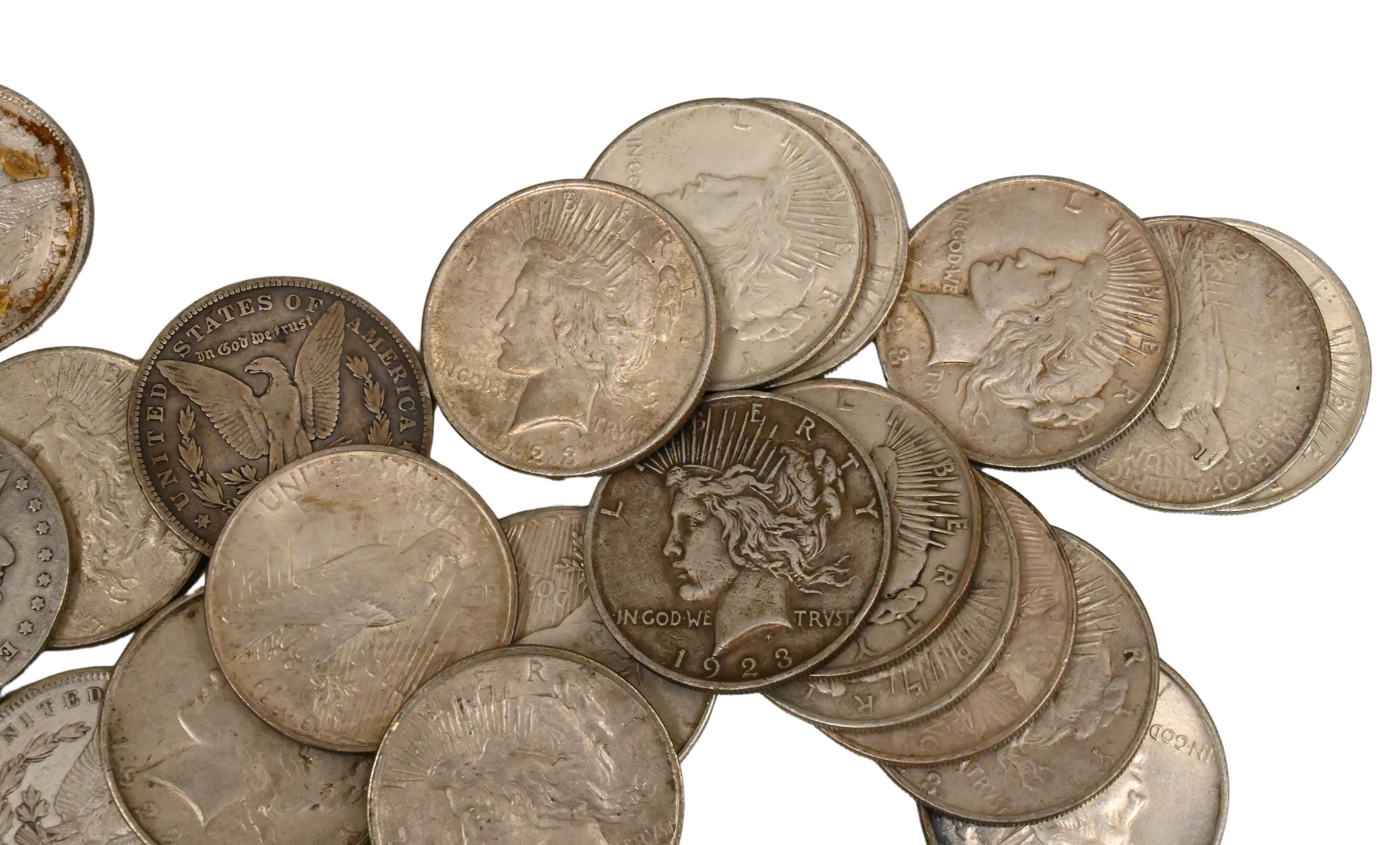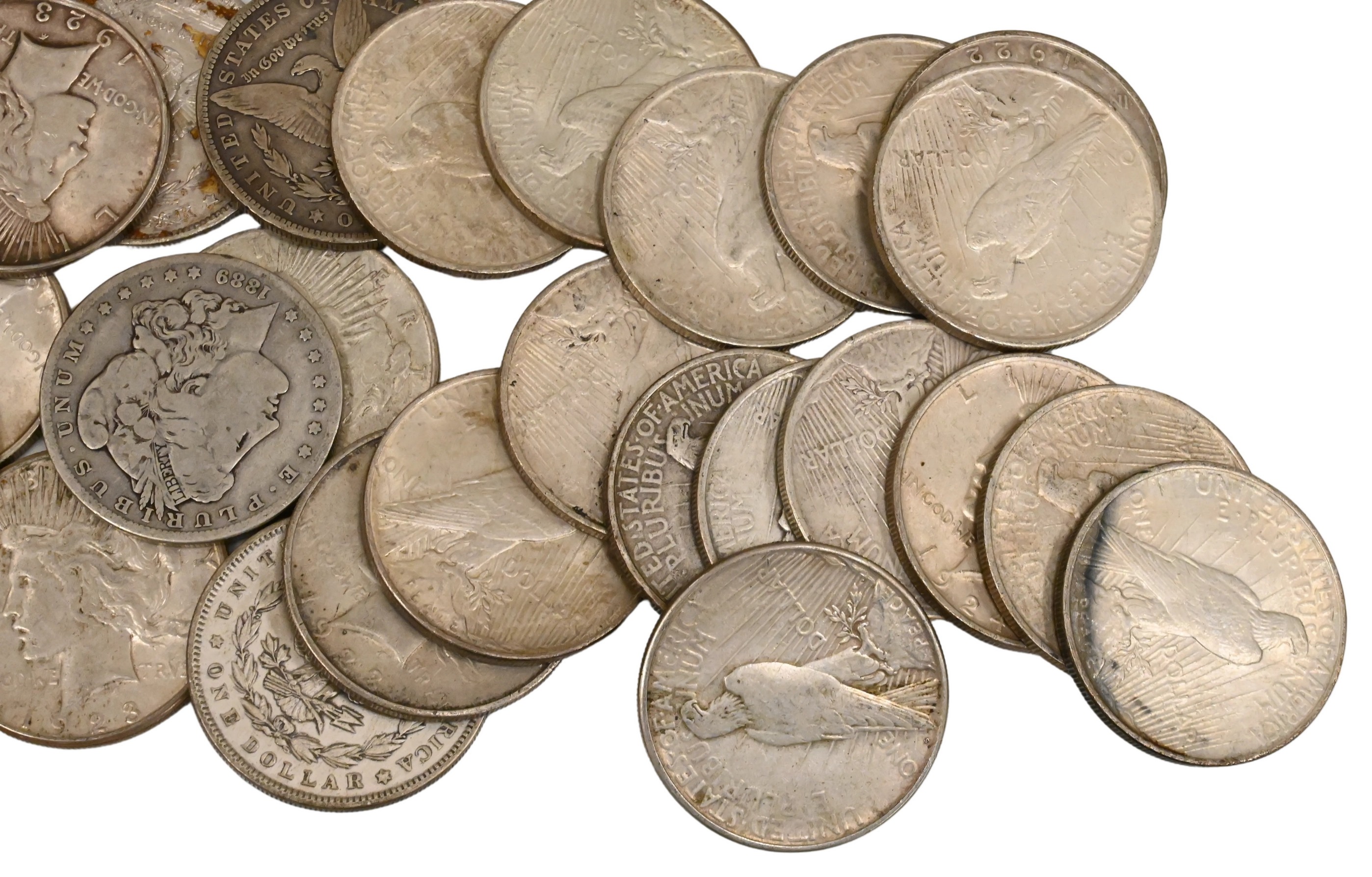 25 Each, 21 Peace, 4 Morgan Dollars F to XF