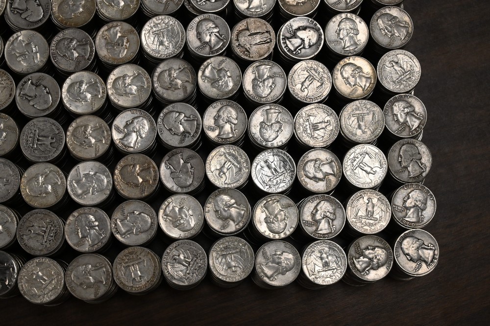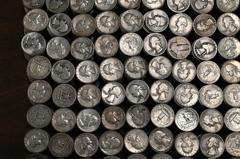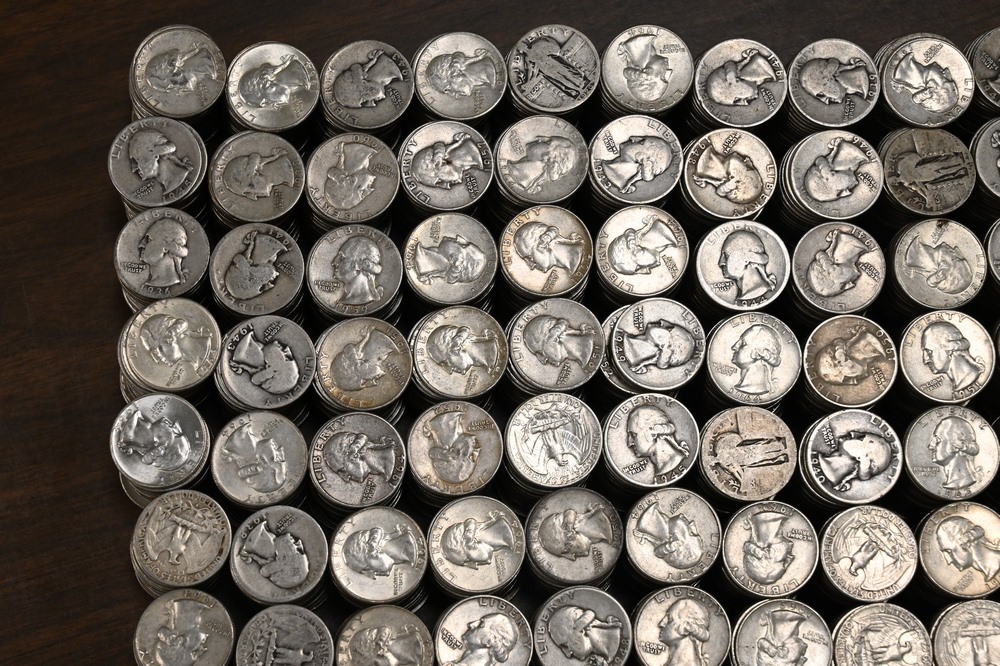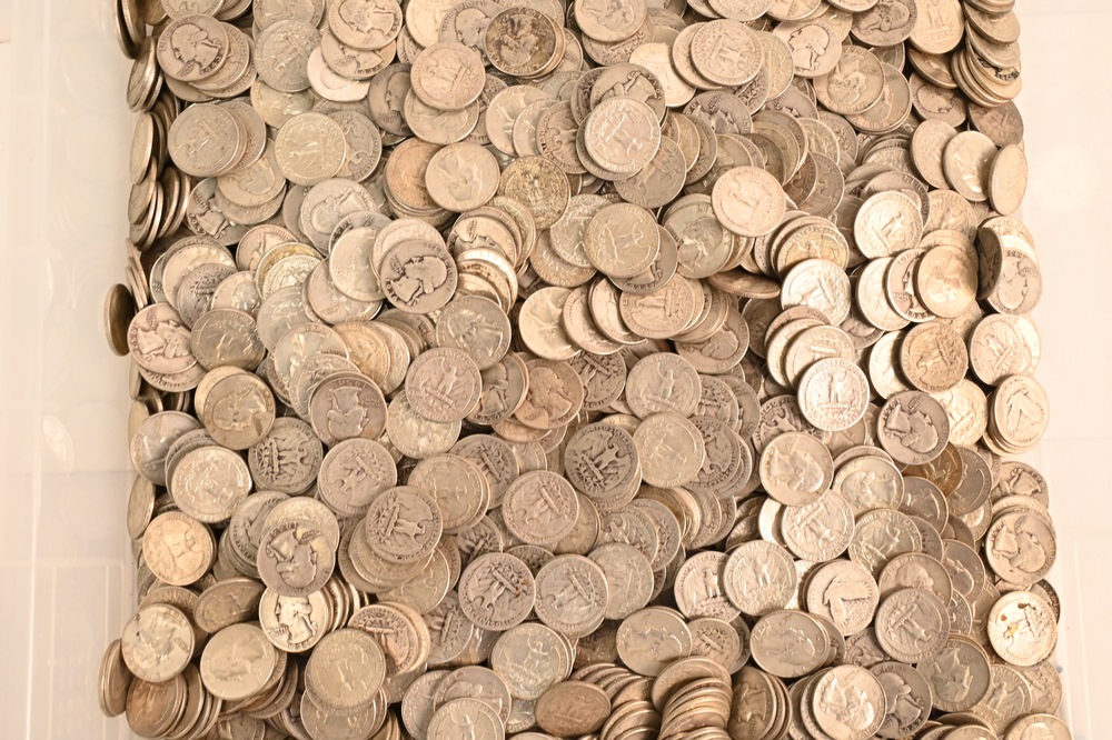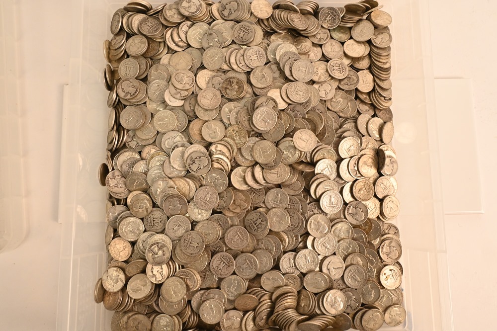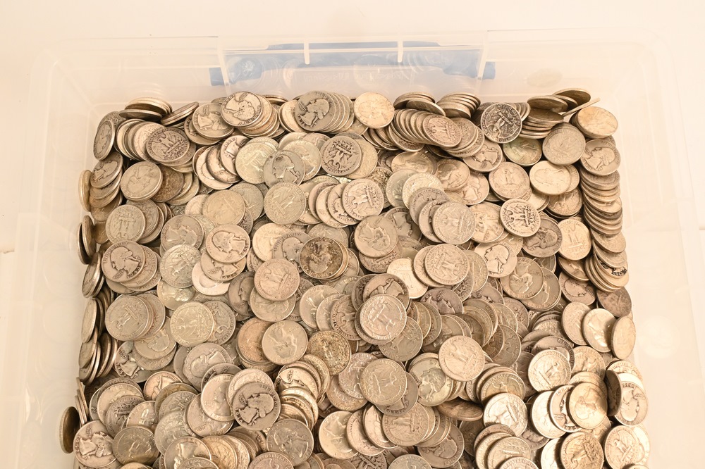 Lot 63: Large Lot of 90% Silver Quarters, $500 face value.