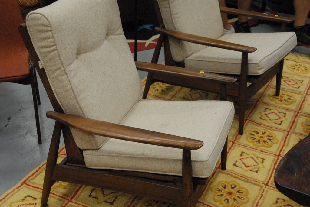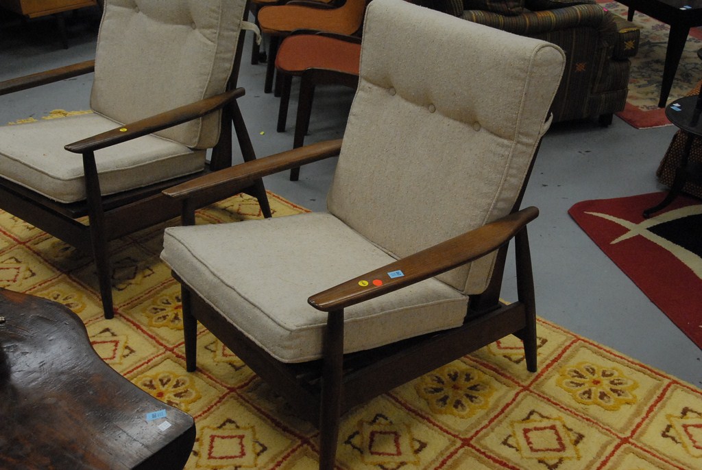 Pair of Larsen Selig style Viko Baumritter walnut lounge chairs.