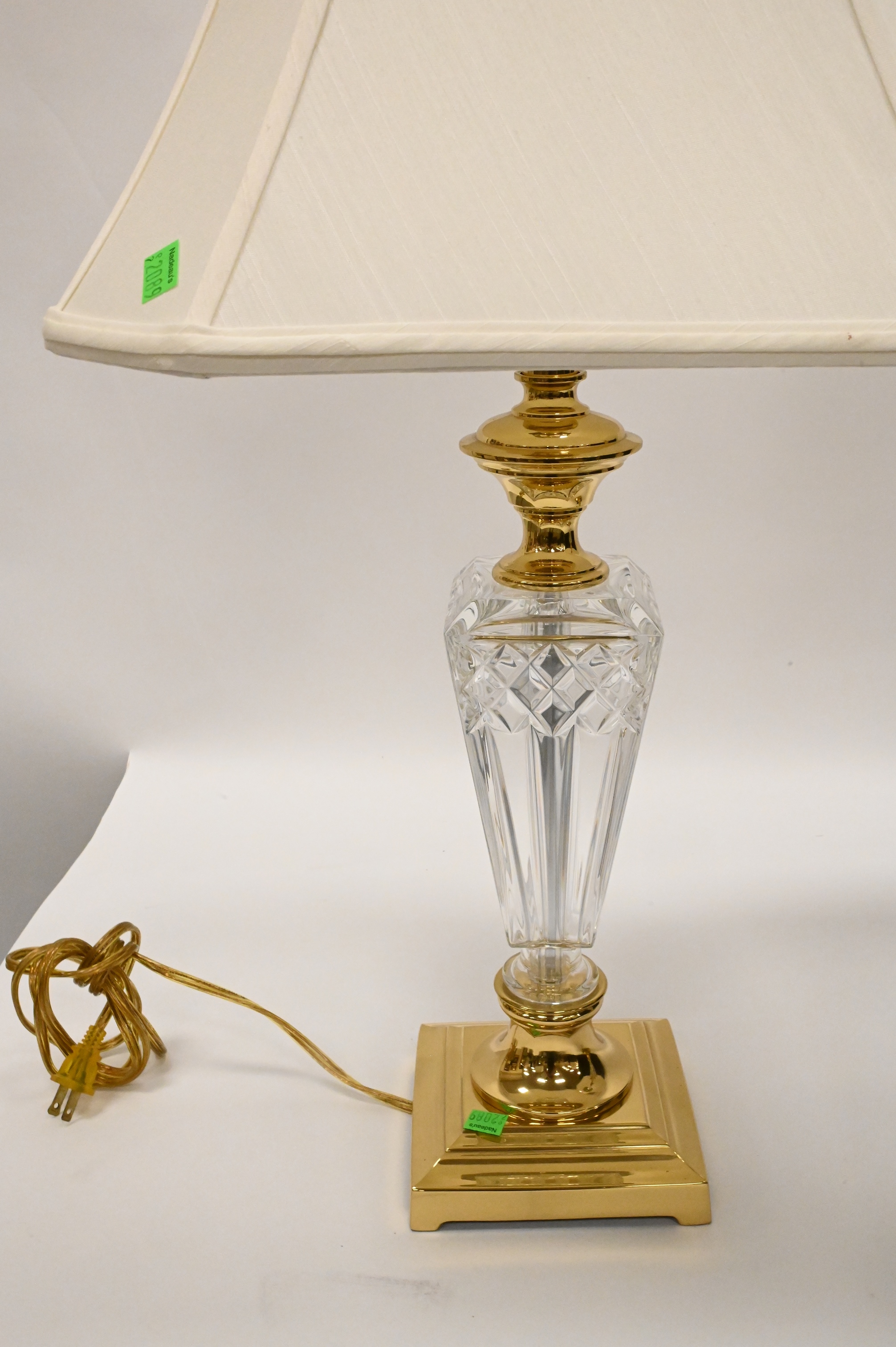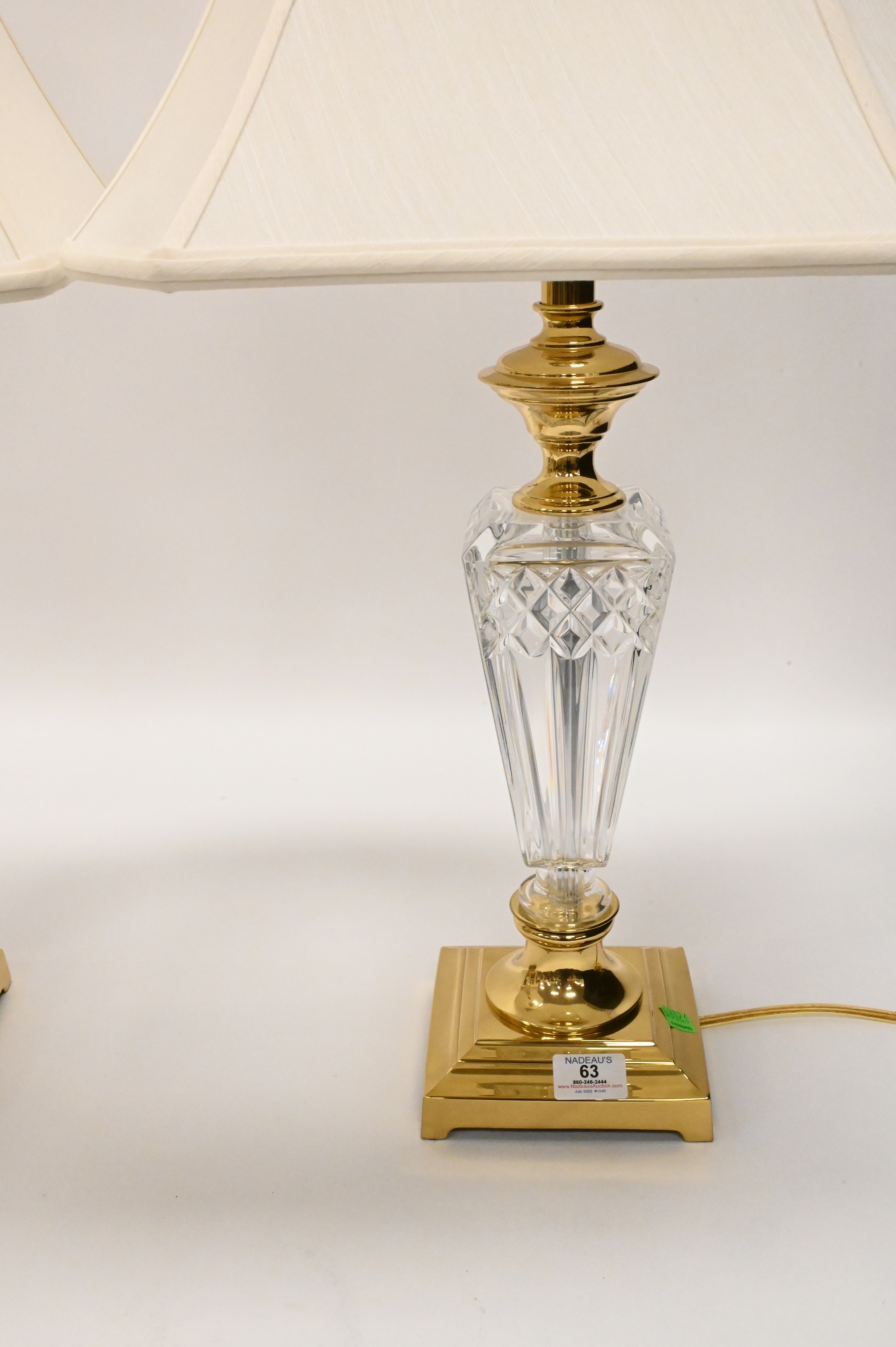 Pair of Waterford Brass and Glass Table Lamps, height 30 inches