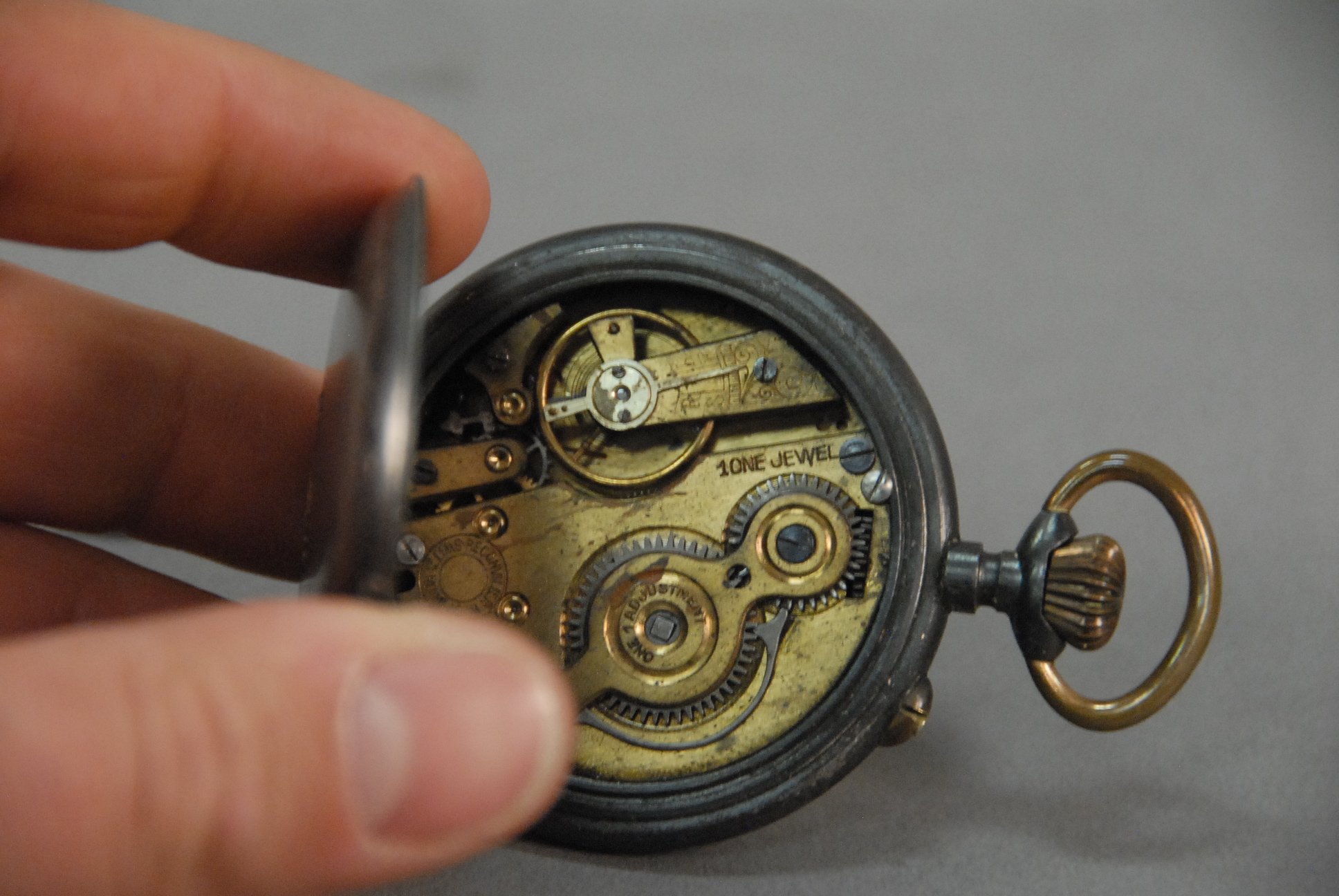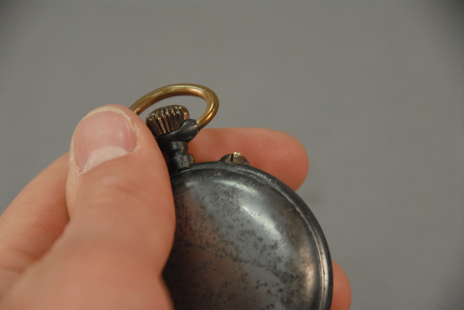 Reconvilier Switzerland open face pocket watch with blinking eyes.