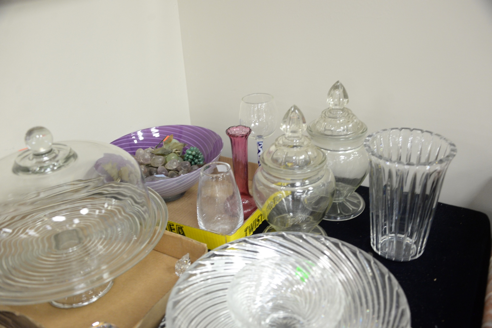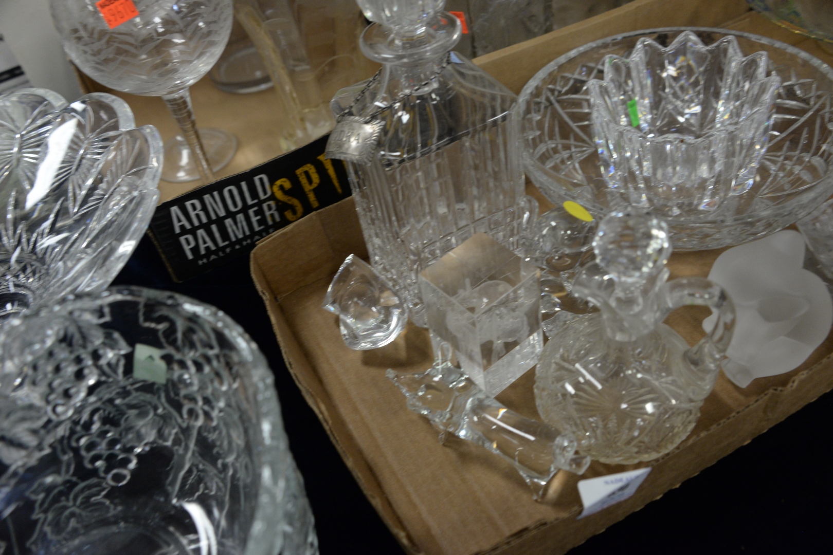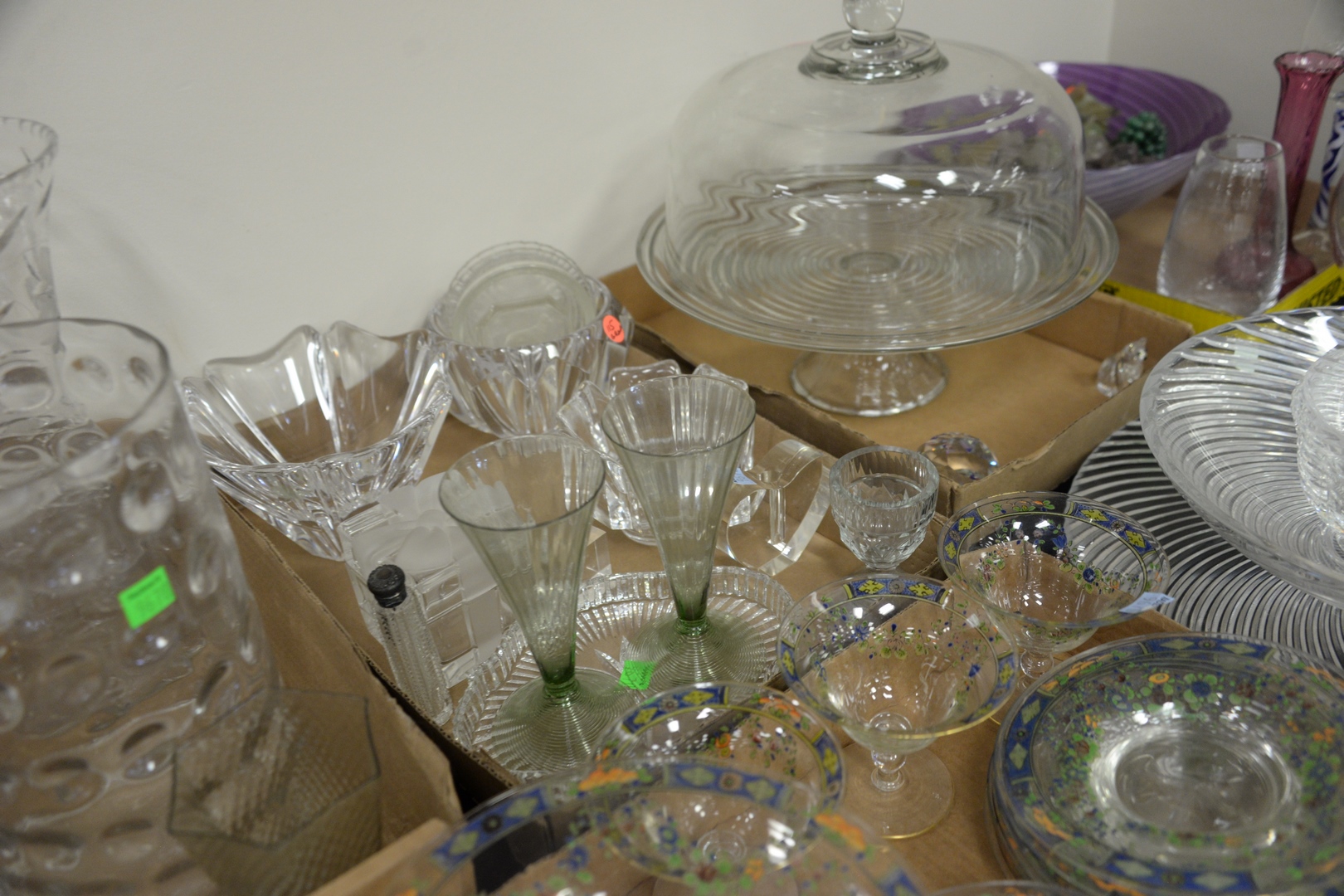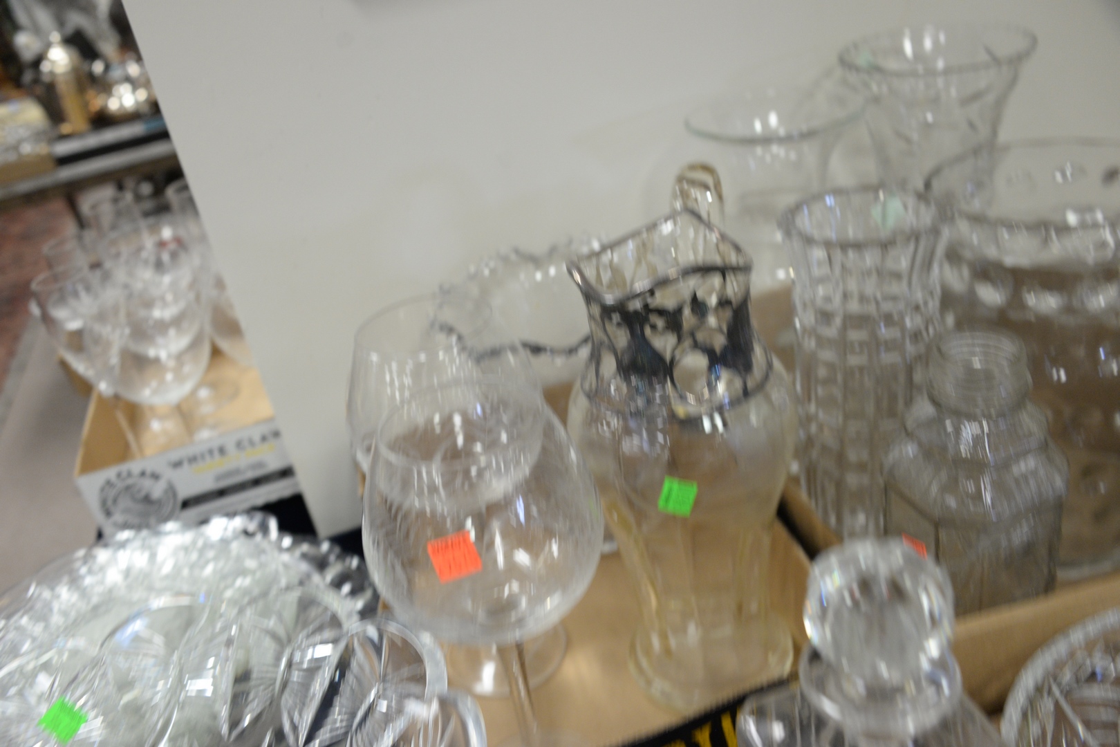Lot 630: Large Table Lot of Clear and Colored Glass to include bowls, plates and serving platters, several Tiffany & Company pieces including…