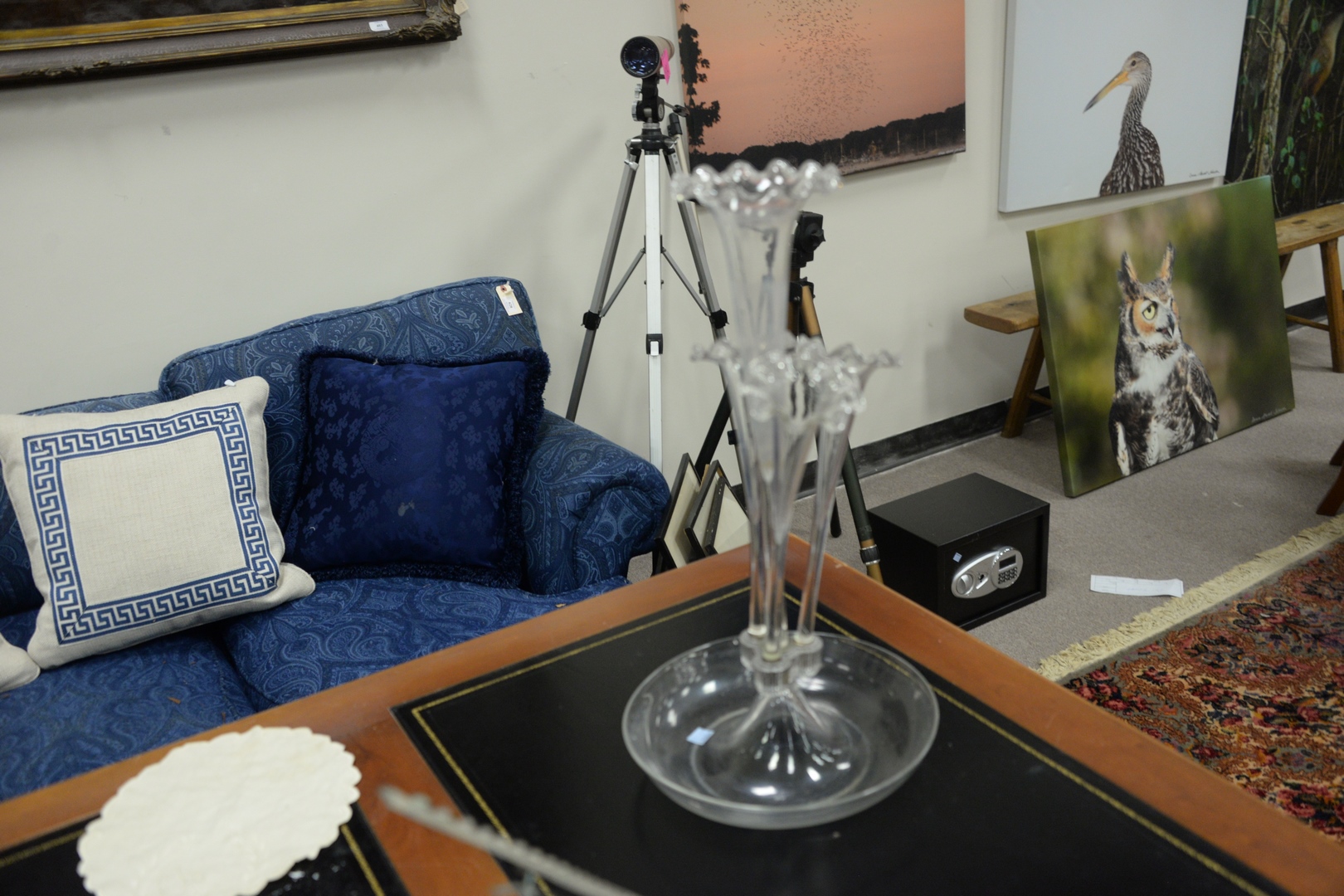 two clear glass epergnes