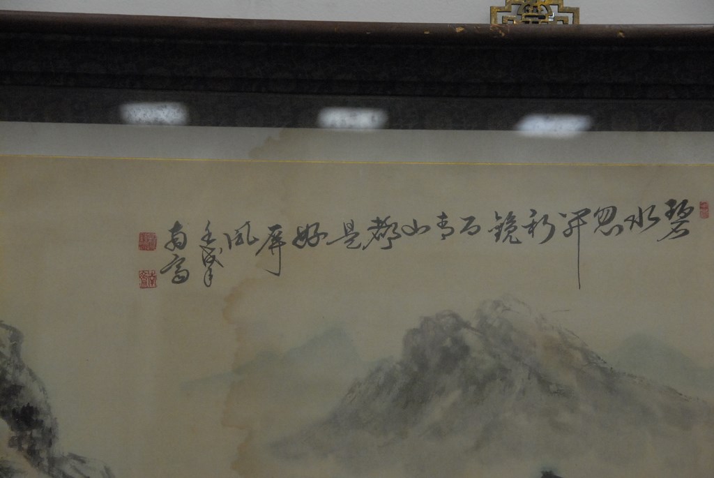 Framed watercolor on paper, mountainous landscape. 26 x 52