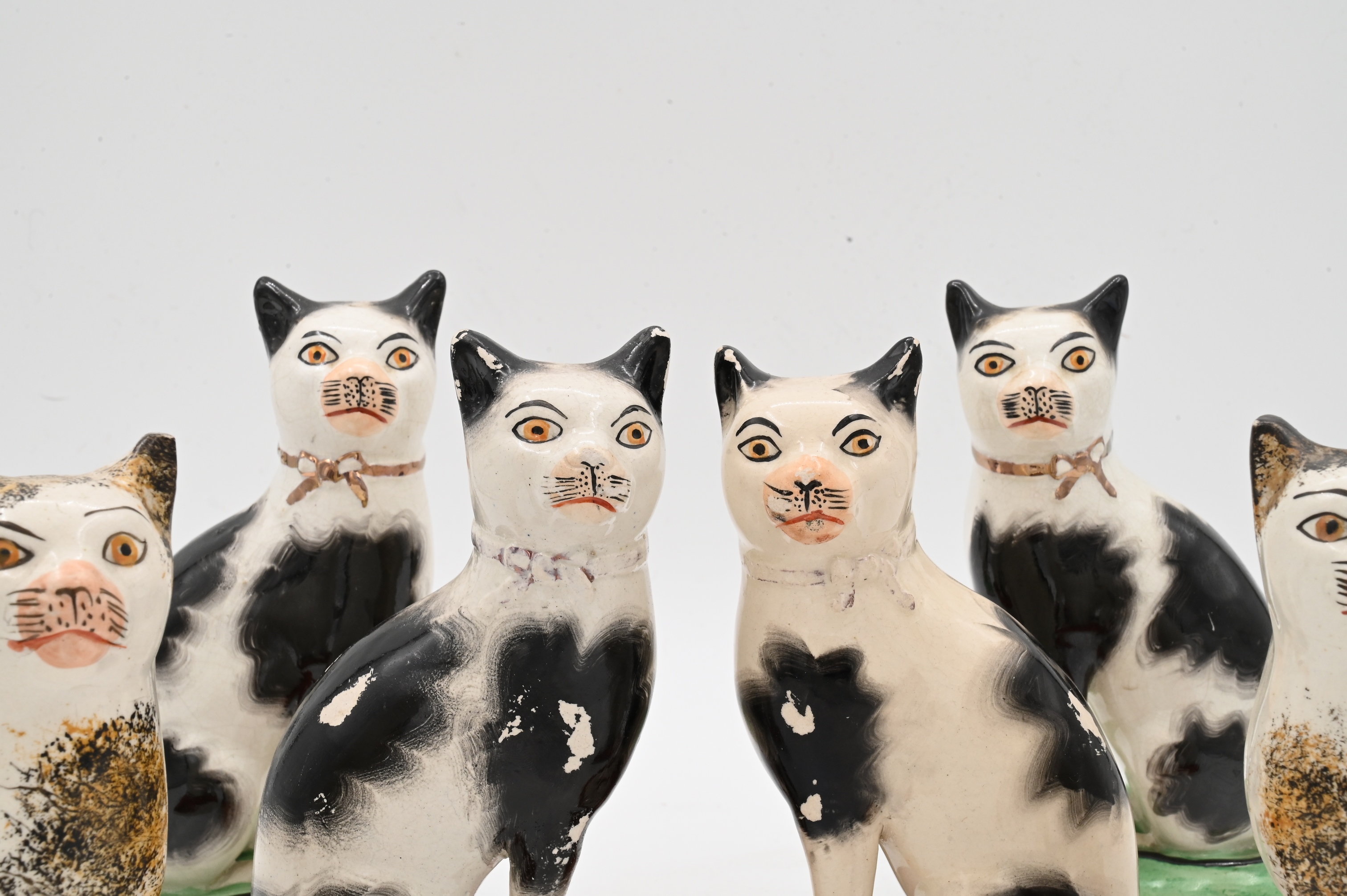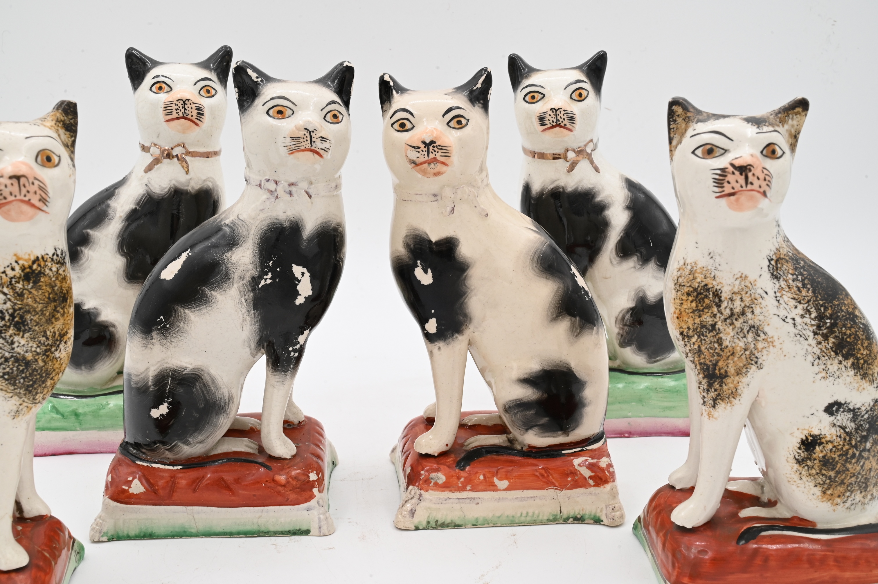 Three Pairs of Staffordshire Cats on Pillows