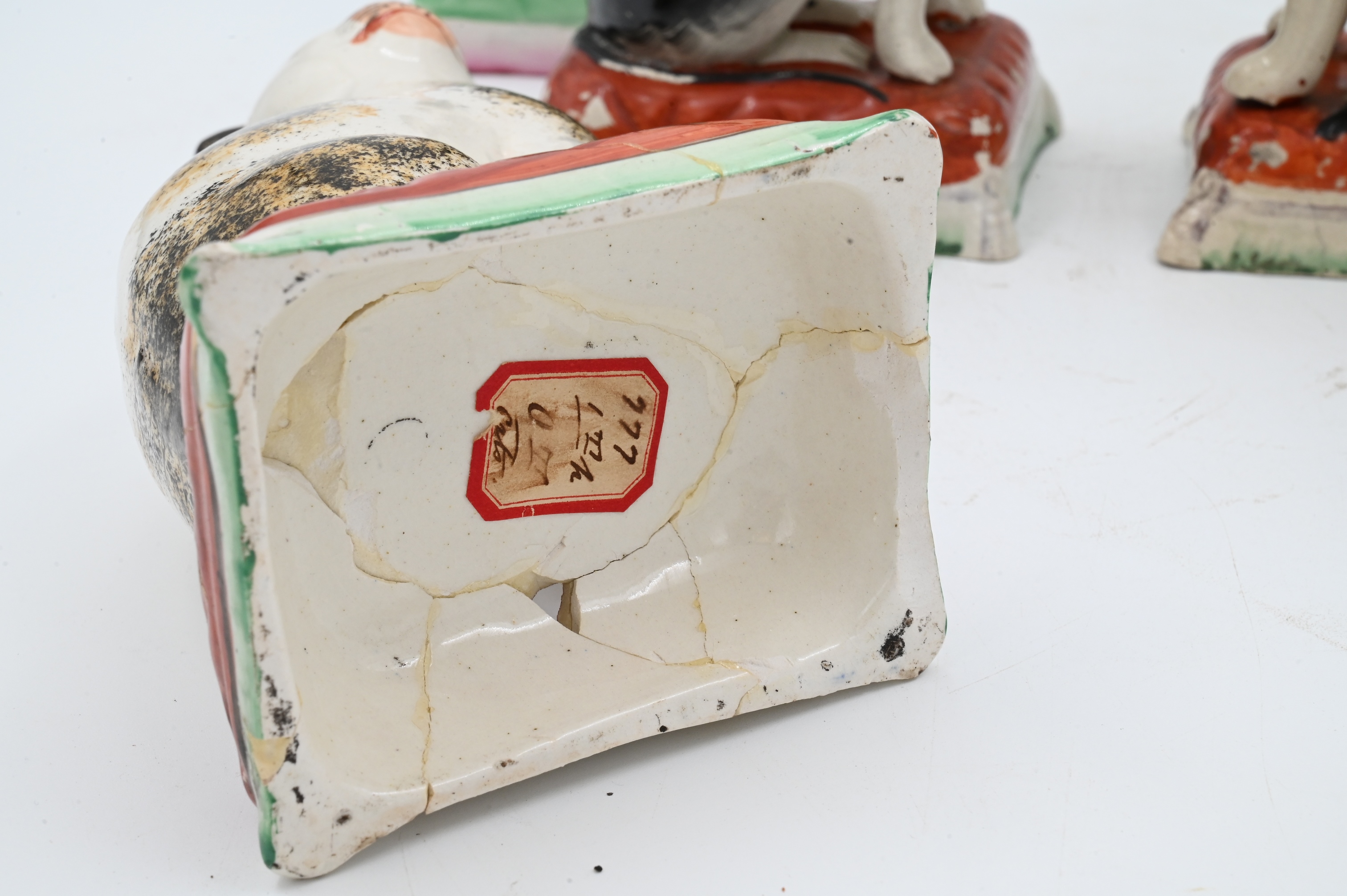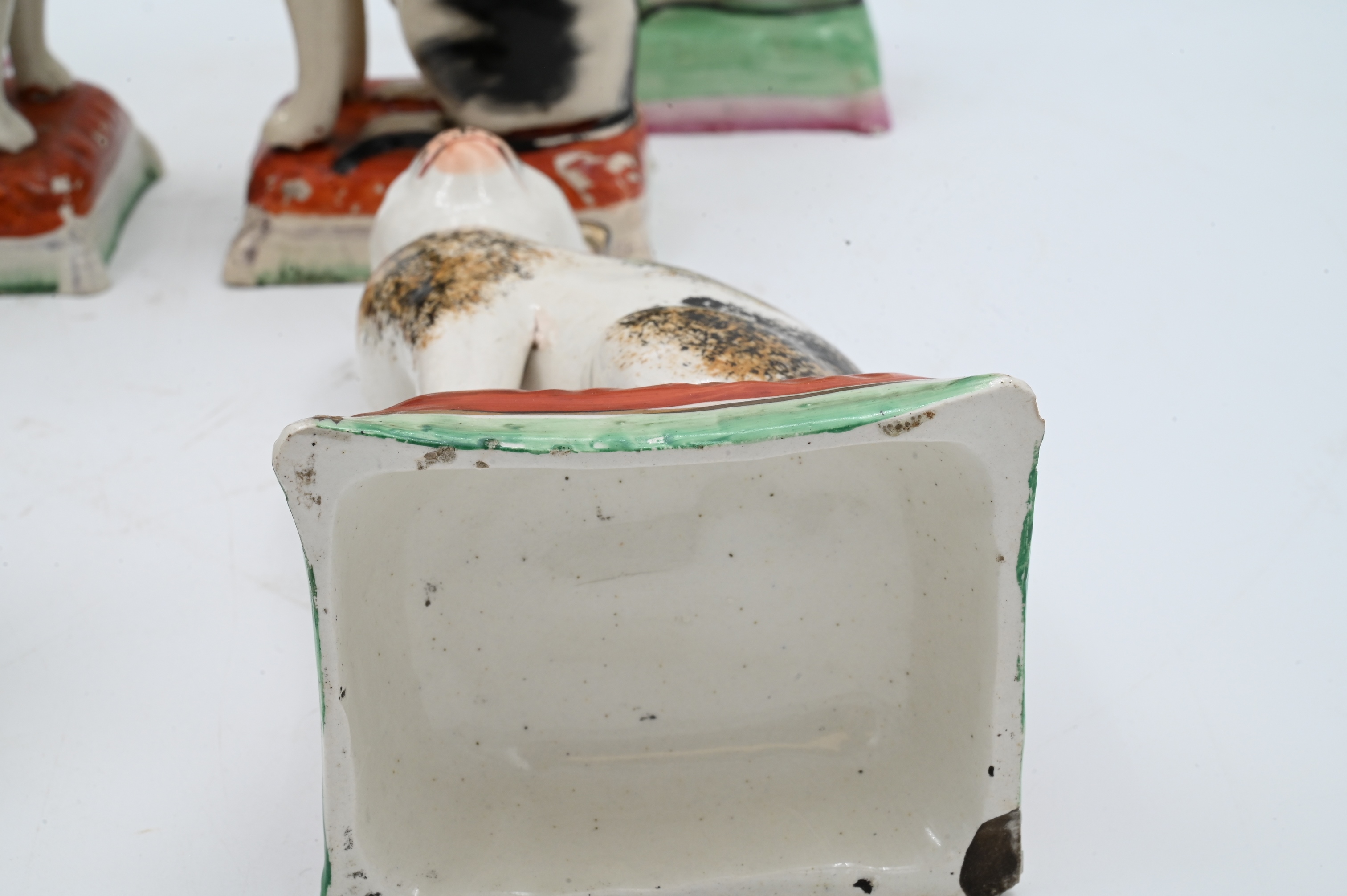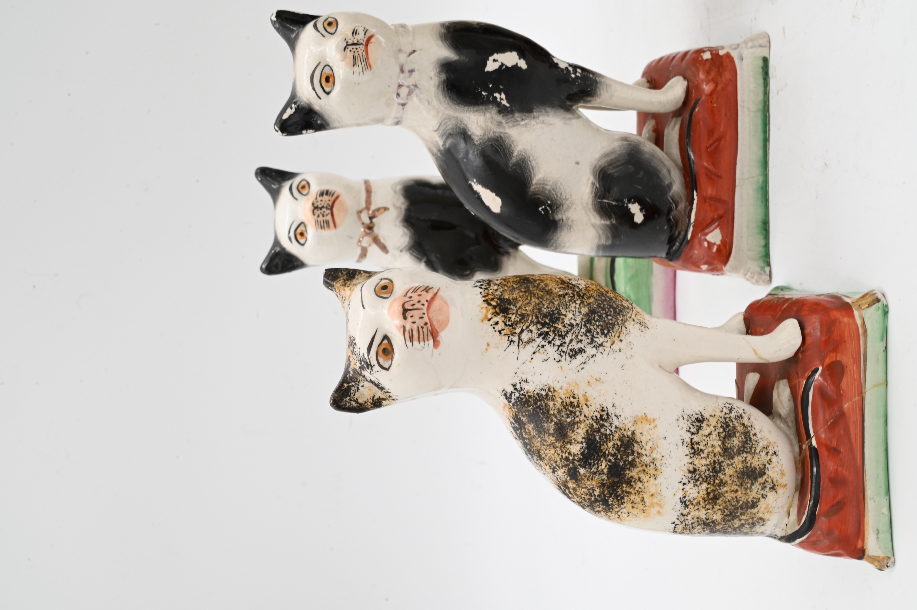 Lot 631: Three Pairs of Staffordshire Cats on Pillows