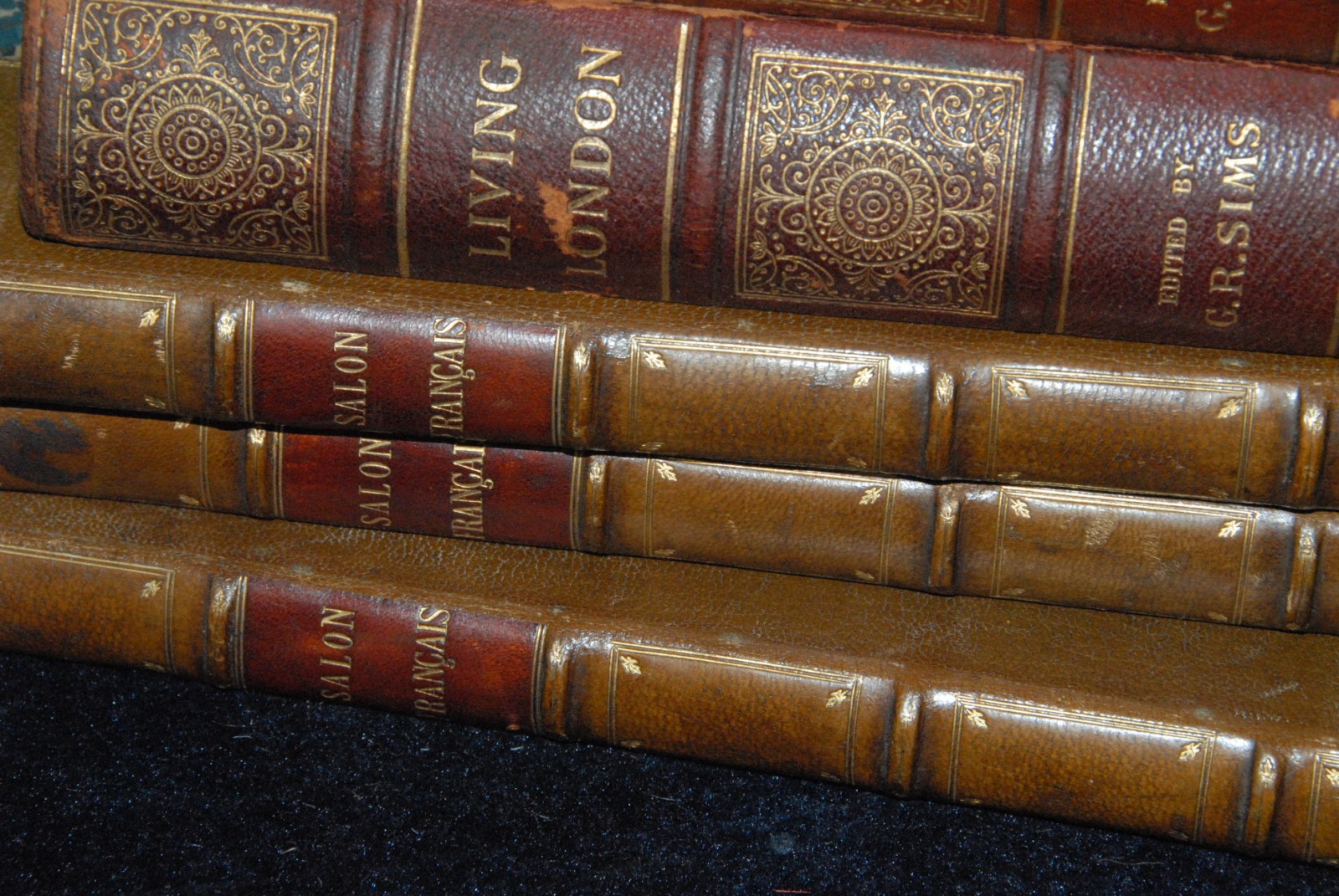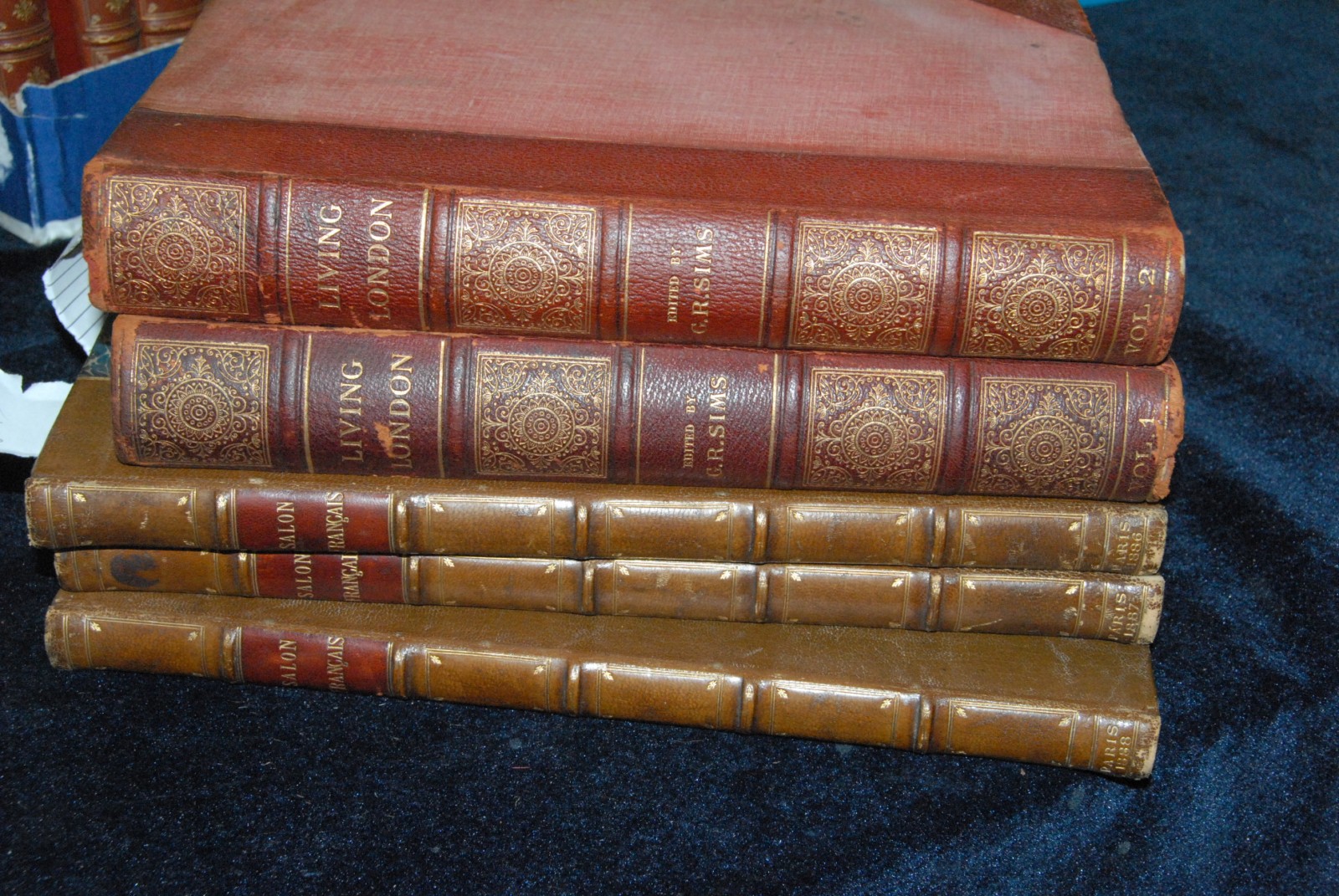 Five books to include three volumes Salon Francais 1886, 1887 and 1888, two volumes Living London 1902 London.