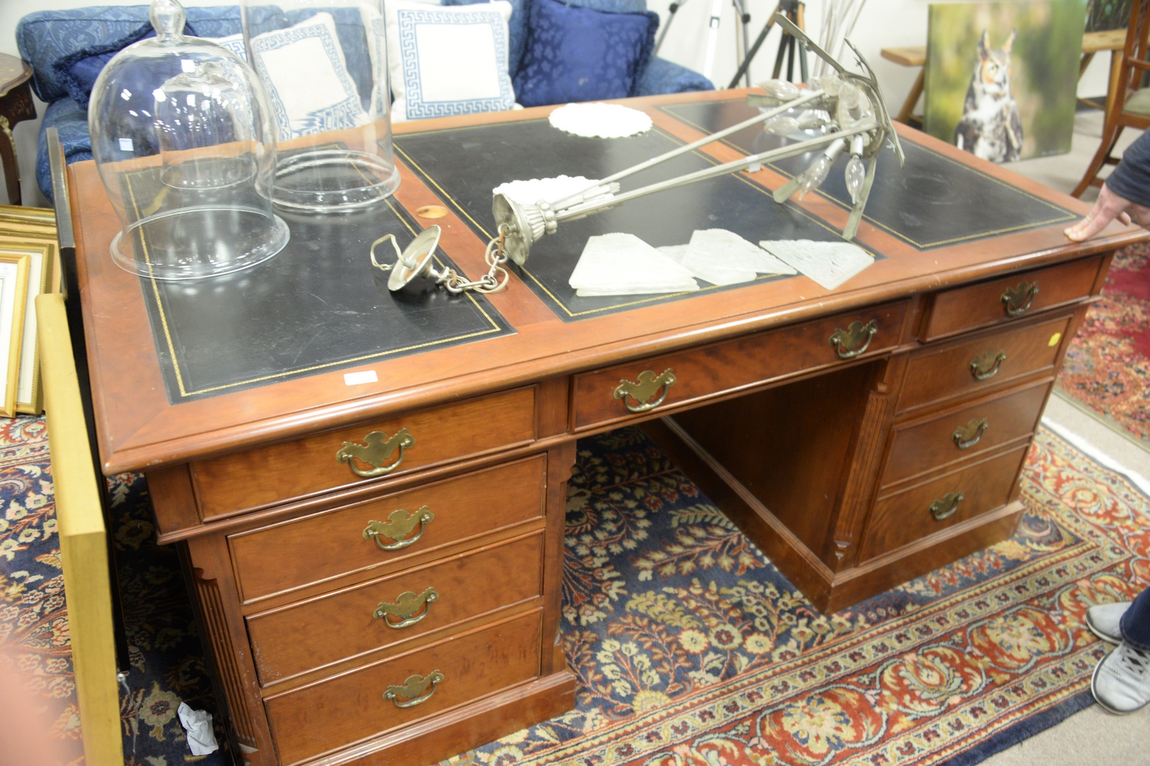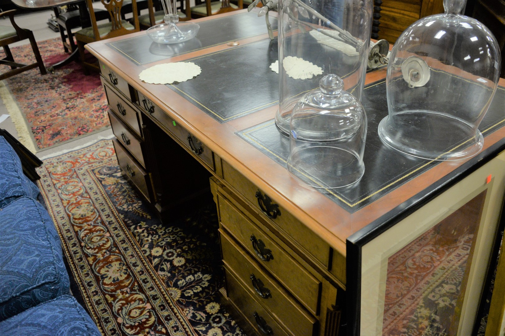 Lot 632: Large Cherry Partners Desk in three parts, with three leather top sections height 31 inches, top 42 x 74 Provenance: The Estate o…