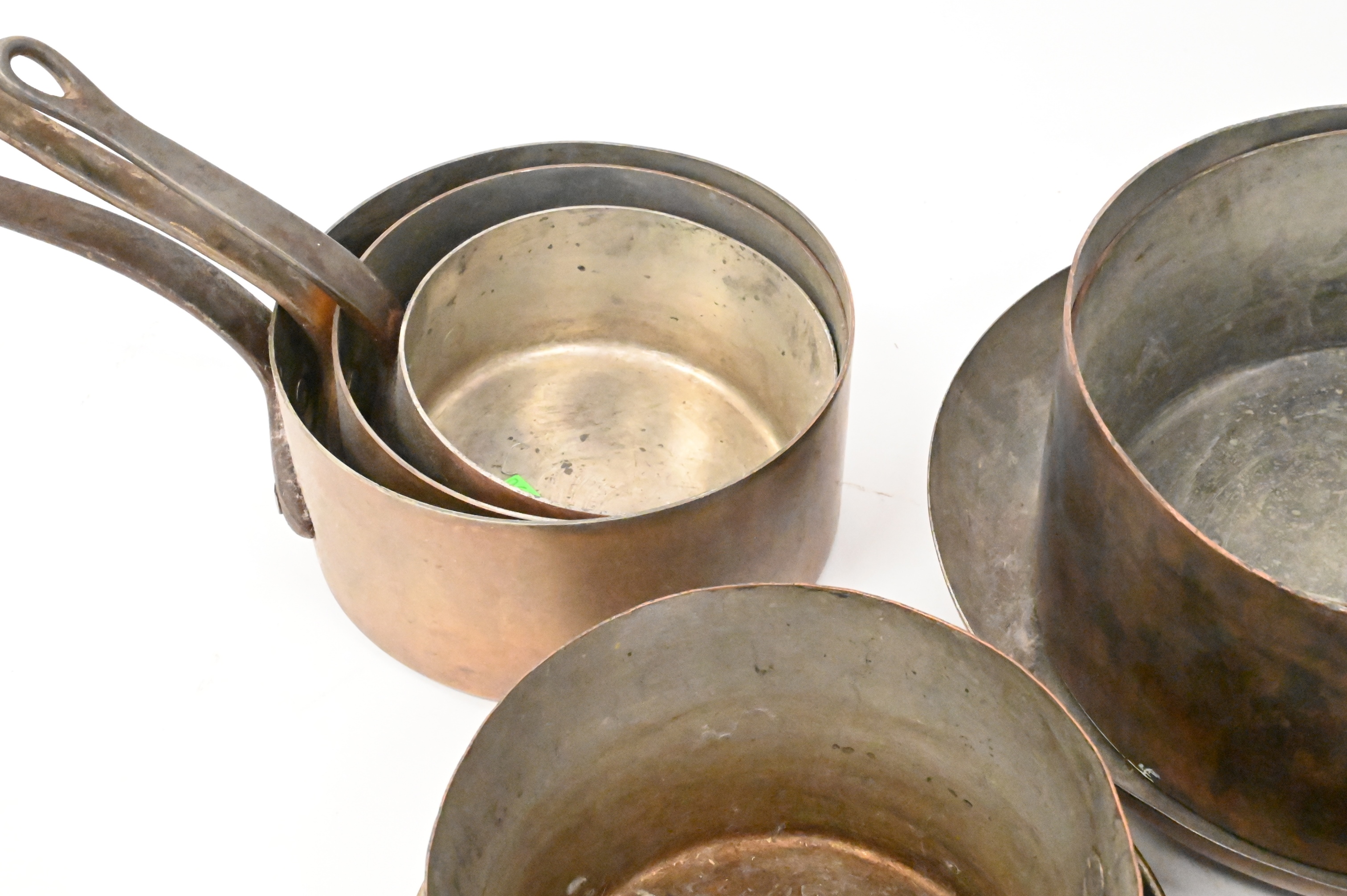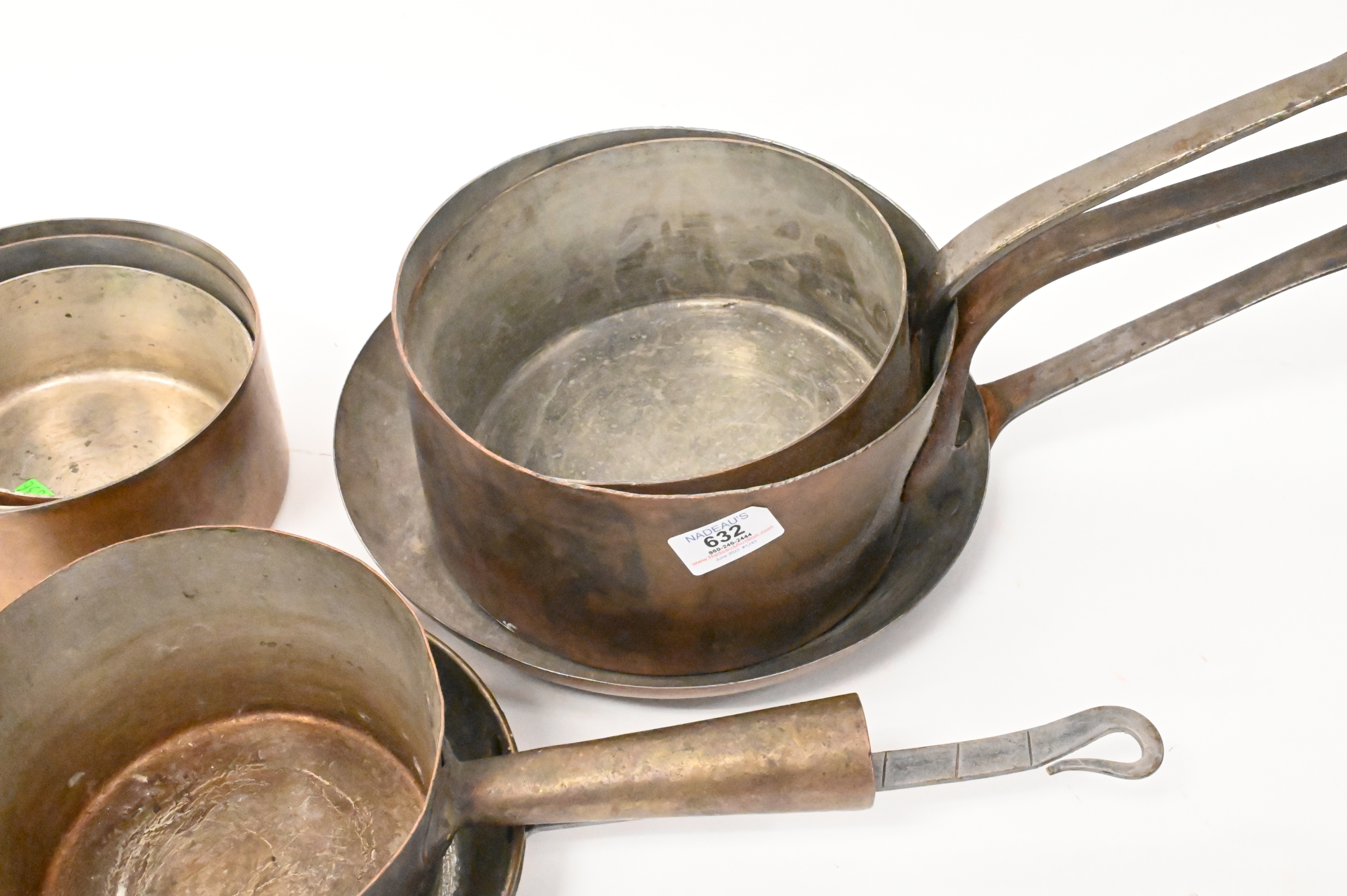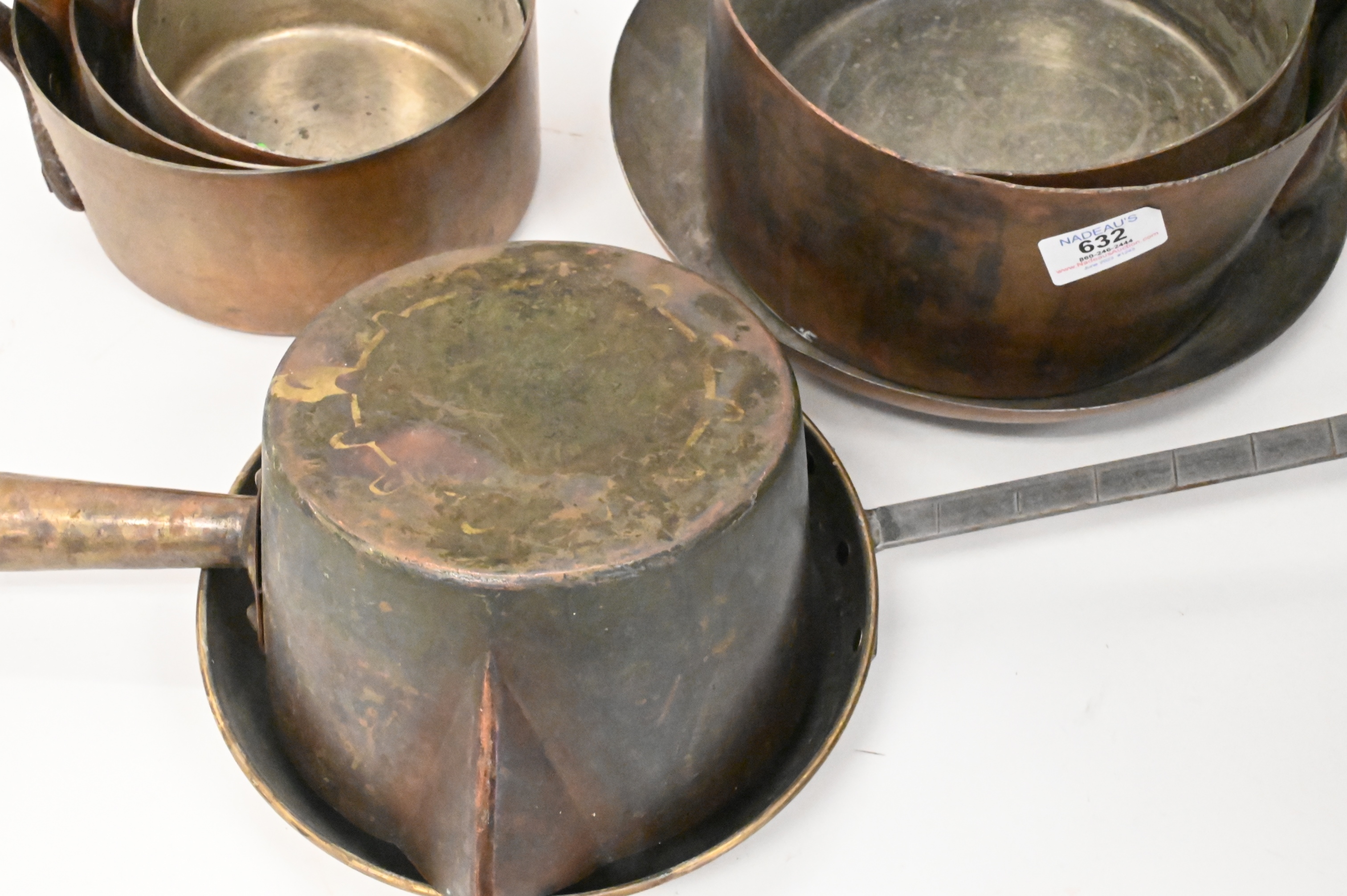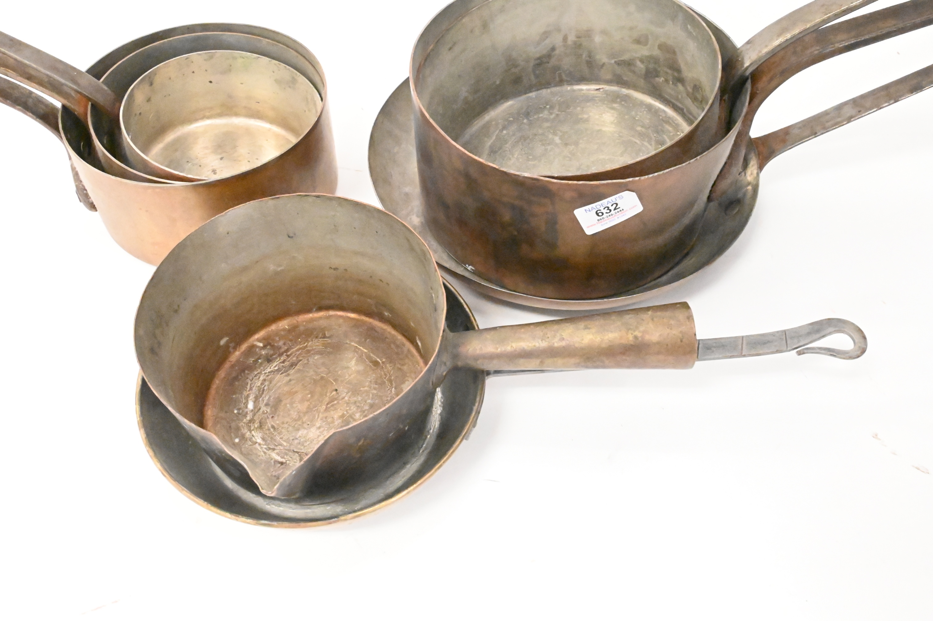 Seven Piece Copper Lot of Pots, largest pot height 4 1/2 inches, diameter 9 inches.