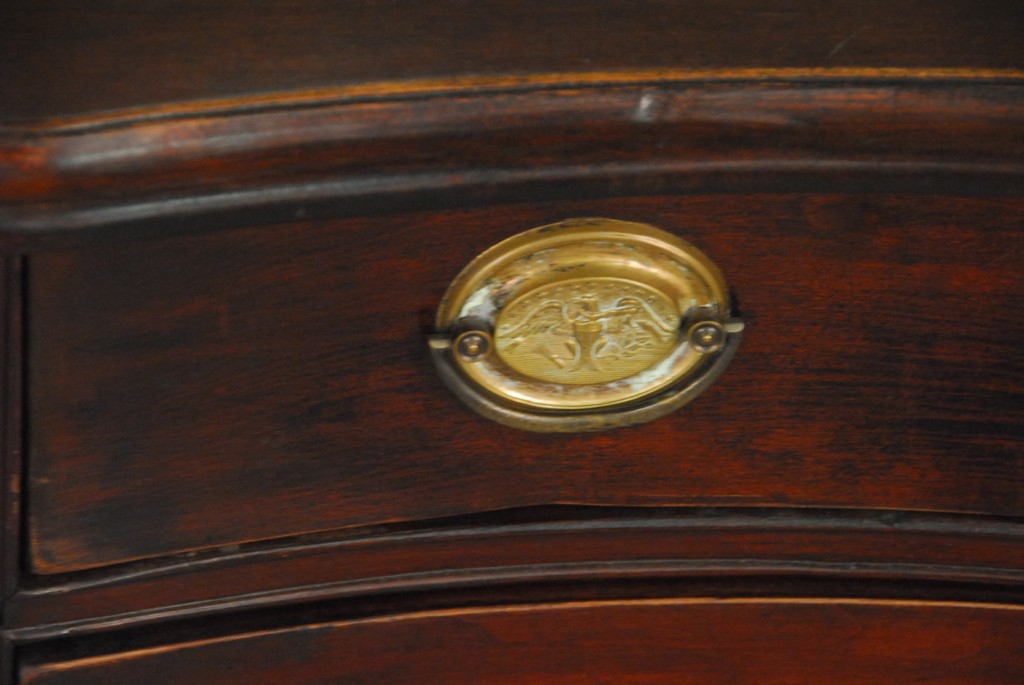 Lot 634: Connecticut cherry Chippendale chest having large overhanging molded edge, serpentine front with four graduated conforming shaped dr…