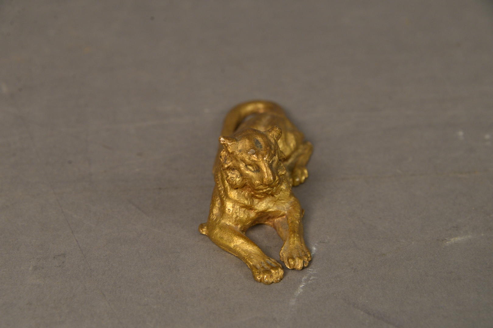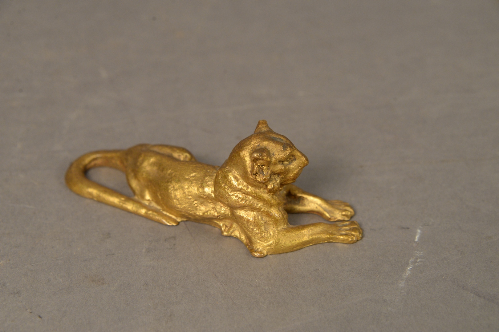 Lot 634: Tiffany Studios Gilt Bronze Lion Paperweight, marked Tiffany Studios, New York 932 to the underside, height 2 inches, length 5 1/4…