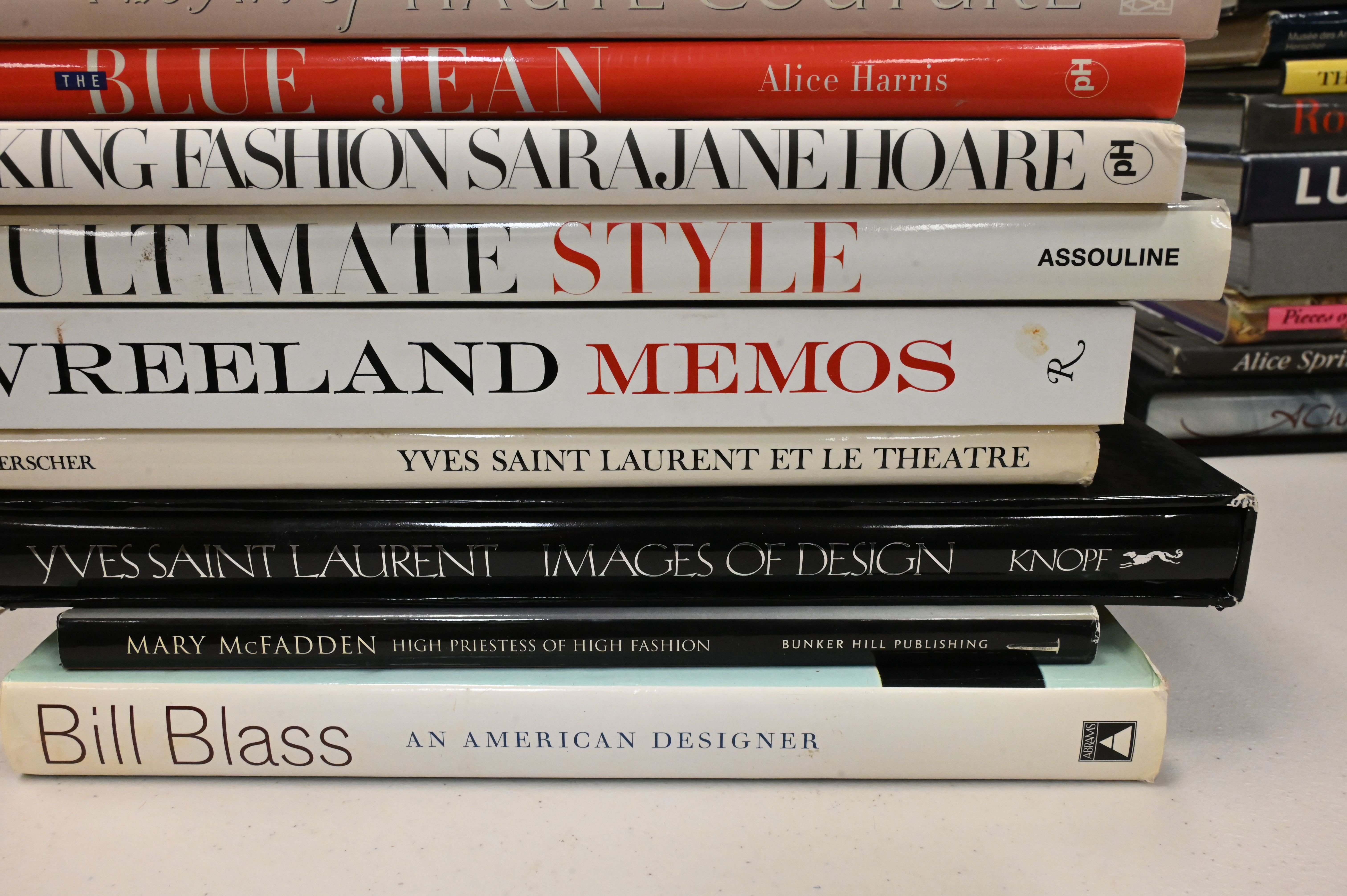 to including Valentino’s Magic; Skrebneski, The Art of Haute Couture; Alice Harris, The Blue Jean; Sara Jane Hoare, Talking Fashion; Assouline, Ultimate Style; Diana Vreeland, Memos; Yves Saint Laurent et le Théâtre; Yves Saint Laurent: Images of Design; Mary McFadden: High Priestess of High Fashion; and Bill Blass: An American Designer, late 20th century