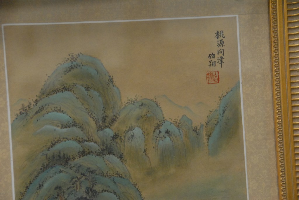 Lot 638: Framed watercolor of mountainous landscape with village. 14 x 10
