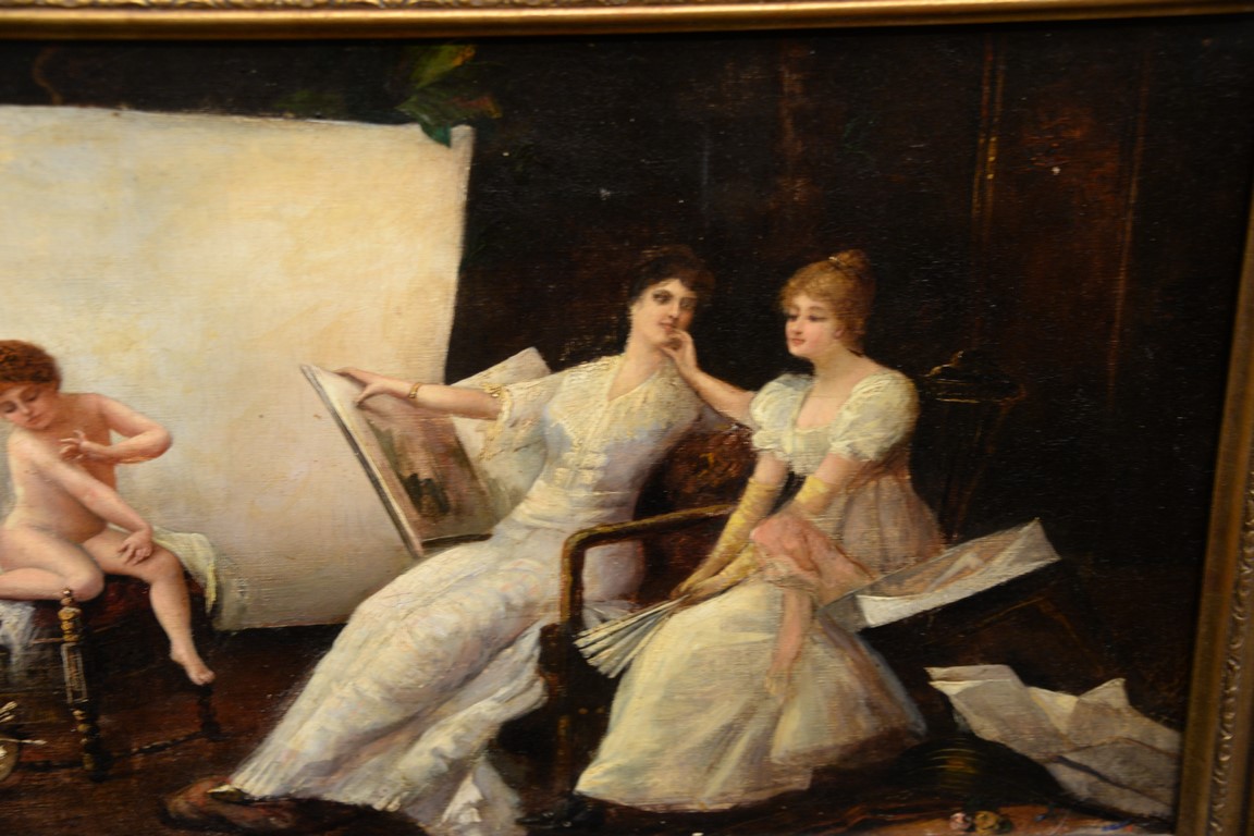 Lot 639: Albert Belleroche 1864-1944 oil on canvas In the Studio signed lower left: A. de Belleroche 14 x 22