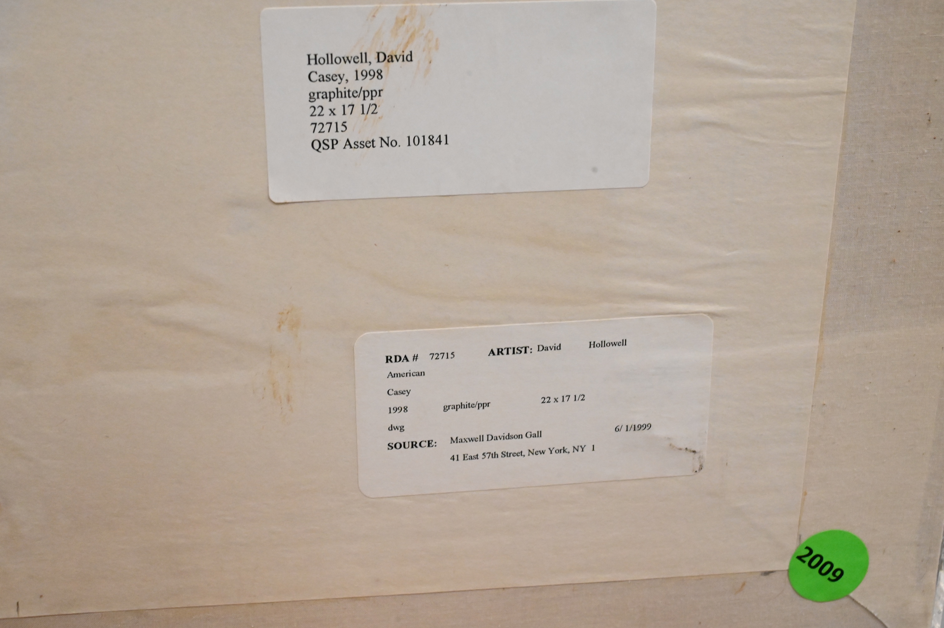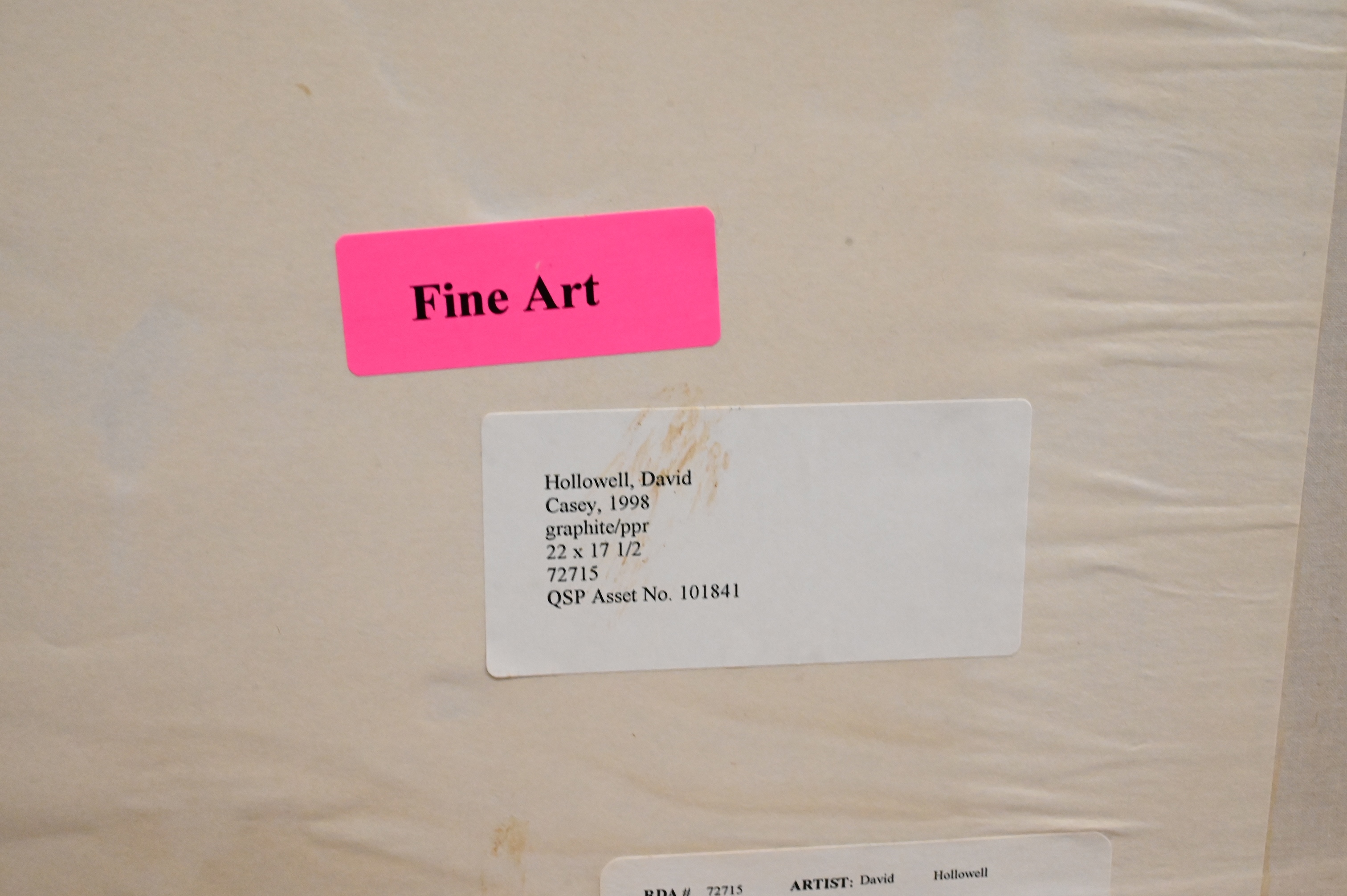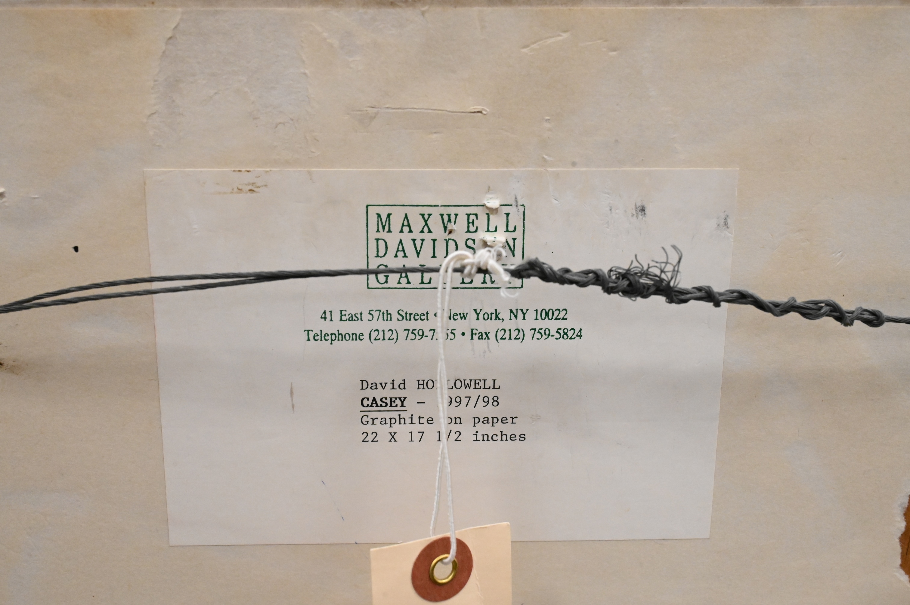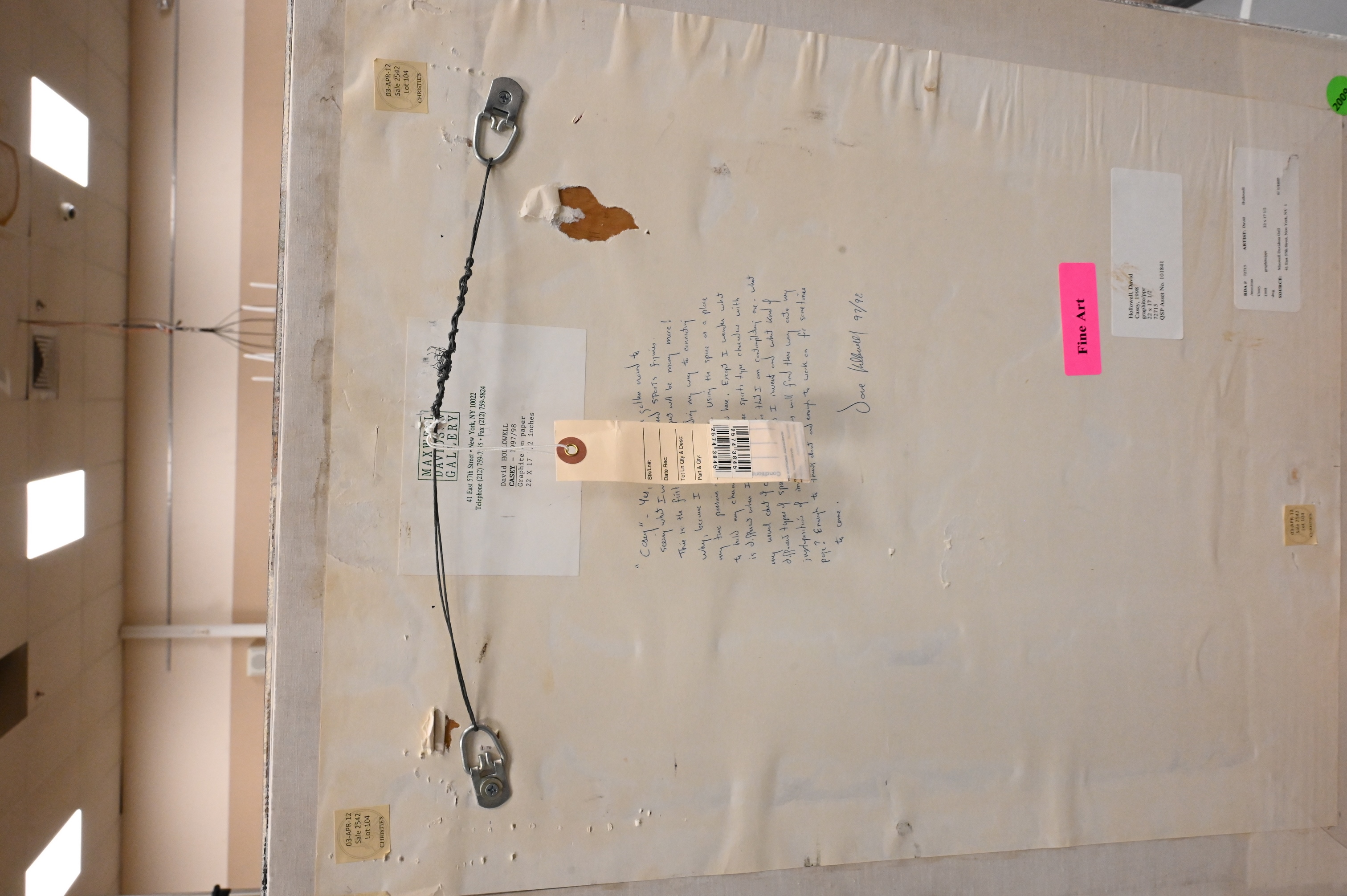 Signed and inscribed on verso Dave Hollowell along with handwritten note from artist