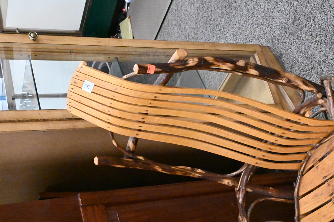 Adirondack Rocker, height 42 inches. Provenance: Estate of Peter Tillou, Litchfield, Connecticut.