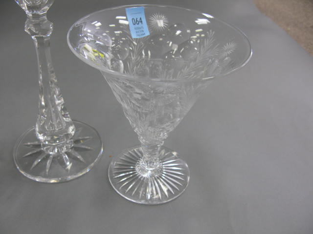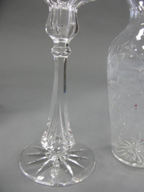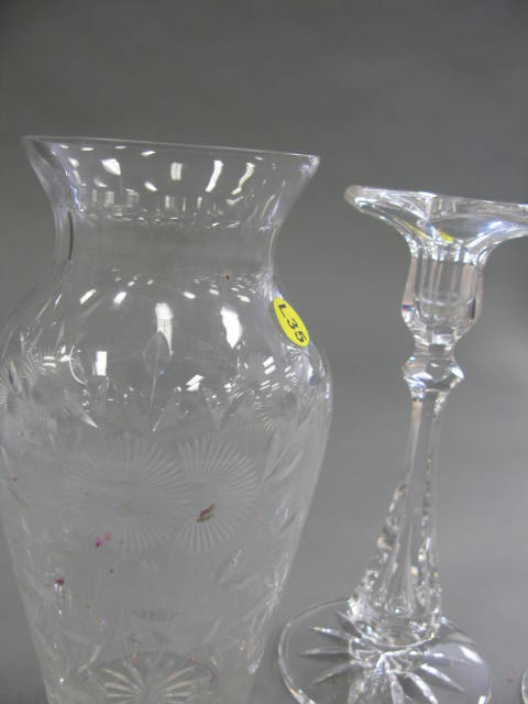 Cut crystal lot to include a pair of candlesticks signed Sinclair and two vases