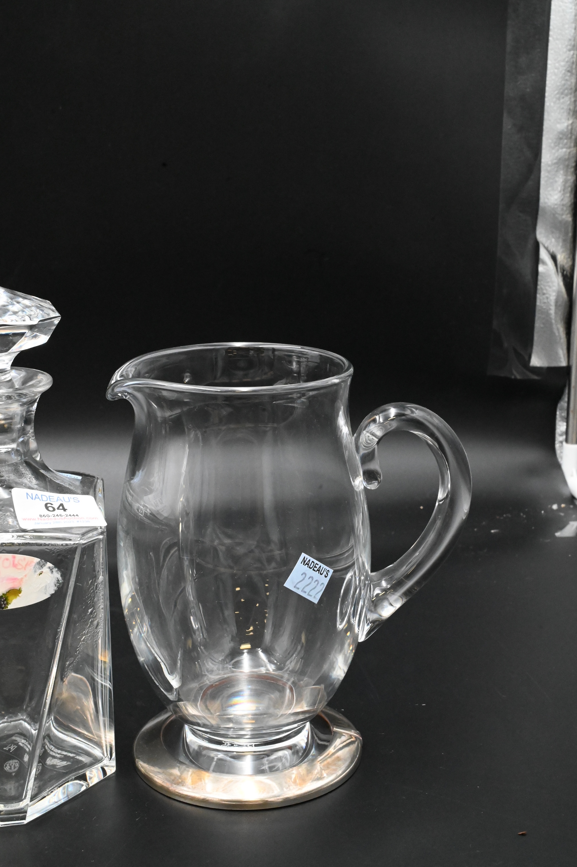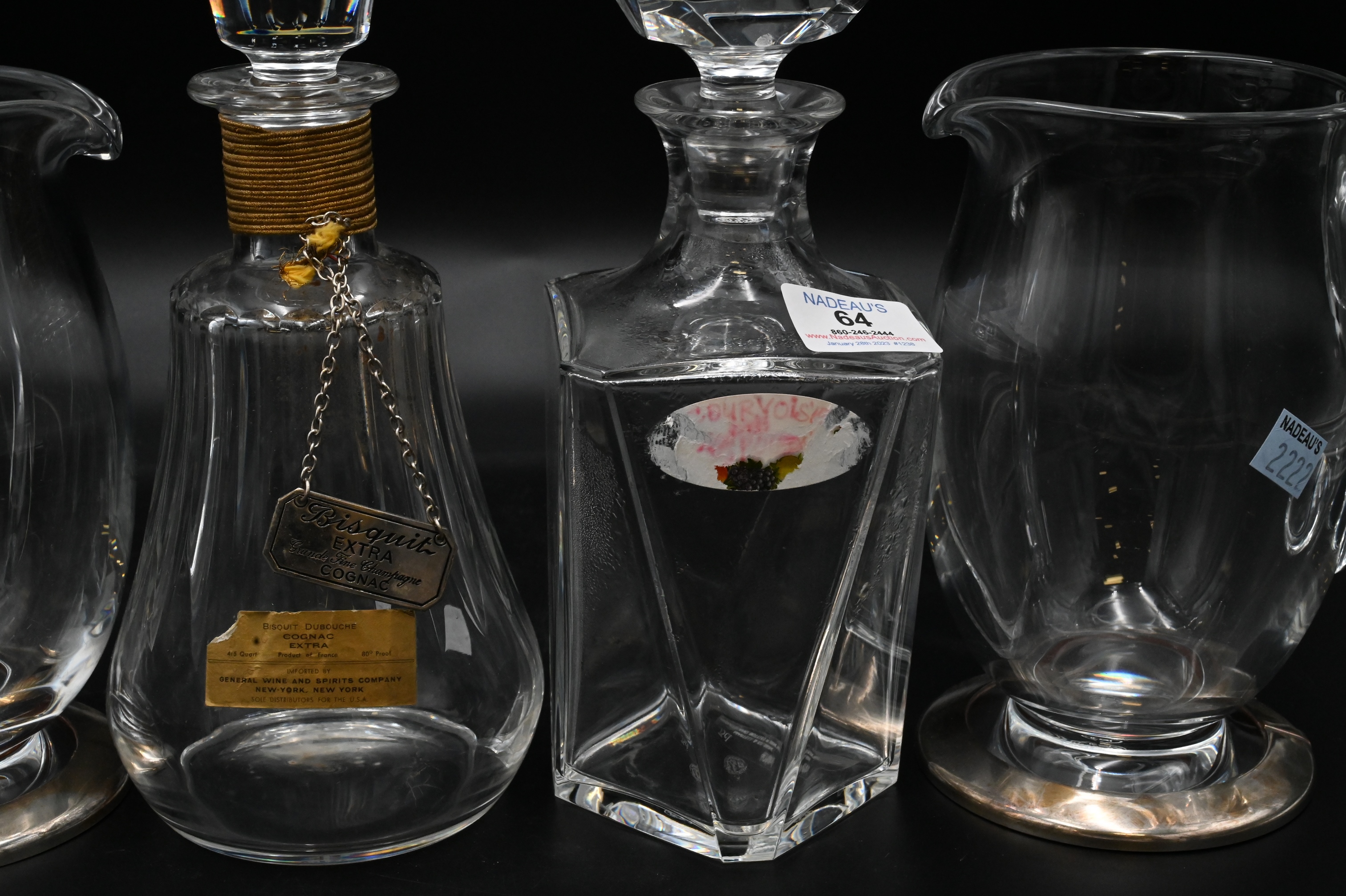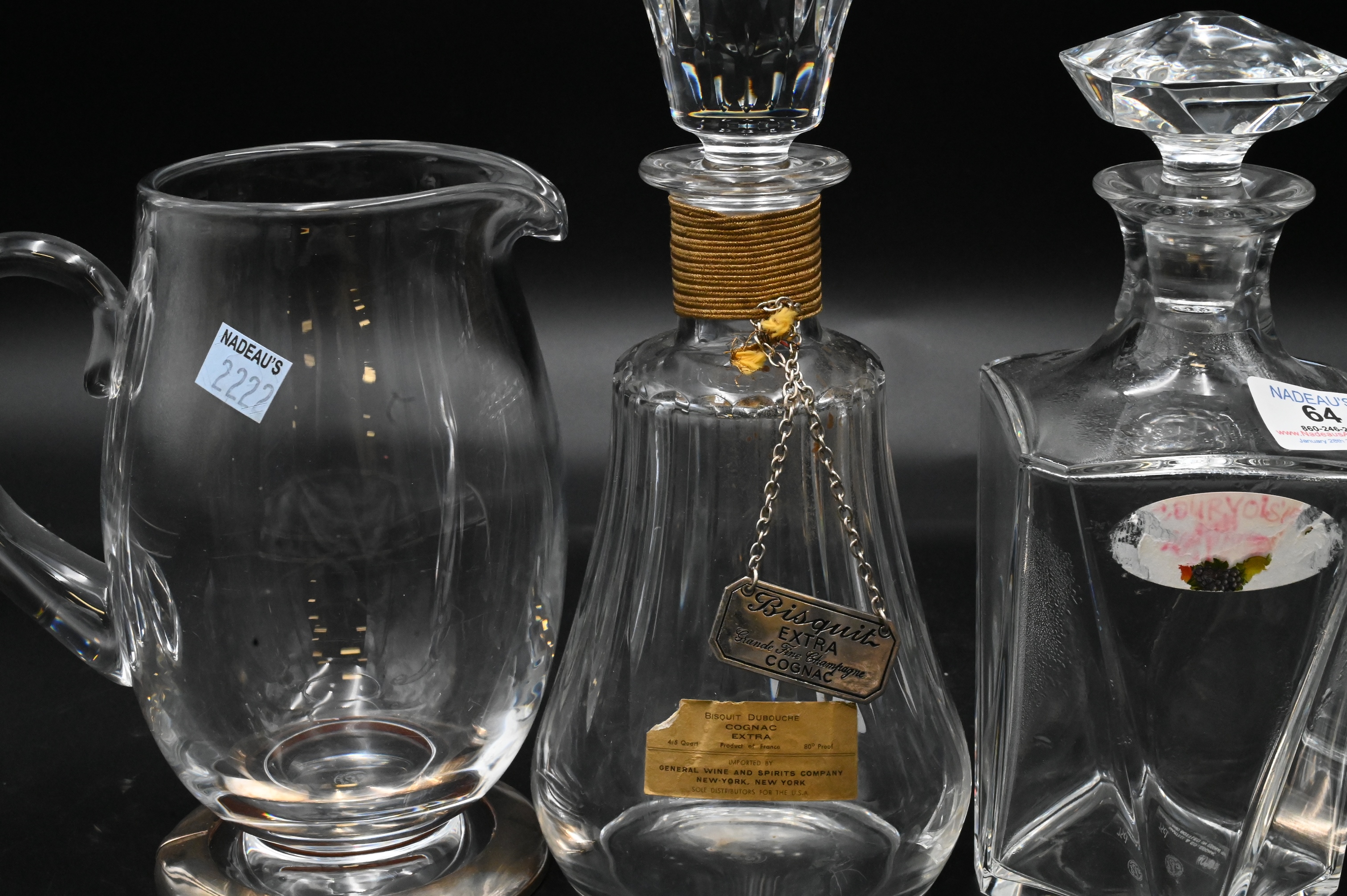 Four Piece Baccarat Lot, to include two decanters, along with two pitchers, tallest 10 1/4 inches. Provenance: Estate of Dr. Vallo Benjamin E 57th St New York