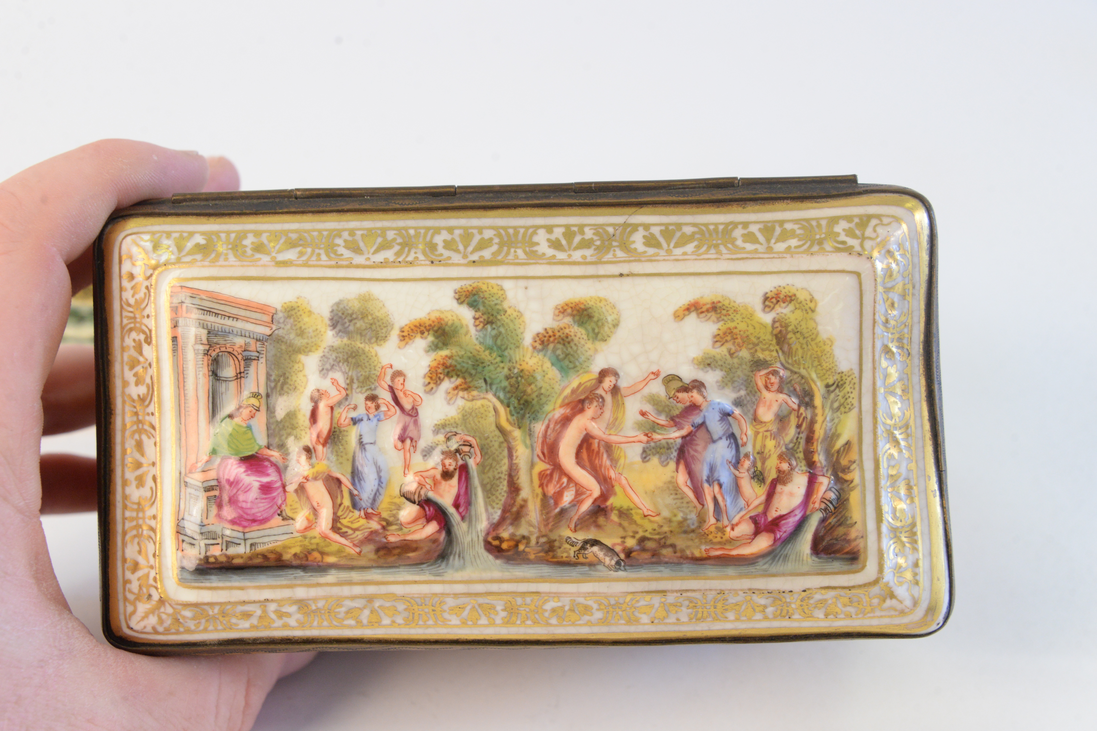 Group of four boxes to include, Capodimonte box with hinged lid, agate trinket case, painted porcelain with floral motif trinket box, along with a Limoges painted porcelain snake box, height 3 inches, length 6-1/4 inches Capodimonte.