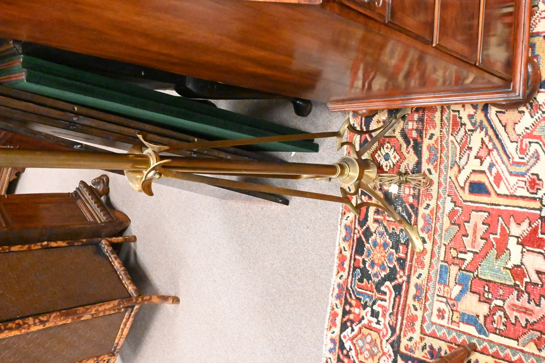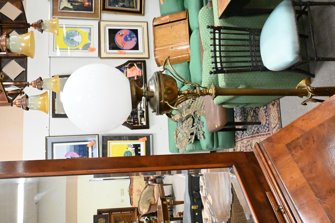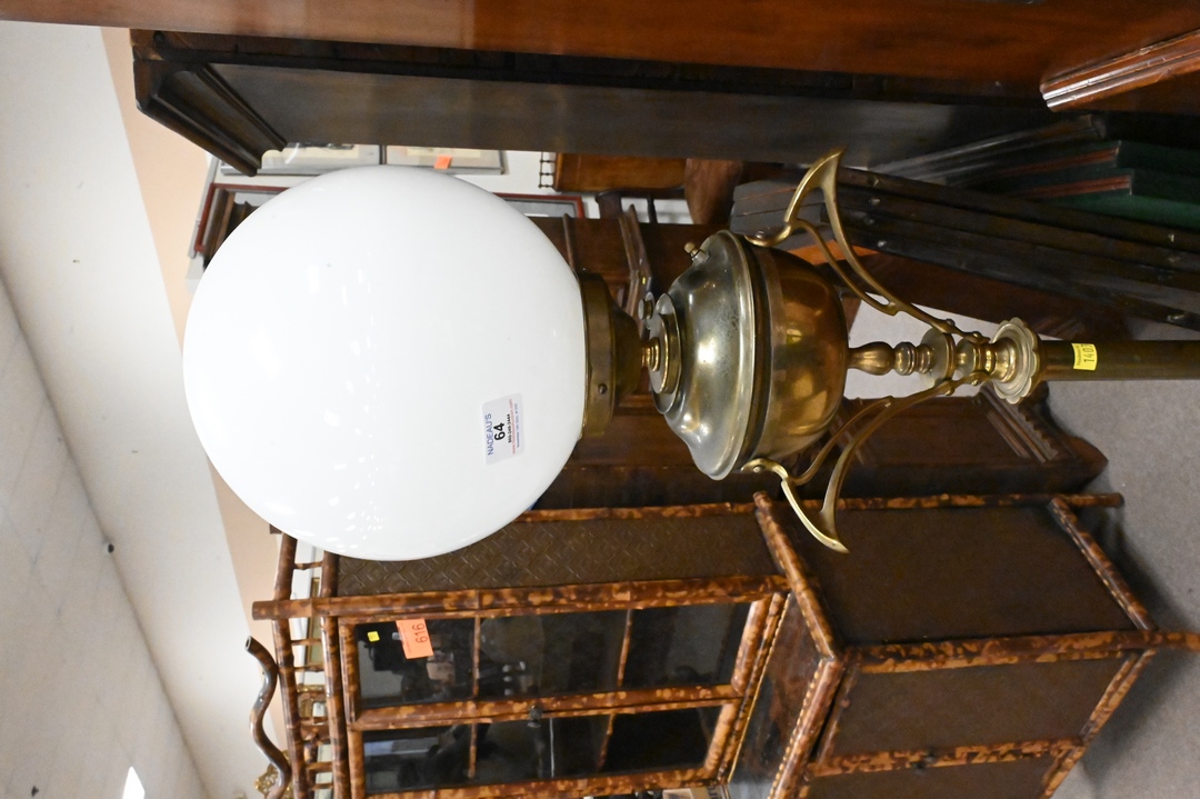 Pair of Brass Piano Lamps, having globe shades, height 67 inches.