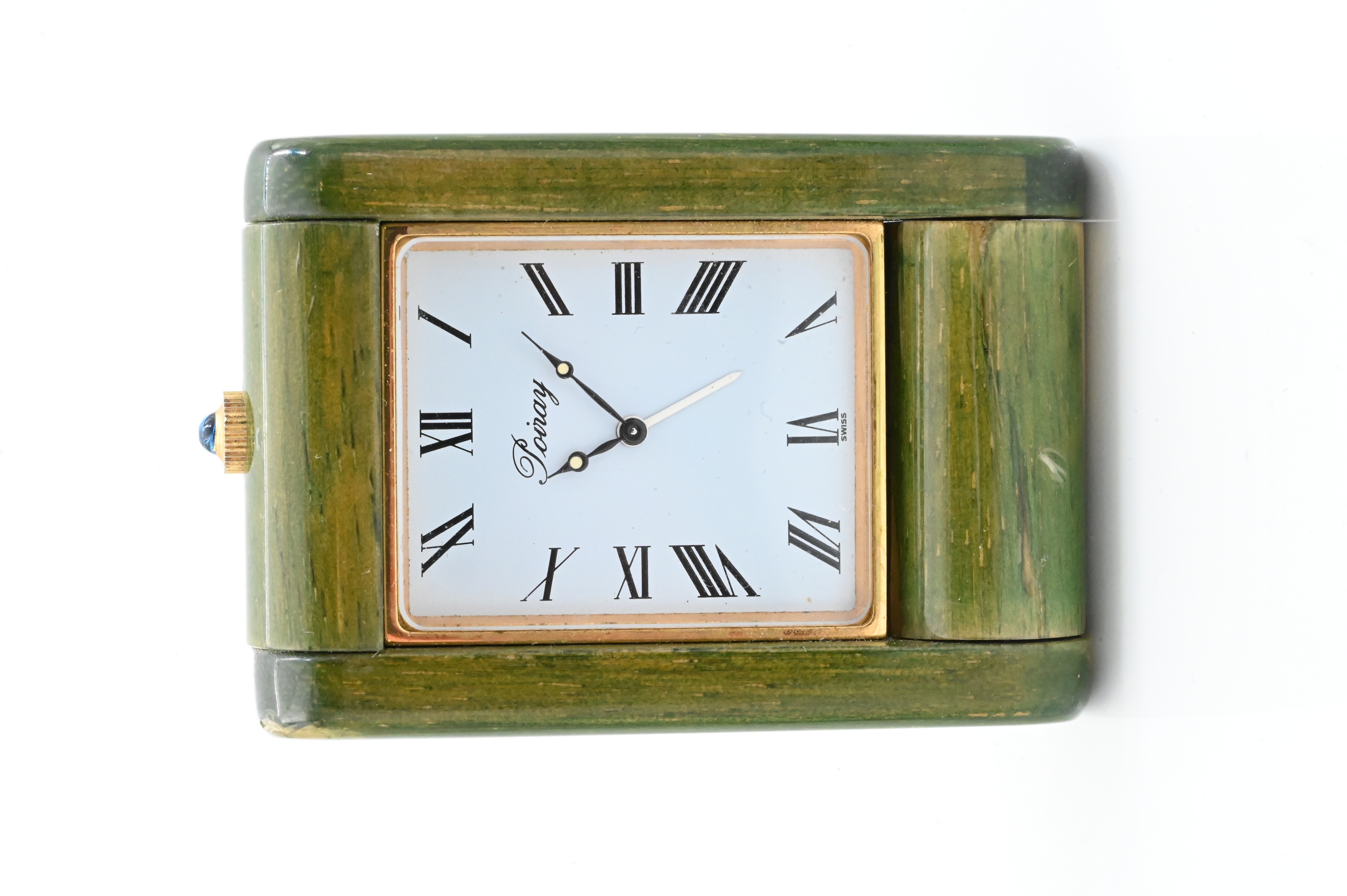 Poiray Paris Green Lacquer and Brass Travel Clock