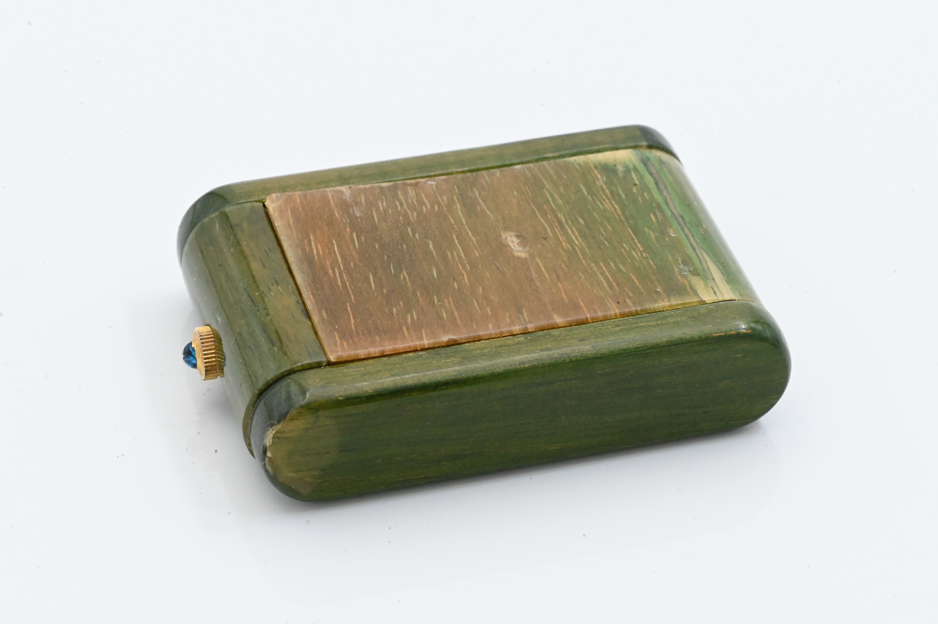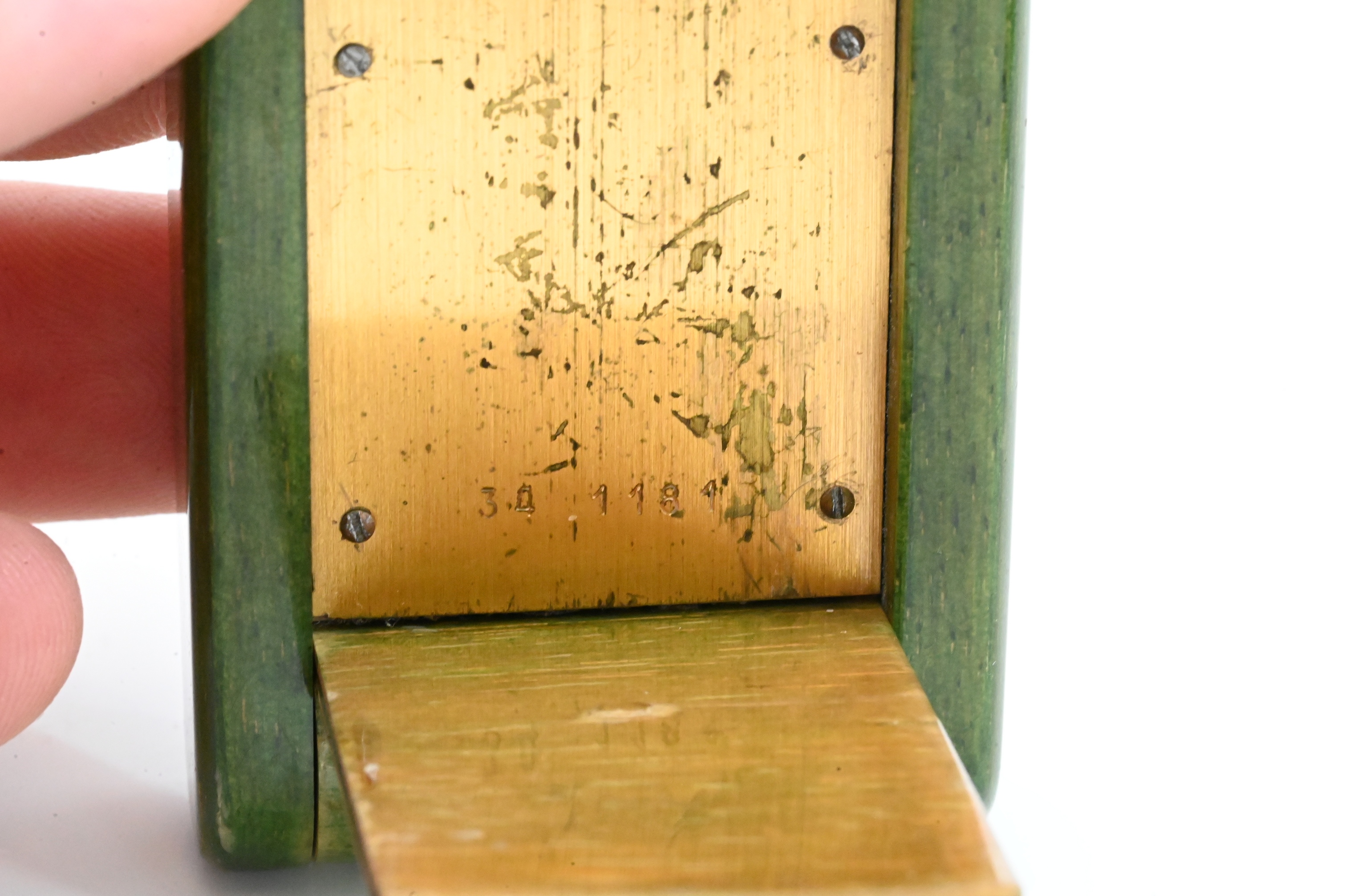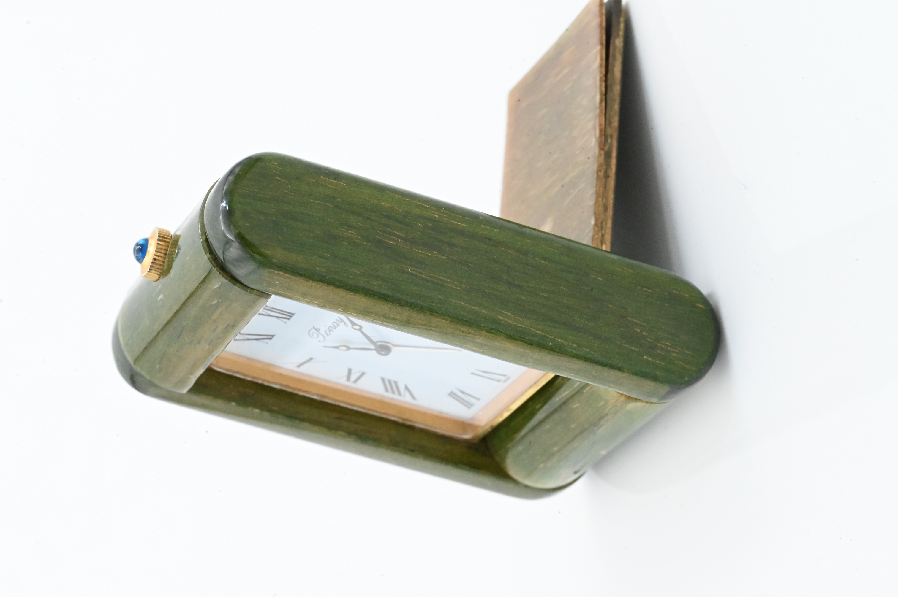Lot 64: Poiray Paris Green Lacquer and Brass Travel Clock