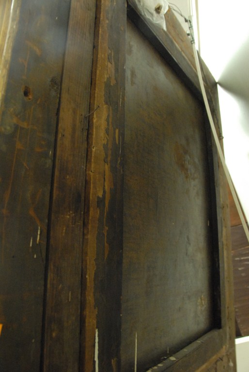 PORTRAIT OF MAN AND DOG man with dark blue jacket with white ruffled shirt oil on canvas in Victorian gold frame 30 x 22