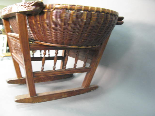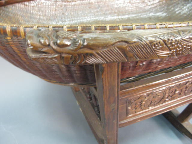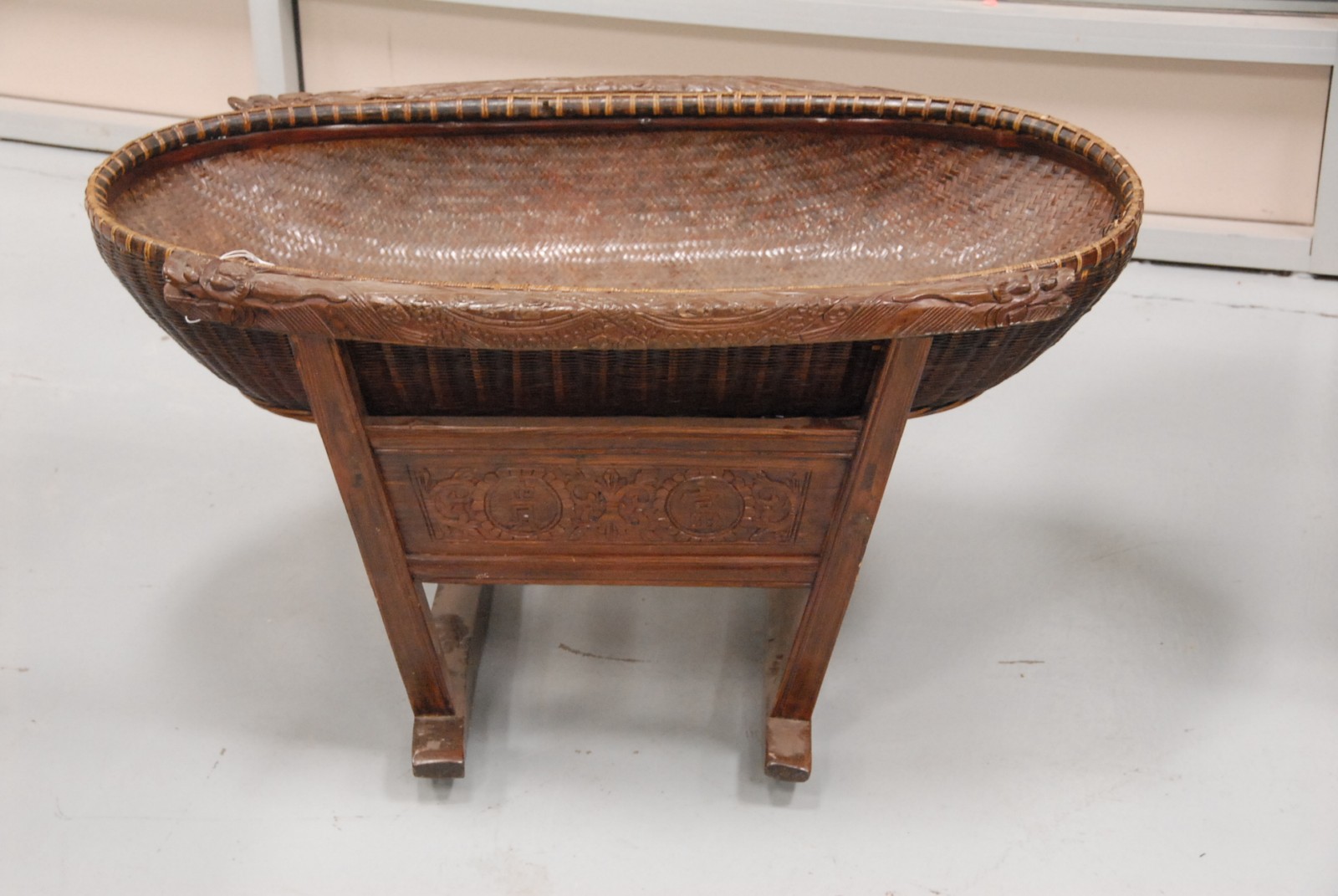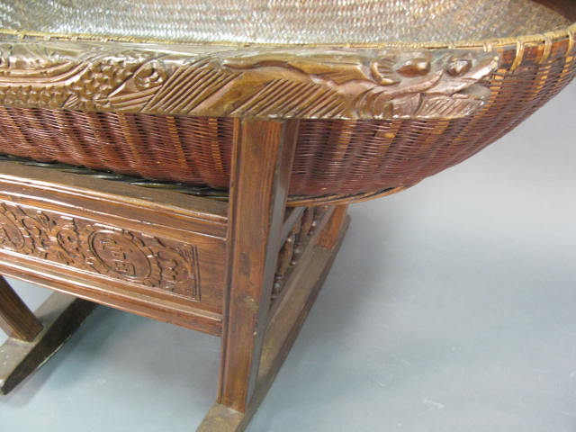 Qing dynasty 19th century wood and wicker babies rocking bed.