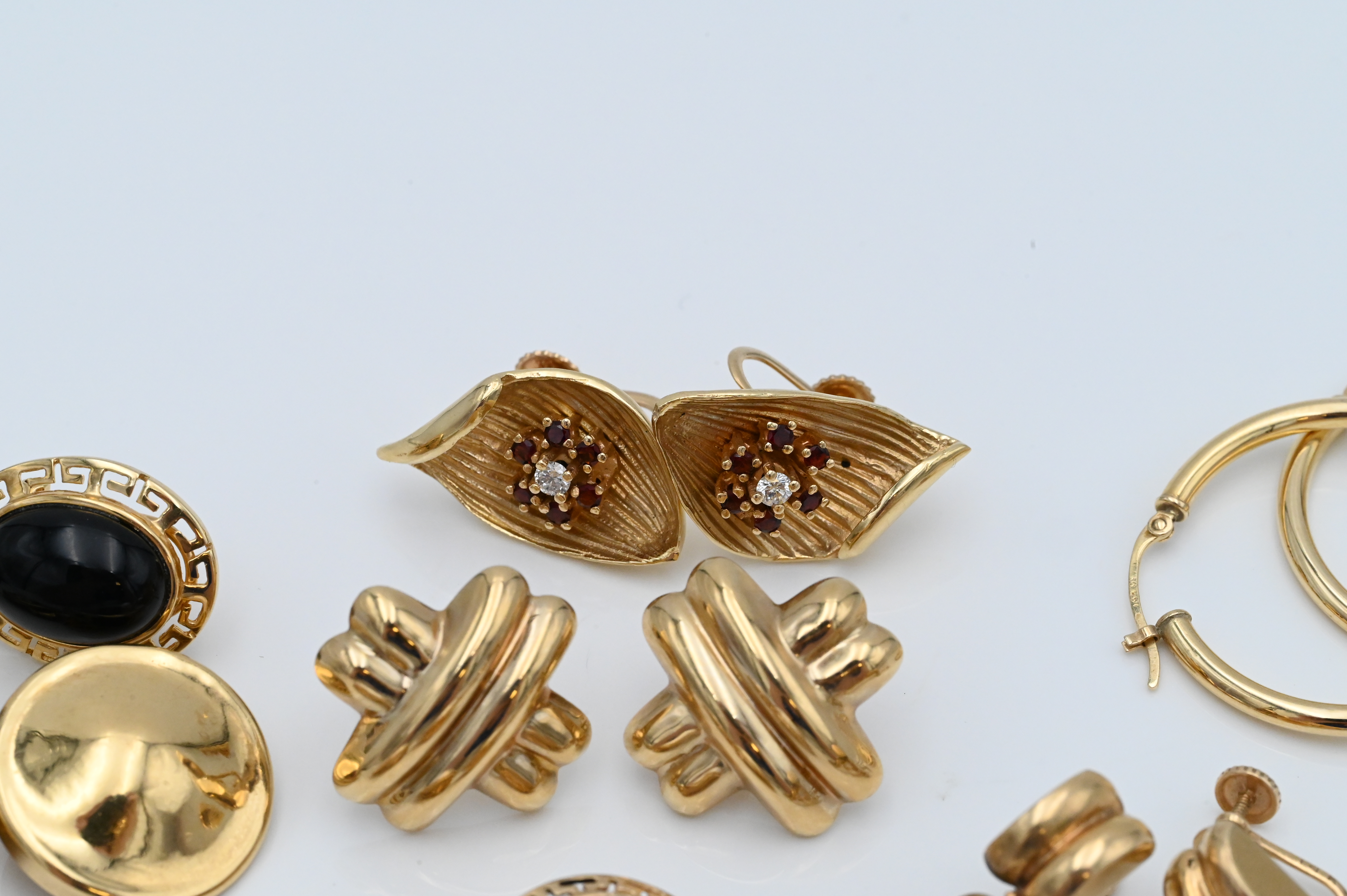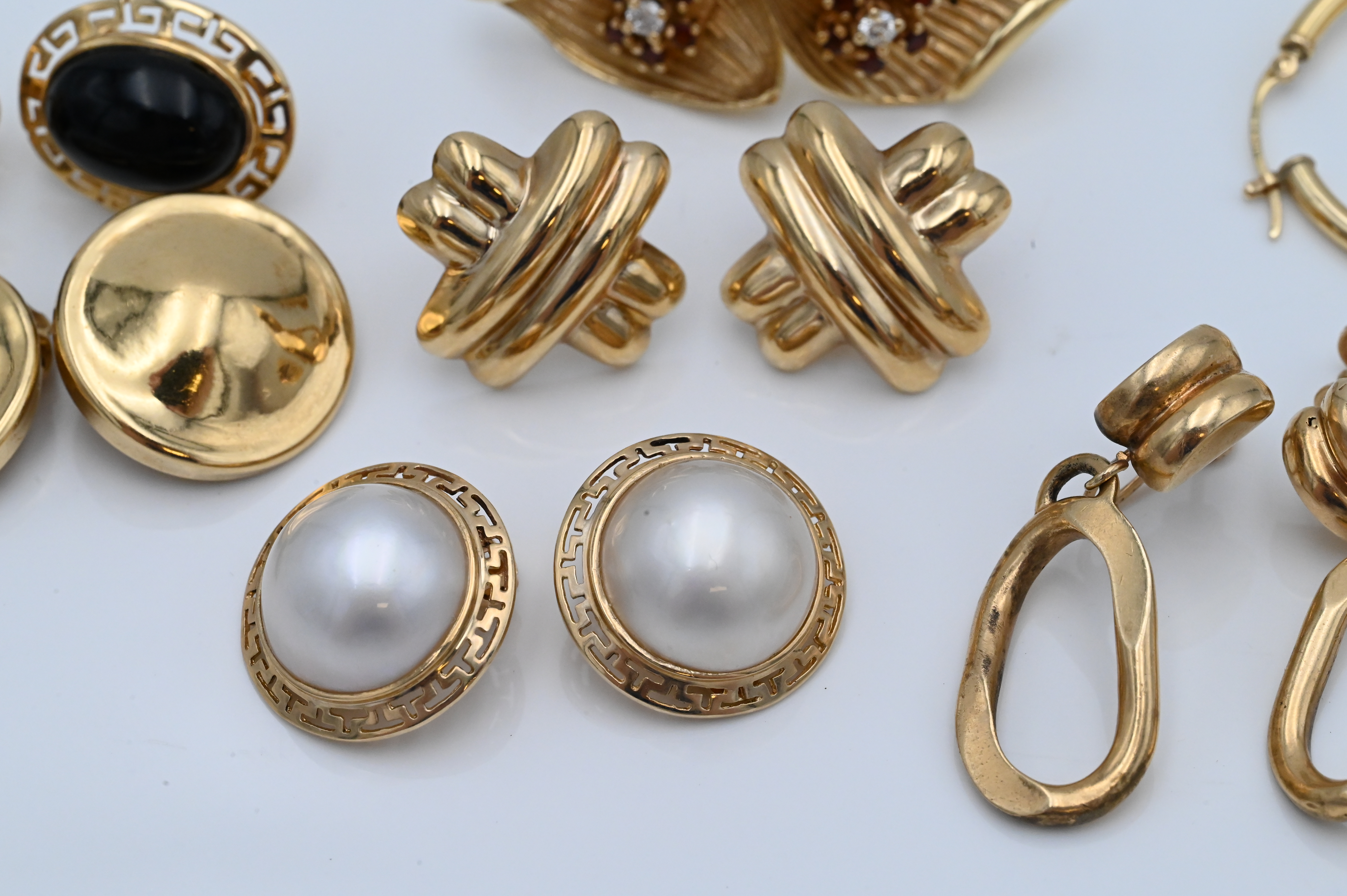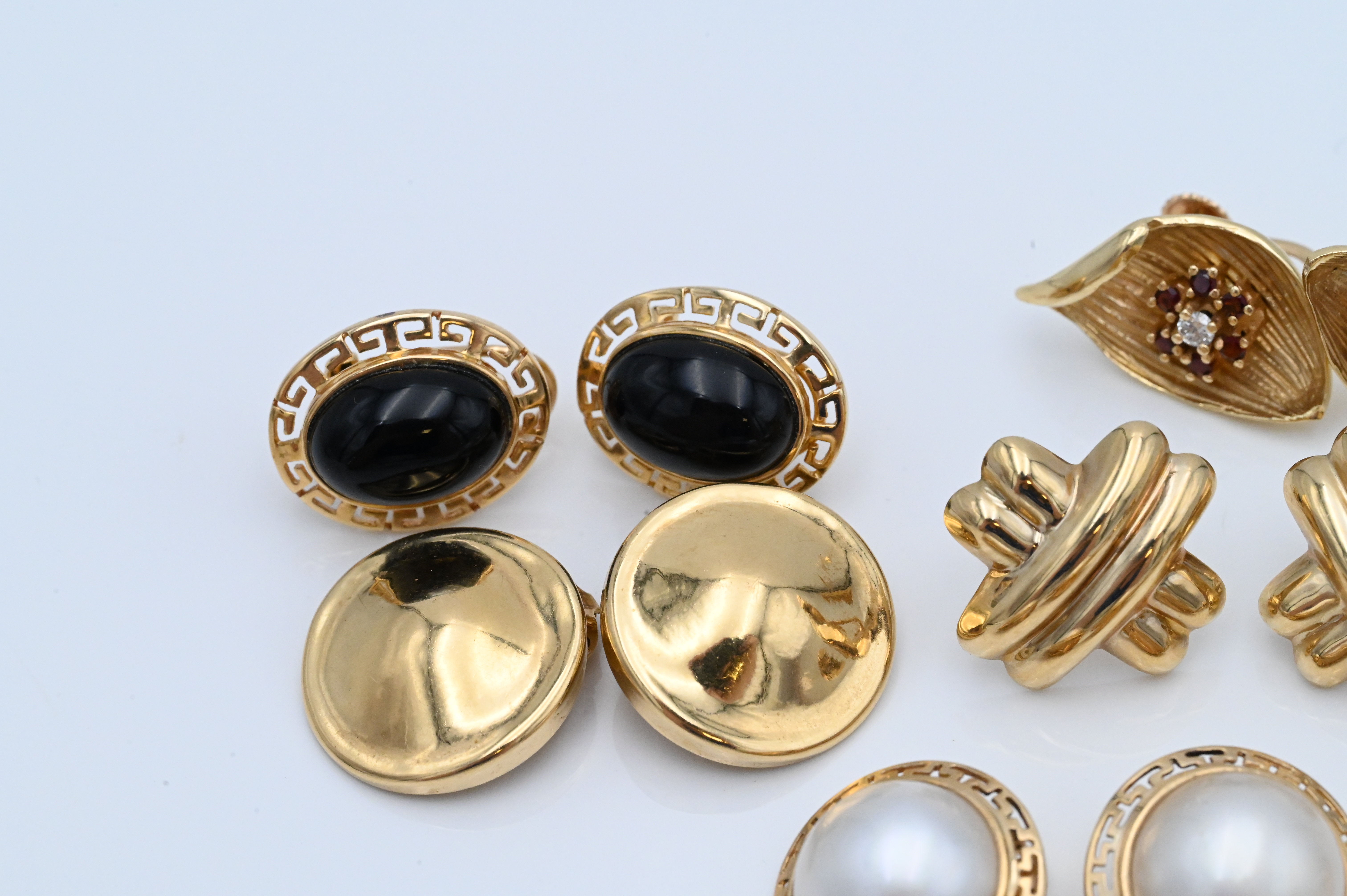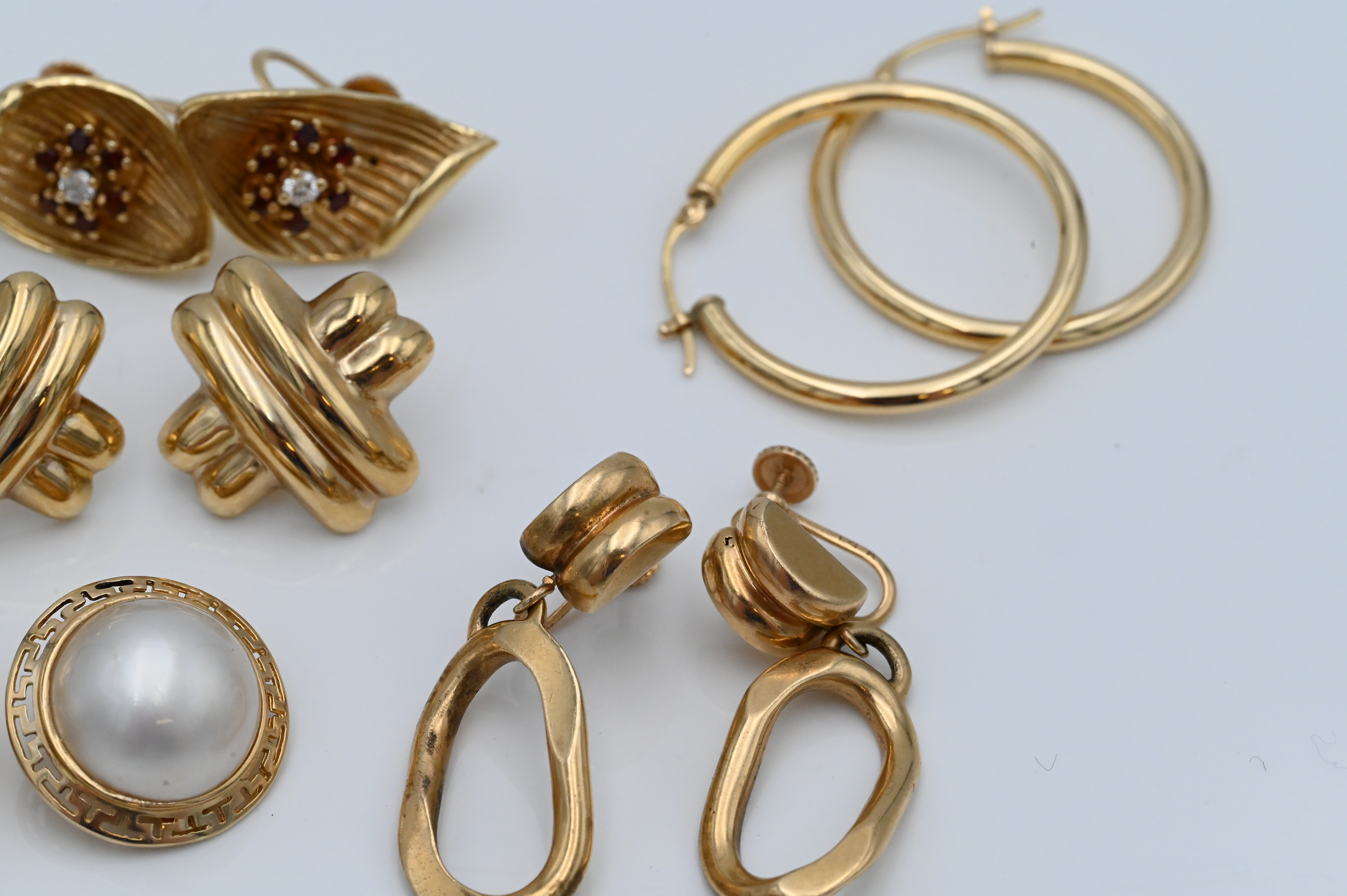 Seven Pairs of 14 Karat Yellow Gold Earrings, to include four clipped along with three pierced, total weight 43.19.